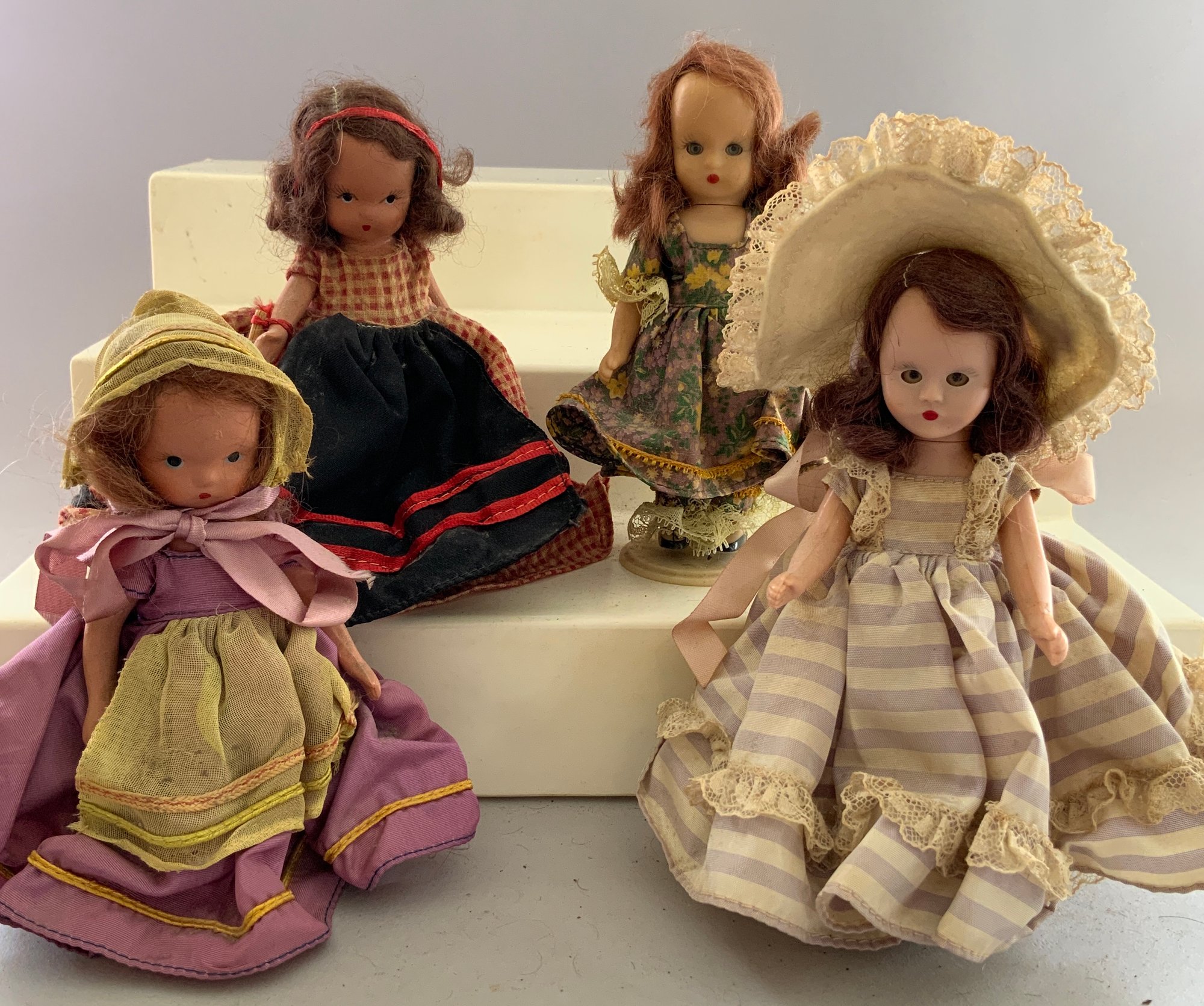 12 – 5” Assorted Nancy Ann Story Book dolls, played with condition