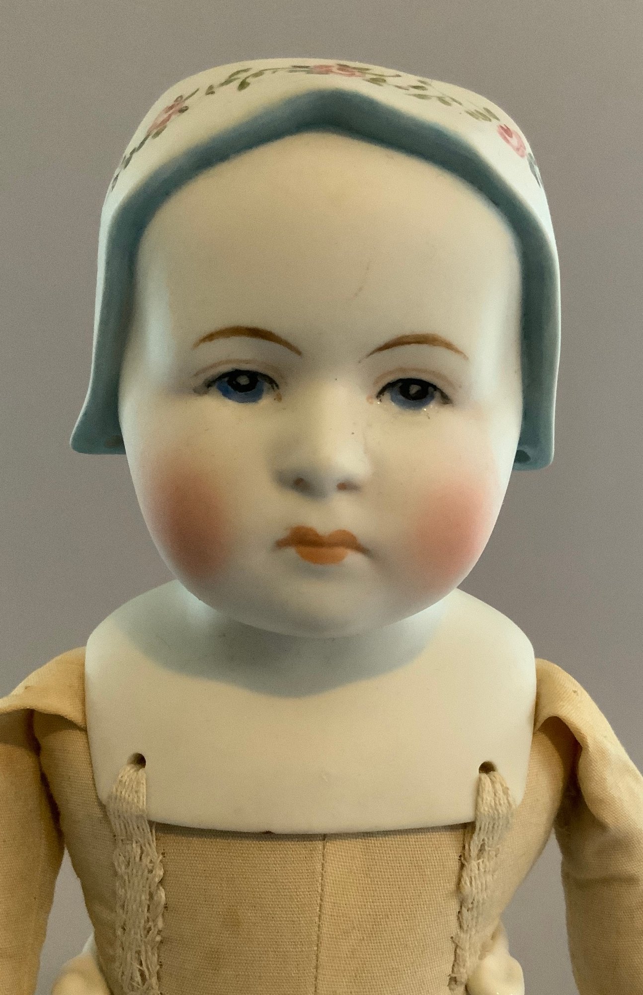 12 ½” Emma Clear “Baby Stewart” artist doll, painted features, bonnet head, cloth body with bisque limbs
