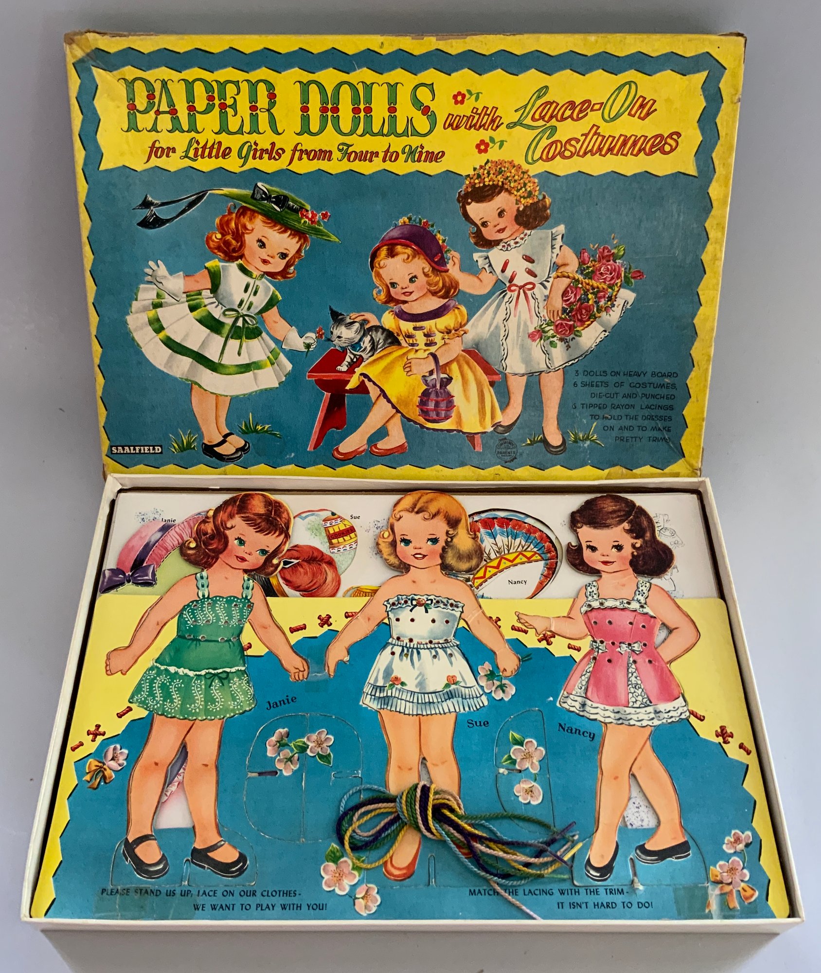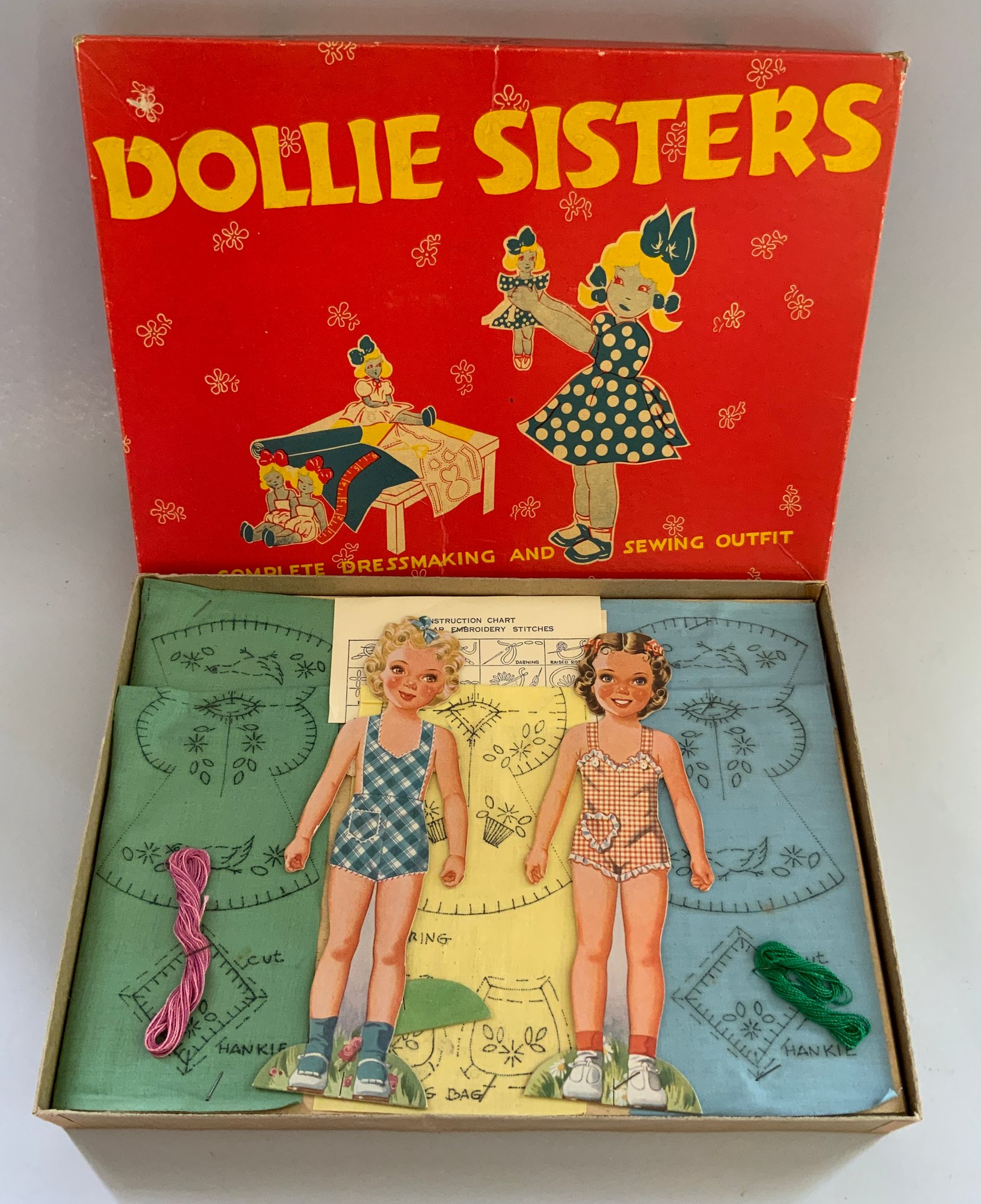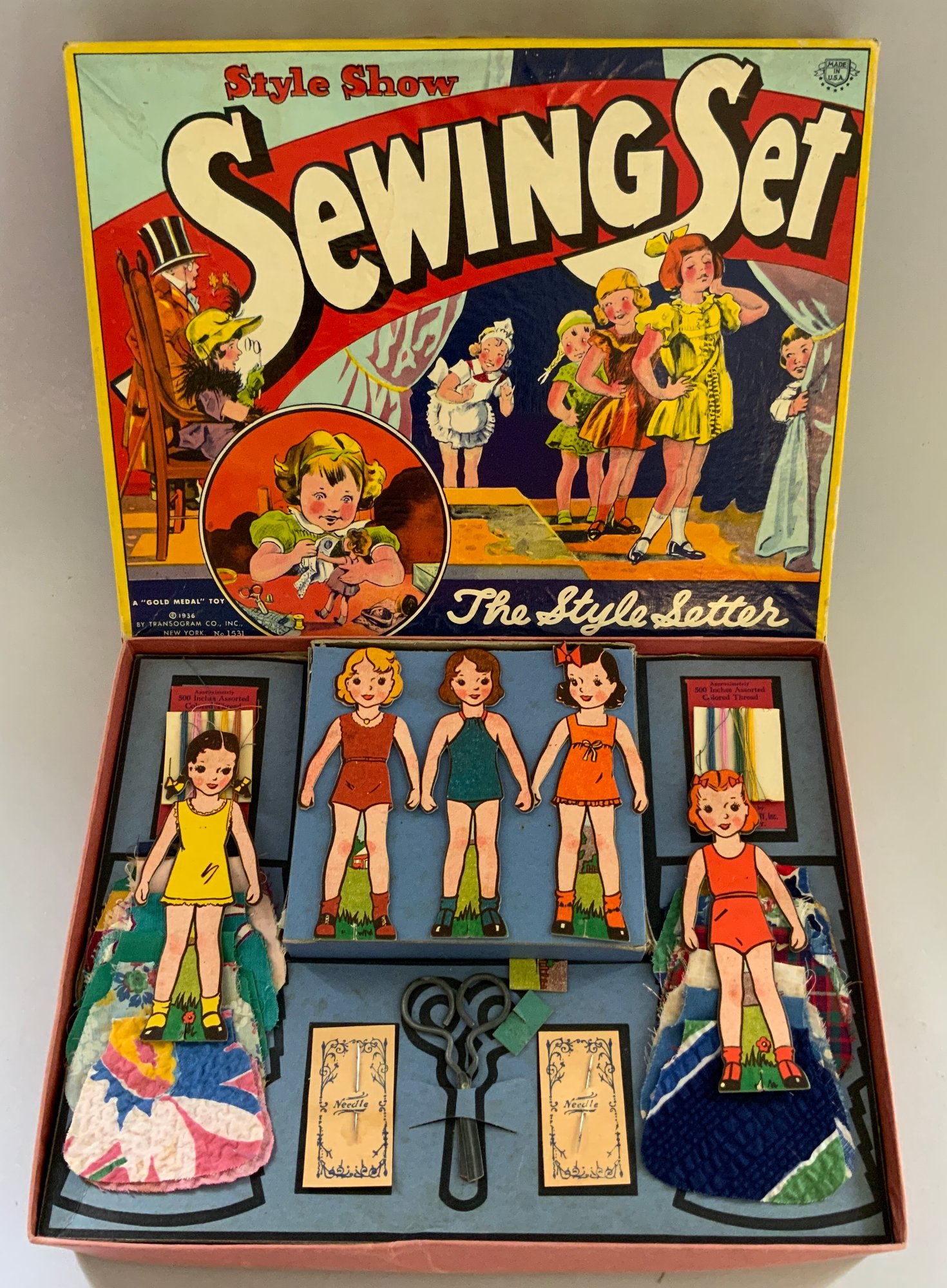 12 - Sewing Sets, Stitch & Sew, doll House Dress Shop, Mayflower Sewing Set, Sassie Paper Doll, Make Mary’s Clothes, Jr. Miss Sewing Kit, Stitchcraft Sewing Set, Style Show Sewing Set, Paper Dolls Wit Lace-On Costumes, Corinne a Darling Doll, Dollie Sisters, & Bride Originals Designer Set, original boxes some wear