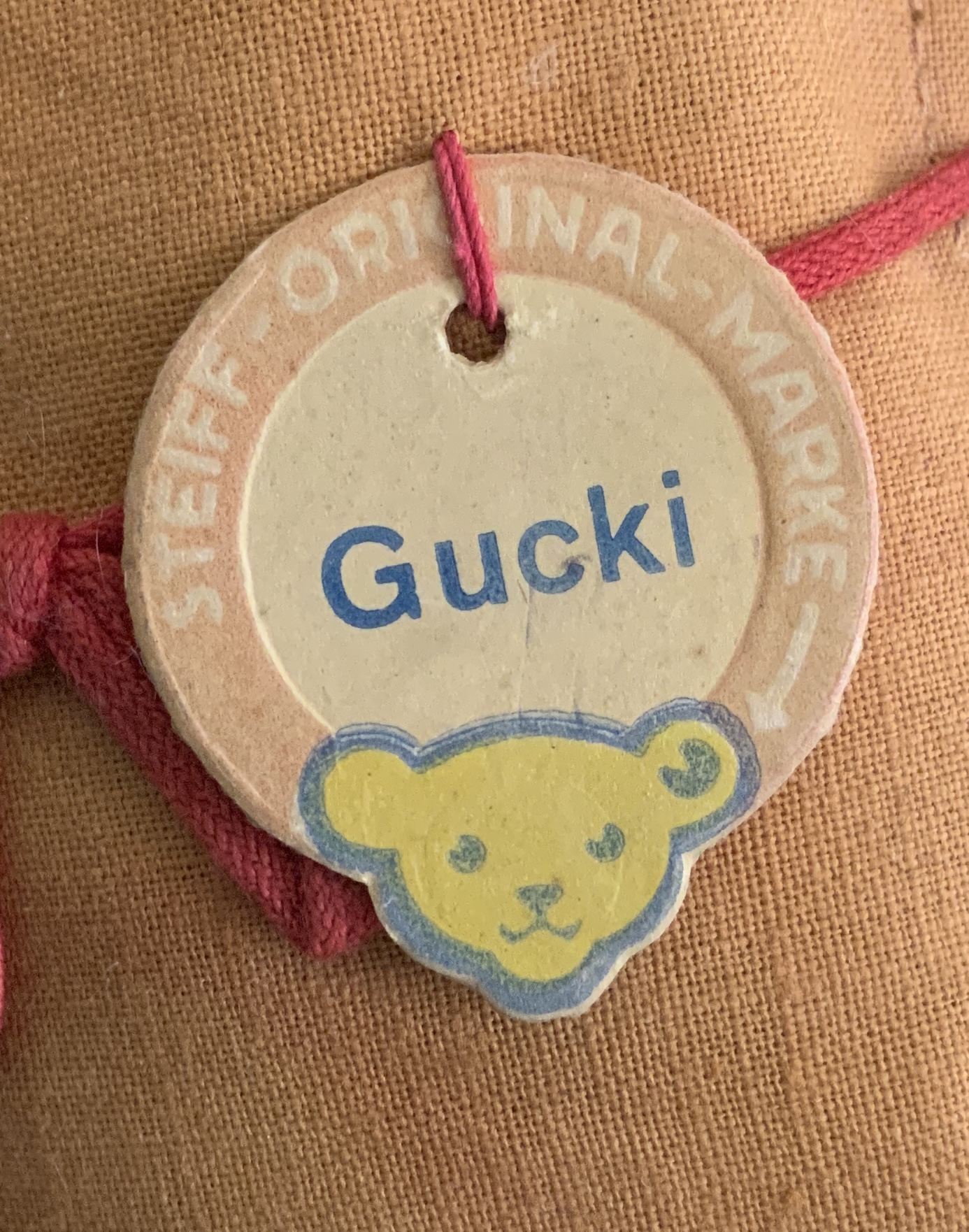 12” Steiff “Gucki” dwarf doll with Steiff bracelet, shelf dust