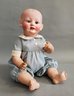 15 1/2 GERMAN BISQUE DOLL FRANZ SCHMIDT & CO MOLD 1271 - COMPOSITION BABY BODY, BLUE SLEEP EYES, OPEN/CLOSED MOUTH W/ 2 PAINTED TEETH, WEAR NOTED TO BODY, BLUE ROMPER