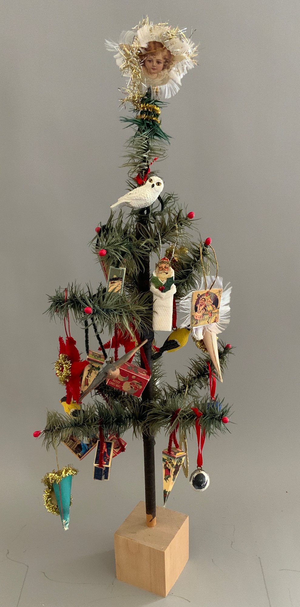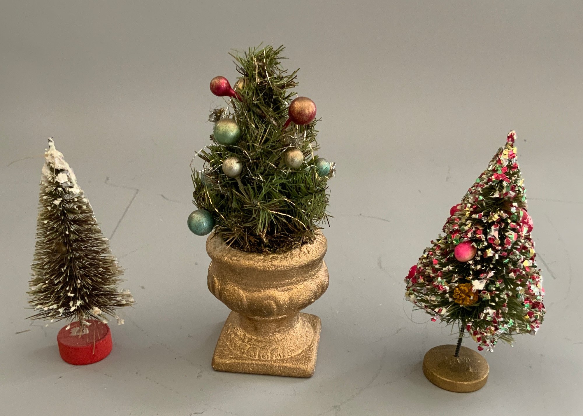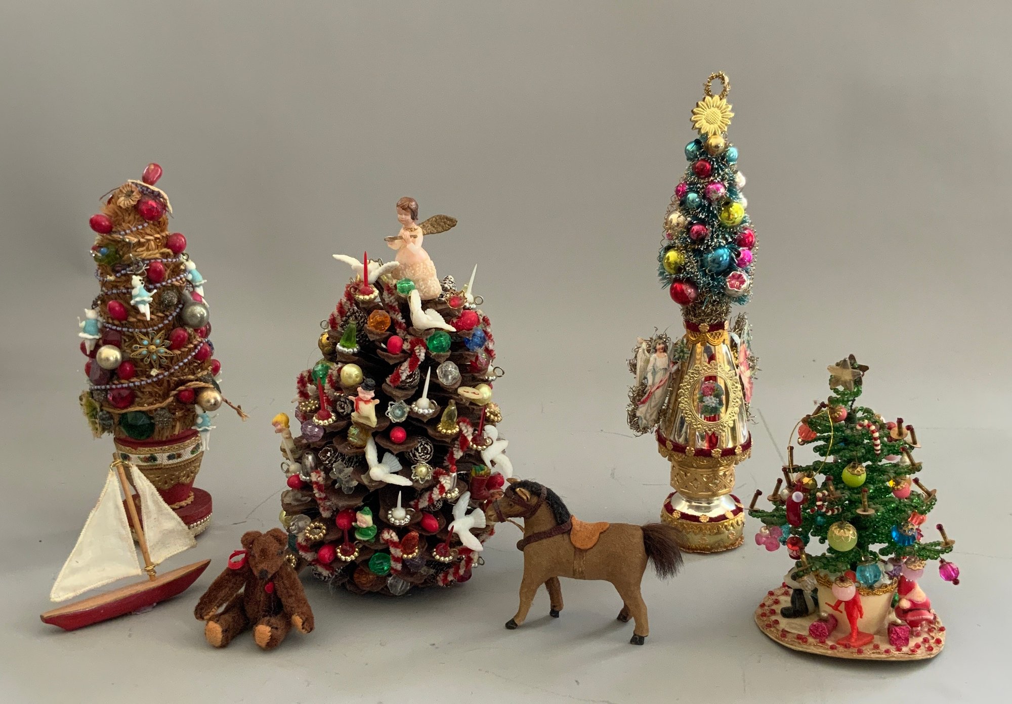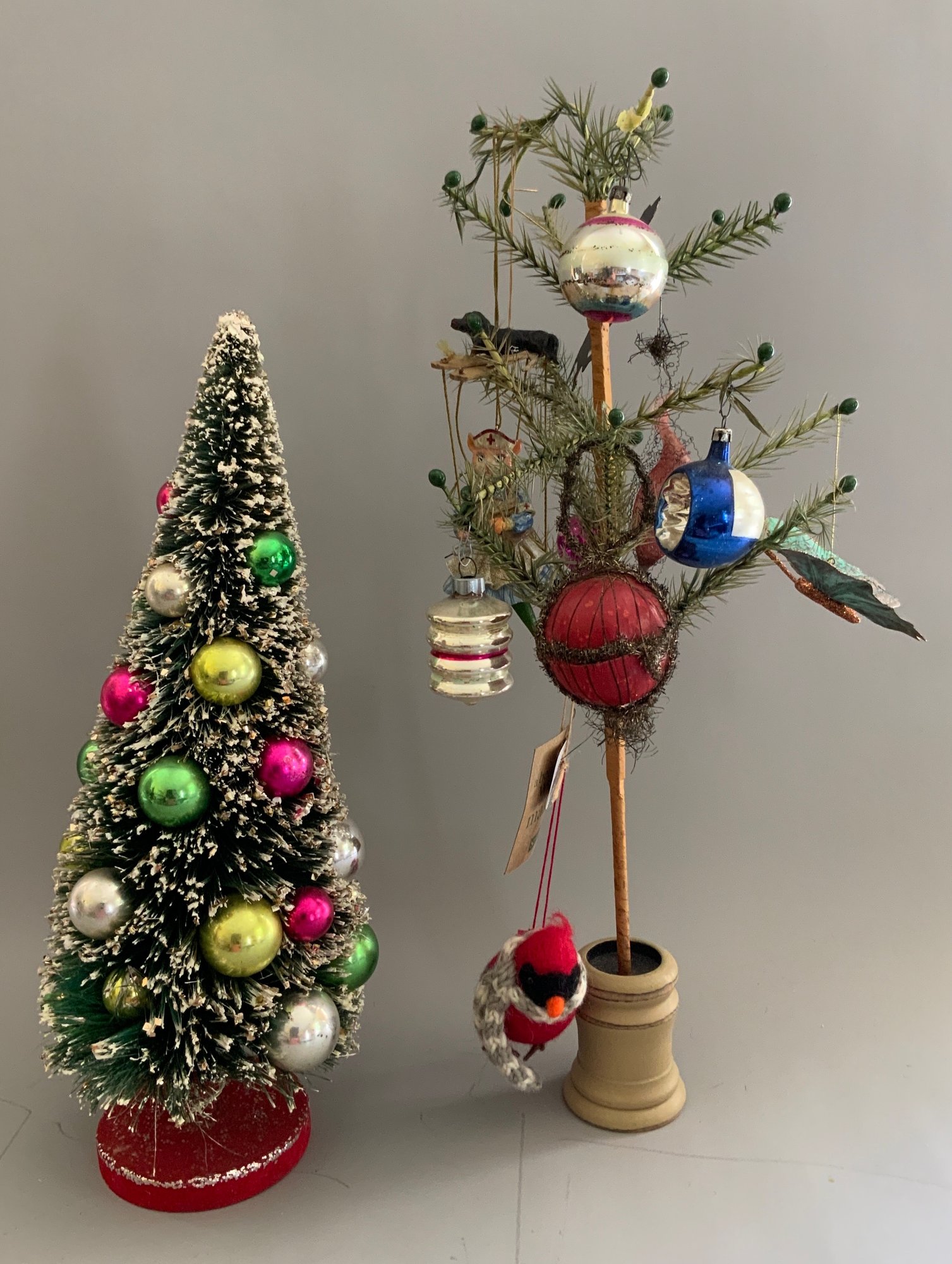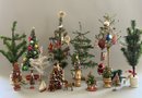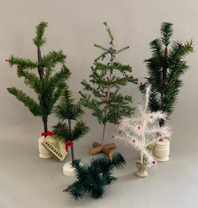 15 – Assorted Christmas Trees 4” – 19” tall, some vintage some newer, decorated & plain