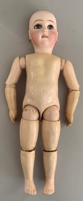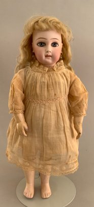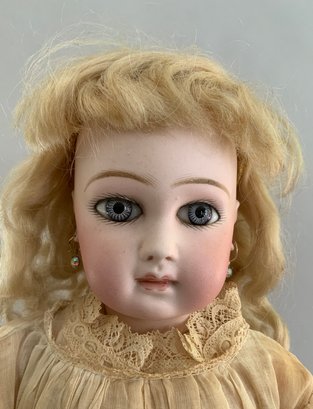 15” Portrait Jumeau 0, blue glass eyes, CM, PE (nicks), blonde mohair wig, straight wrist French compo body (right foot toes rebuilt paint touchups), (tiny rim nicks), early slip & unders