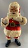 16” Figural Clockwork Santa Claus Nodder. Standing figure of Santa with a paper mache body and felt clothing, a wood and composite head with painted eyes and rosy cheeks; the head is connected to a counter weight inside of the body and acting as a pendulum rocking the head back and forth, powered by a spring driven mechanism under the figures right arm. (cracking to right boot), Ex Fontaine auction 2014 *****IS NOT WORKING CORRECTLY AS OF 10/23 @ 1:45 pm*****