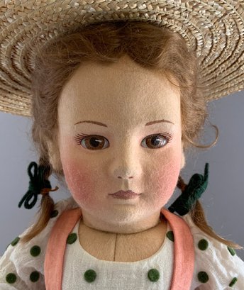 16” R John Wright felt doll “Mary Mary Quite Contrary” 79/100, painted features, green polka dot dress, (missing hat & rake, no COA, not original box), very good condition