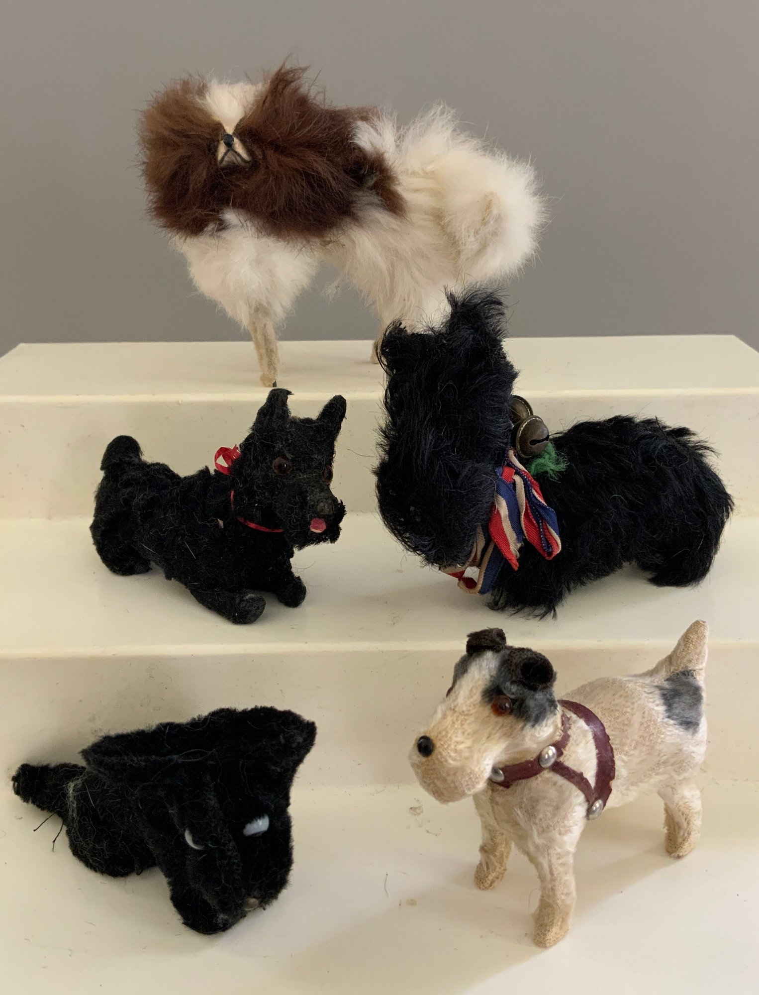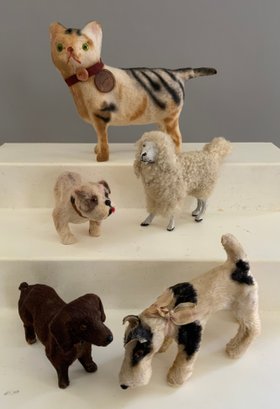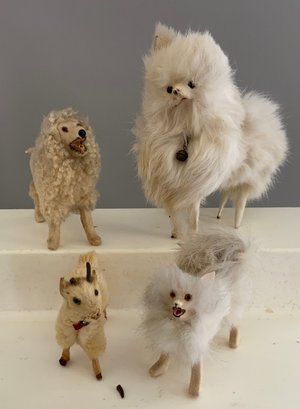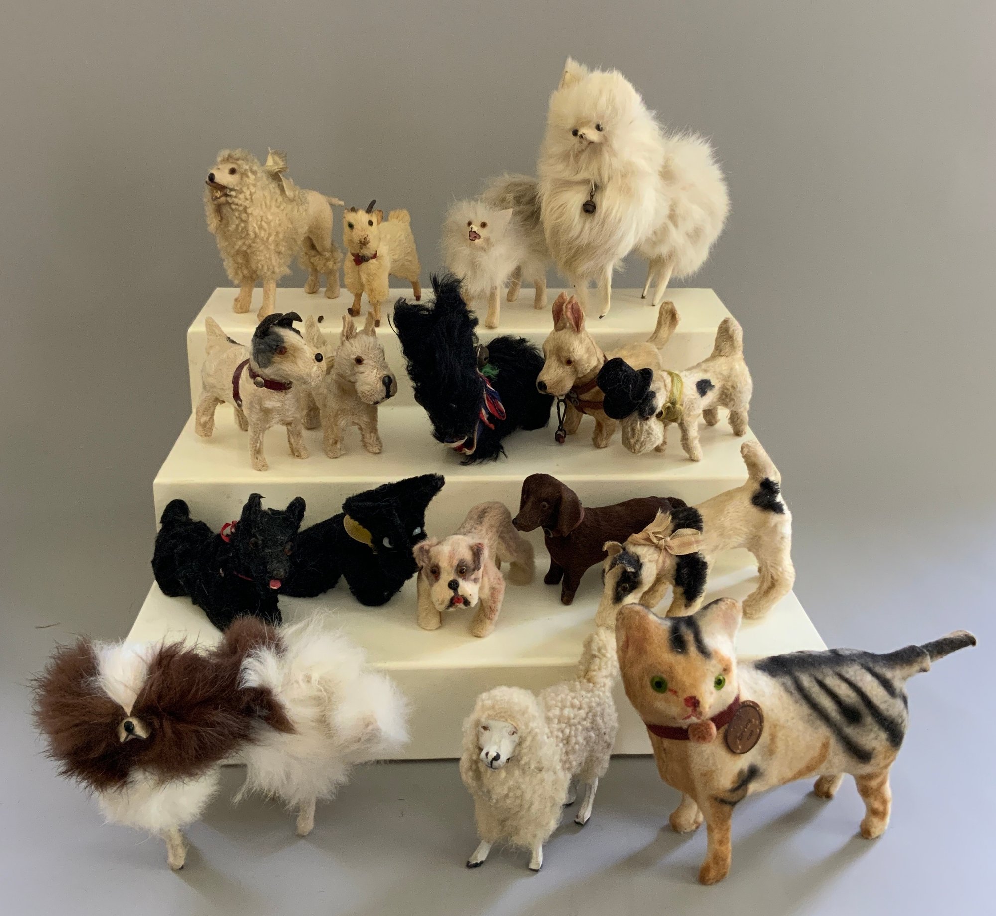 16 Small early fur covered animals, 3” – 6”, most in standing positions, some marked Germany, played with condition