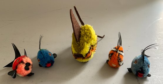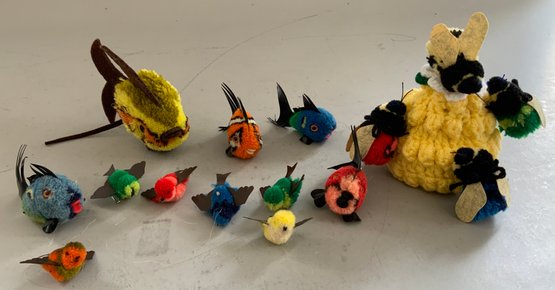 16 Steiff Woolies, 4 bees & hive, 6 – birds with wings, 4 small & 1 large fish, 6 with buttons, 1” – 4”