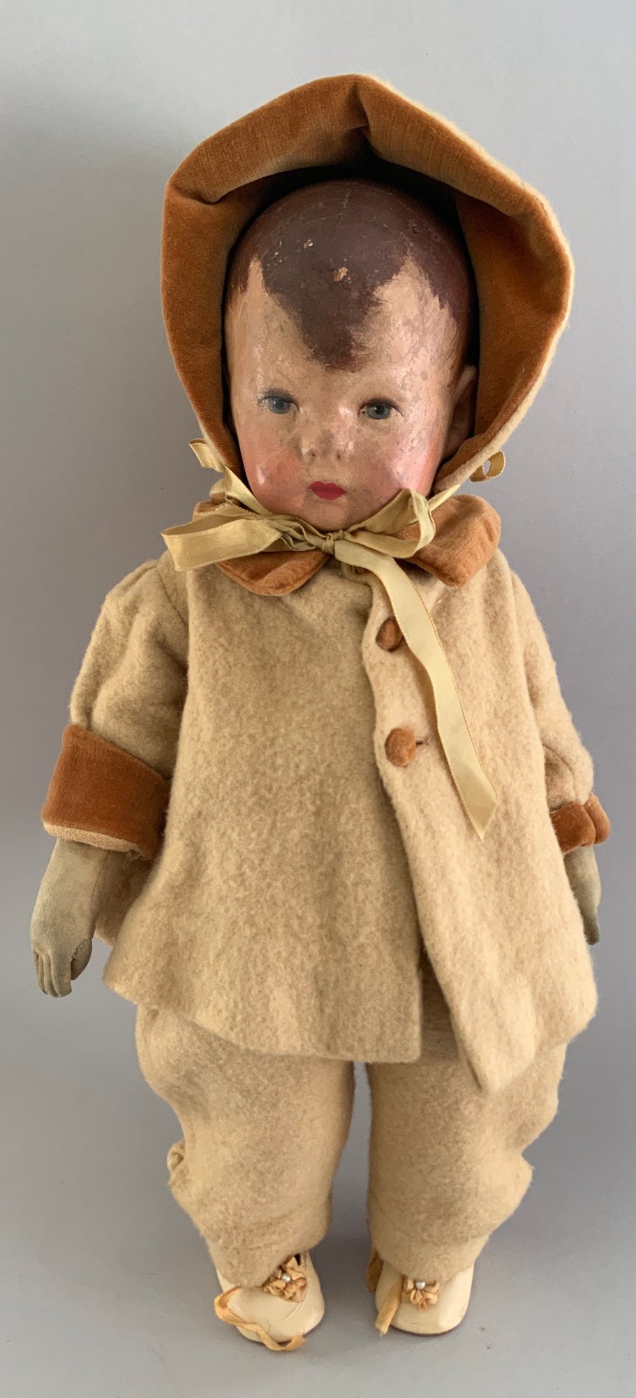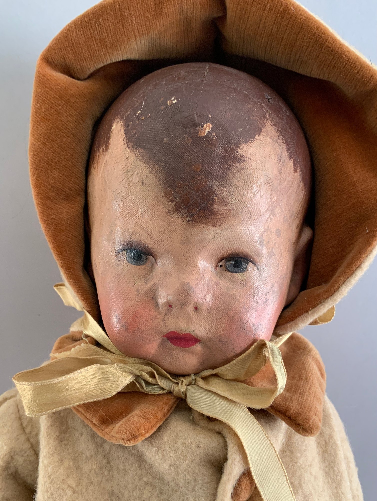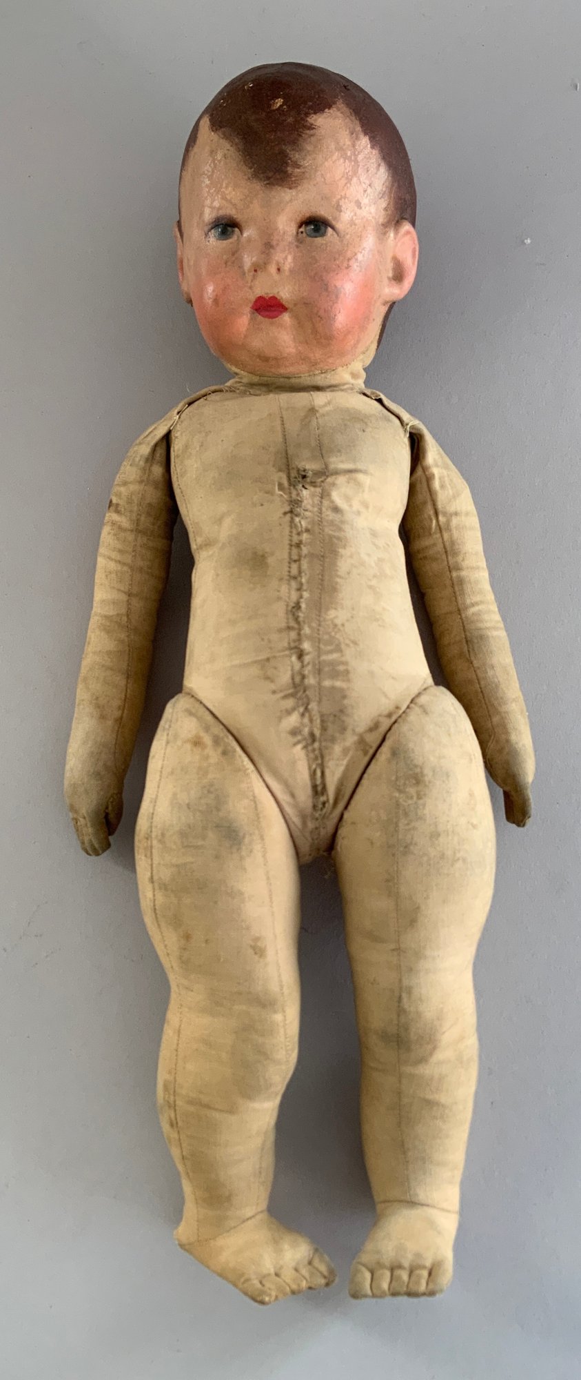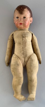 17” Kathe Kruse, painted features, wide hipped cloth body, right foot stamped made in Germany (some facial rubs)
