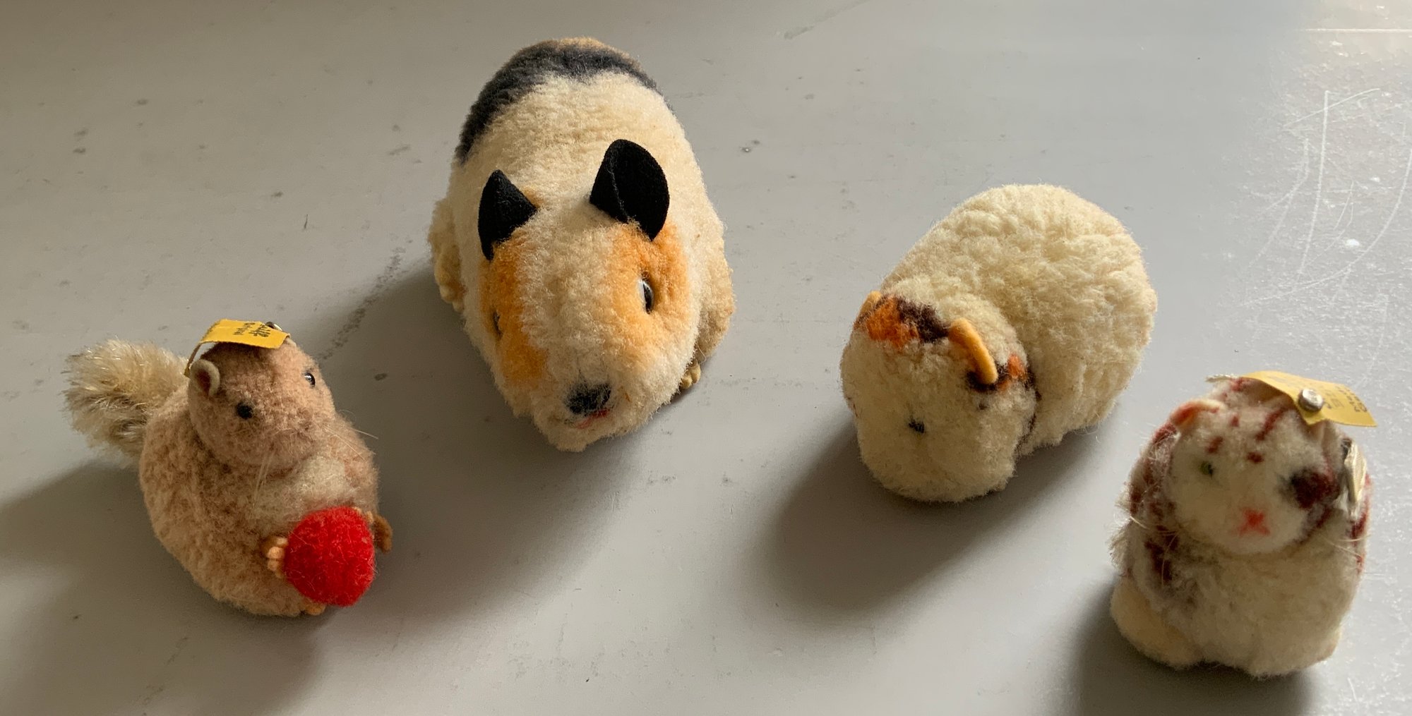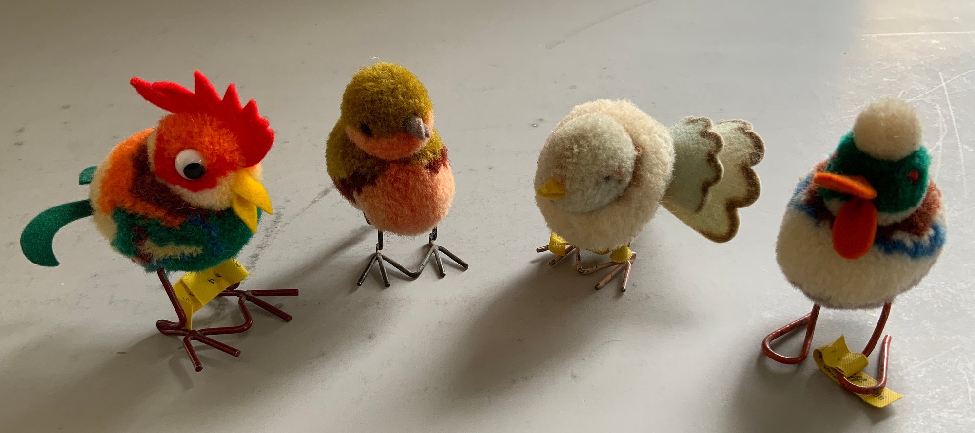 17 Steiff Woolies, assorted birds, animals, & bugs, 6 with tags & buttons, 2” – 4” long