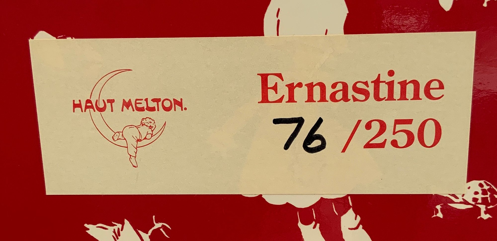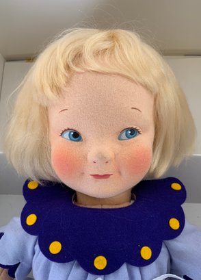 18” Haut Melton Ernastine felt doll 76/250, painted features, purple dress, with book & tag, original box, very good condition