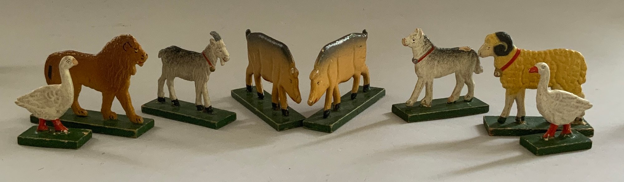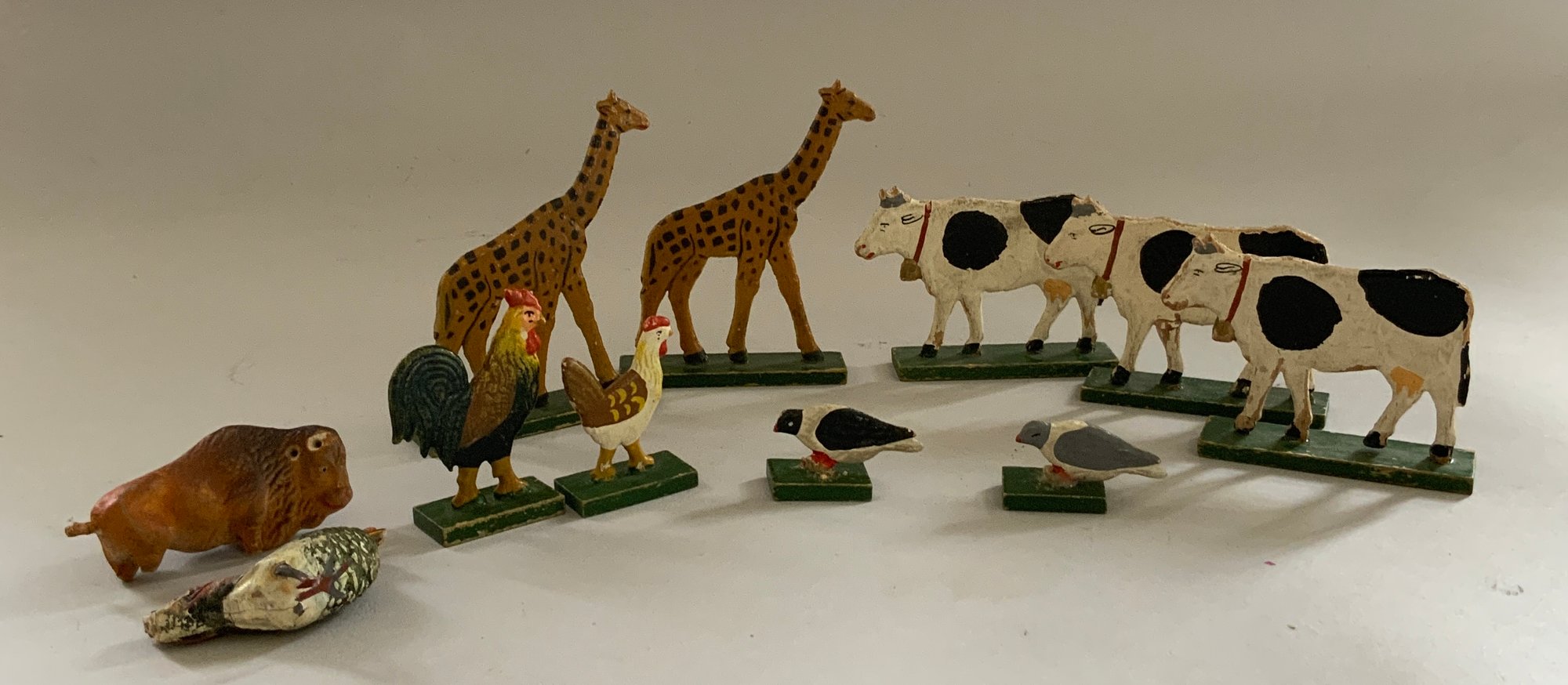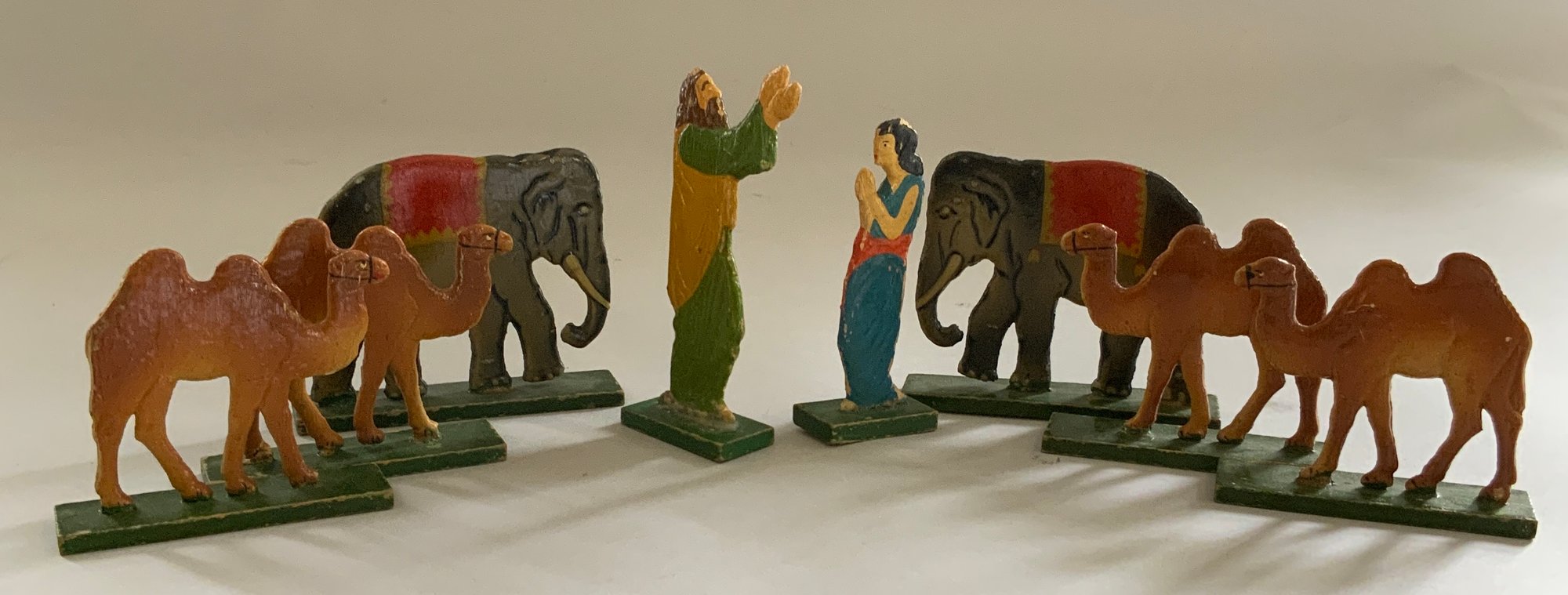 18” Long German painted ark with animal & people figures on bases marked made in Germany, hinged roof