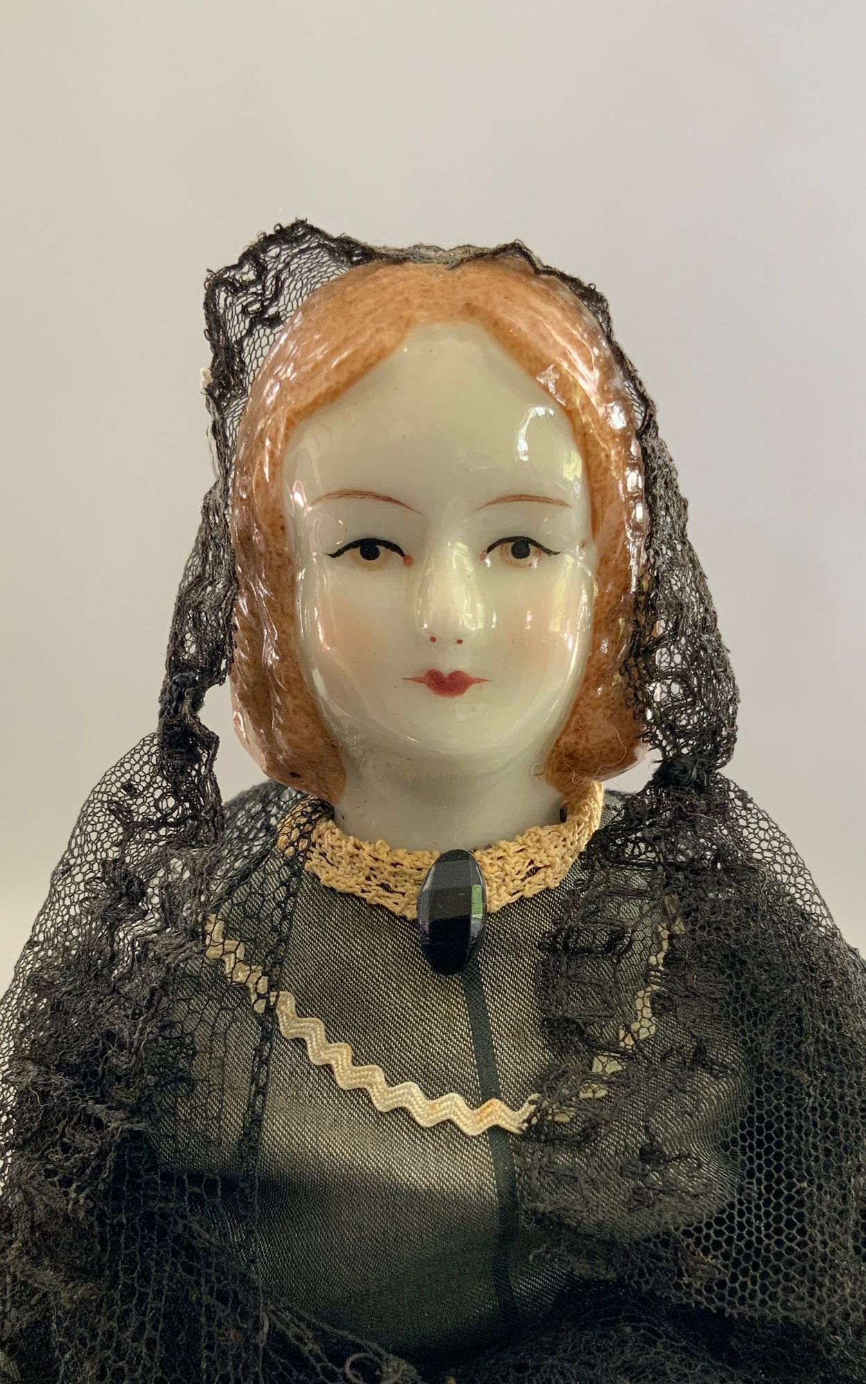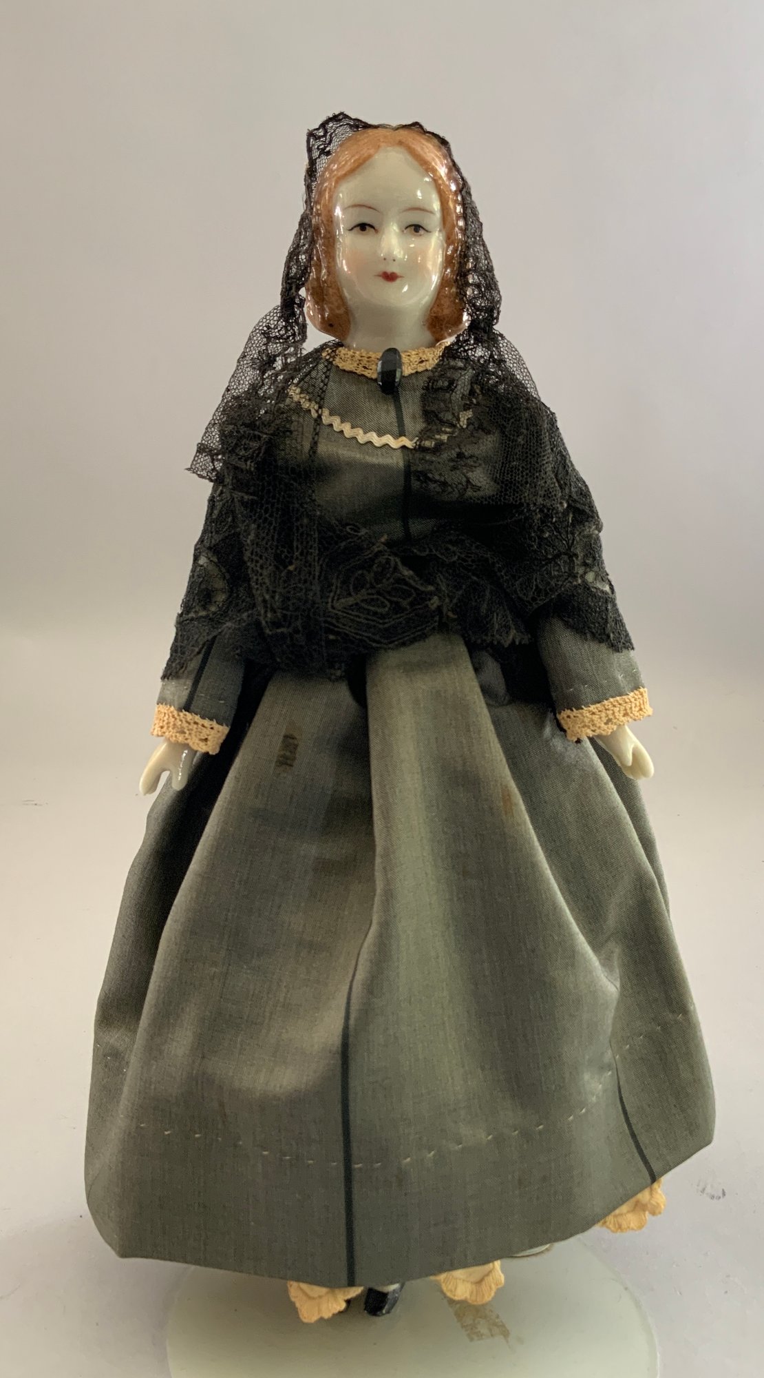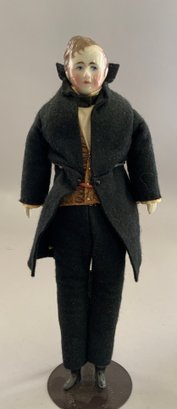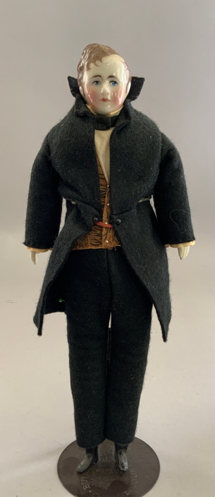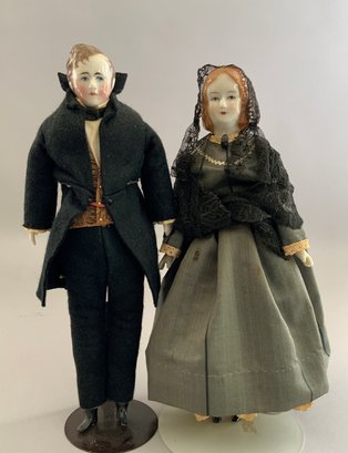 2 – 11” China head dolls, Millard Fillmore & Mrs. Millard Fillmore, painted features, painted brown hair, cloth bodies with china limbs, period outfits