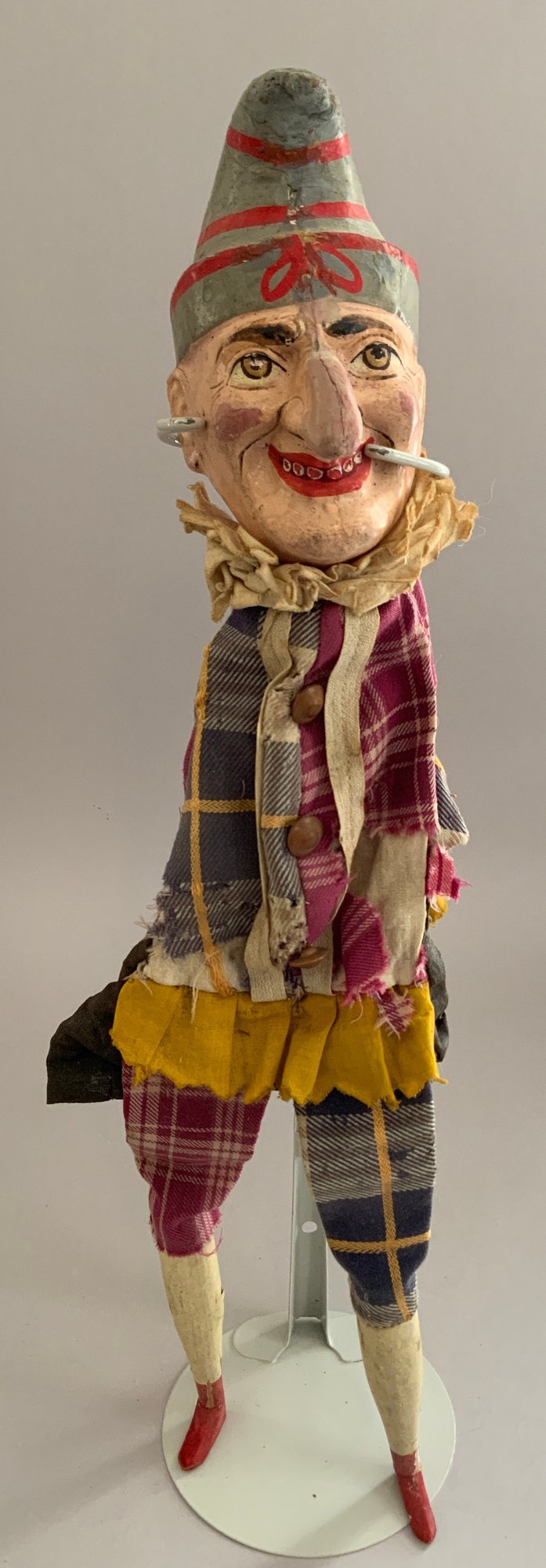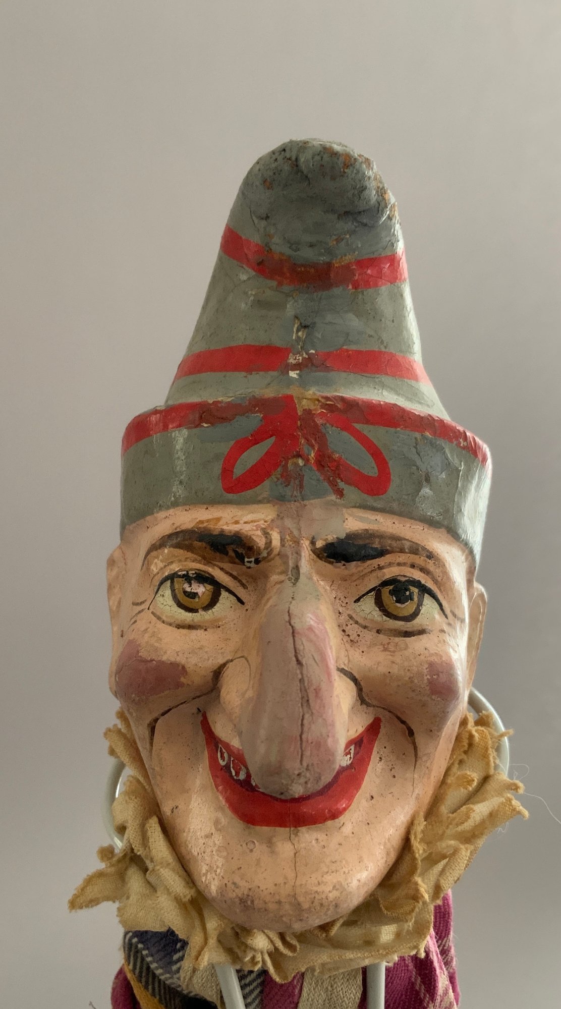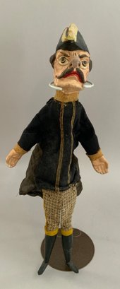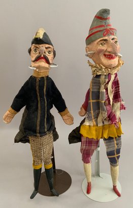 2 – 16 ½” 19th C hand puppets, “Punch & Constable” paper mache, hand painted features, wood legs, (touch ups & nose repairs), played with condition