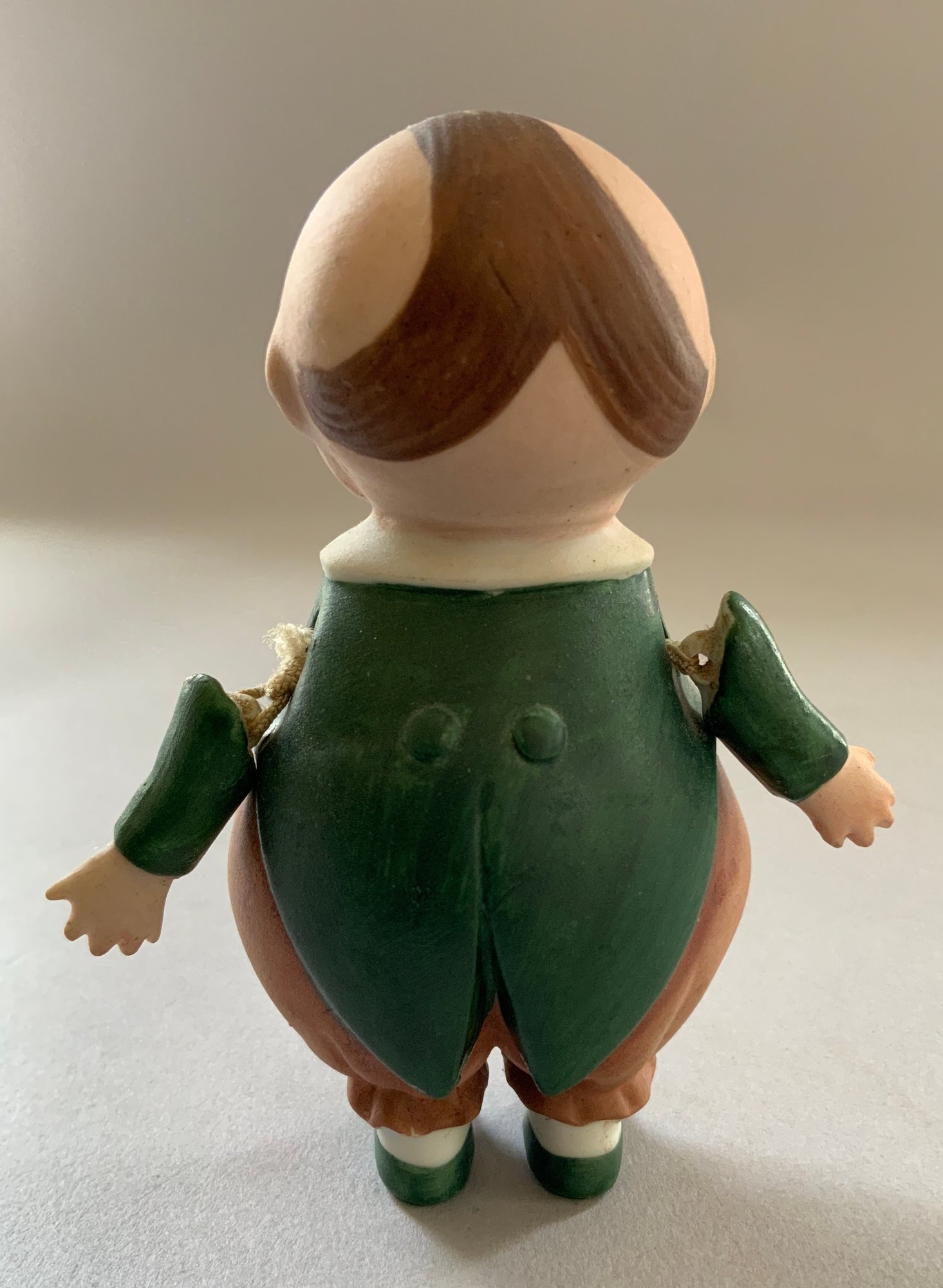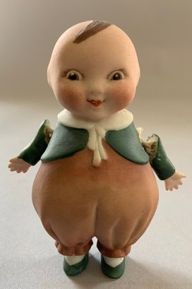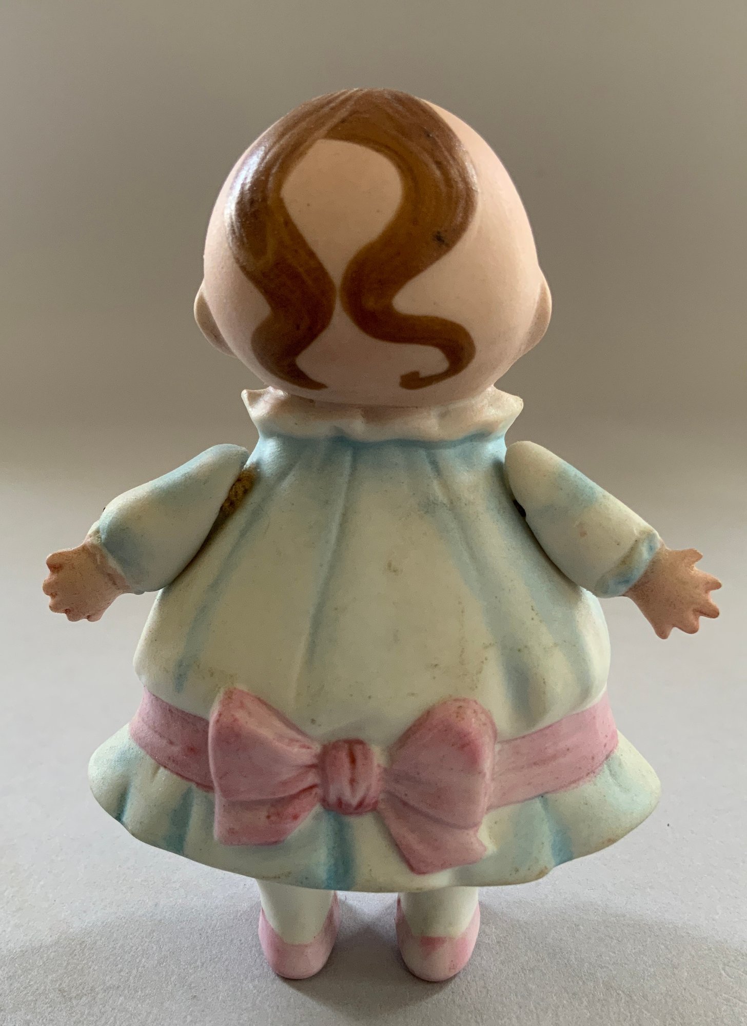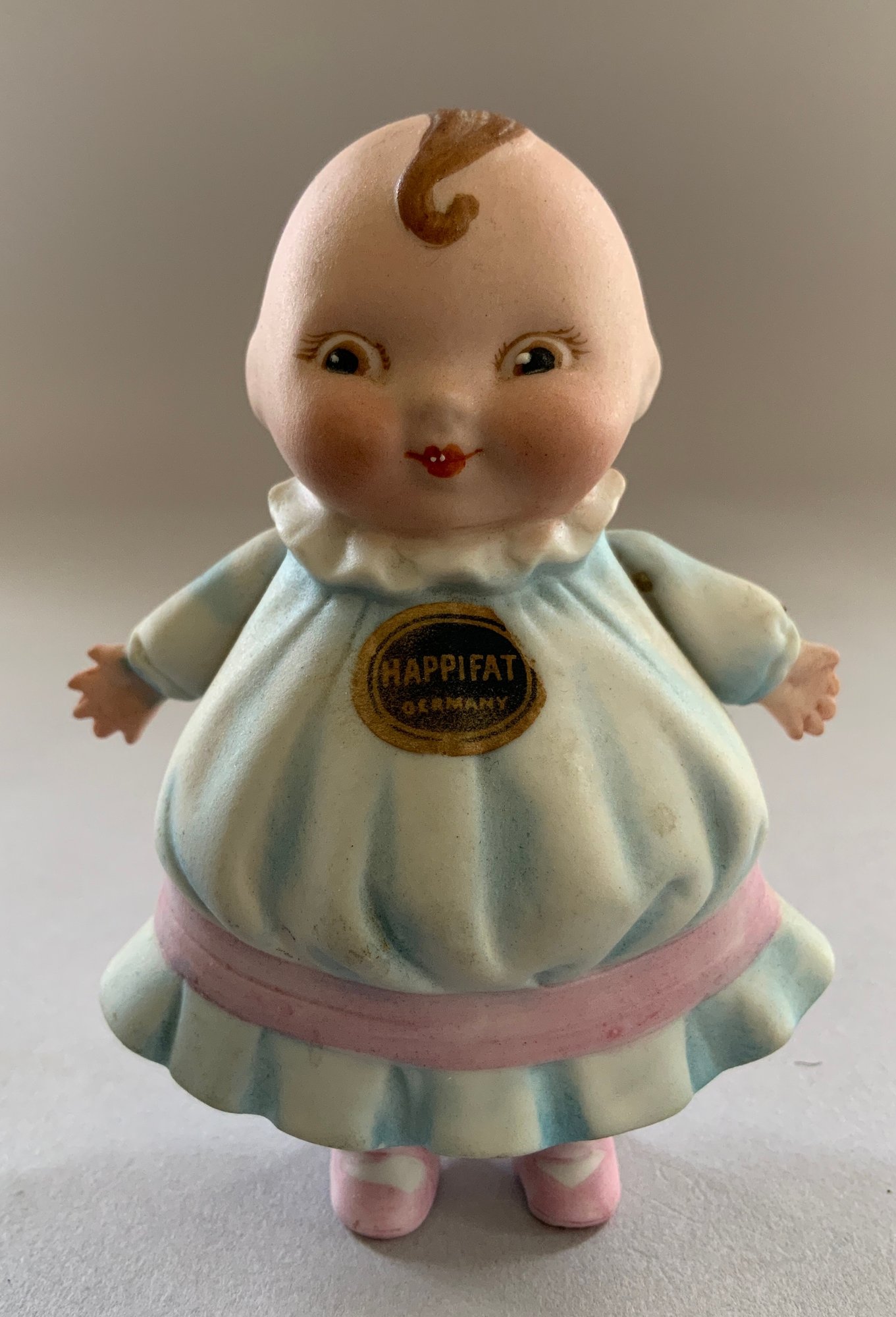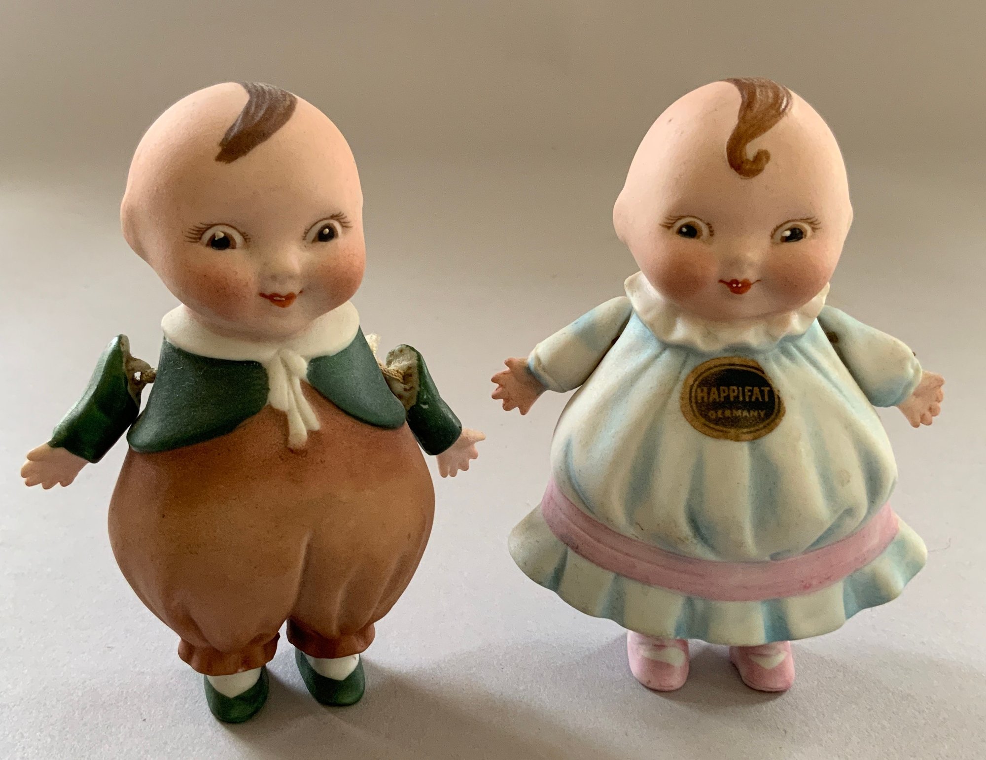 2 – 4” Happifat bisque figures, boy & girl, girl has front label c on foot, boy has c on foot (arms need stringing)