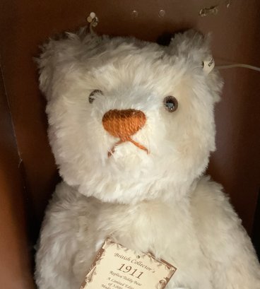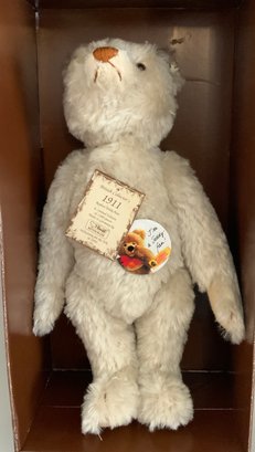 2 – Replica Steiff Bears, 1 - 15” Steiff white British replica 1911 Teddy Bear in original box & 1 – 12 ½” Steiff Blau 35, blue Teddy Bear replica 1908, in original box