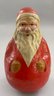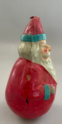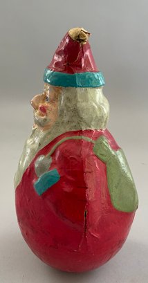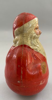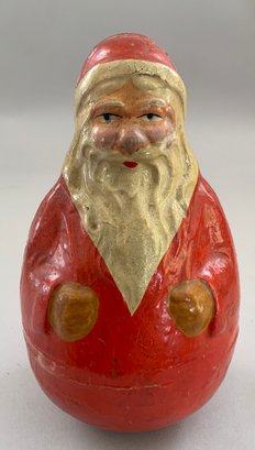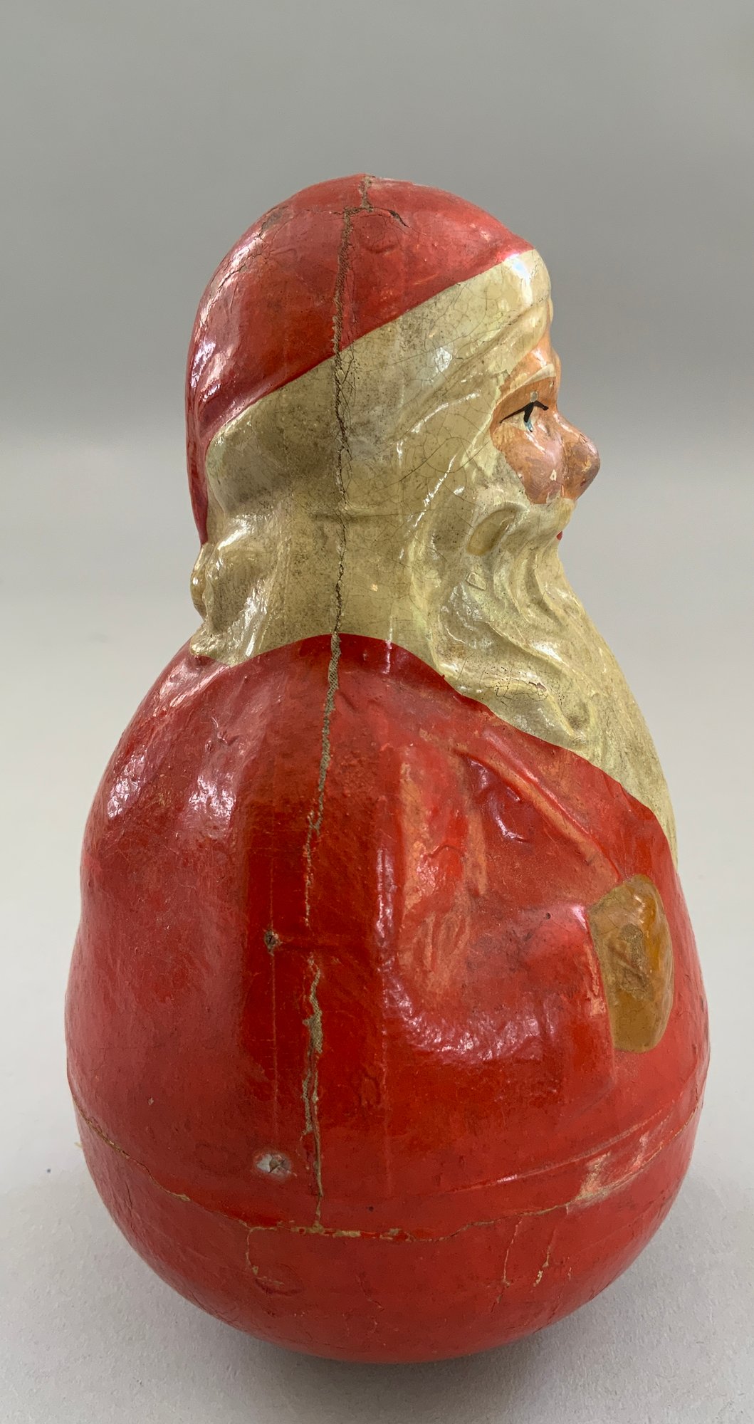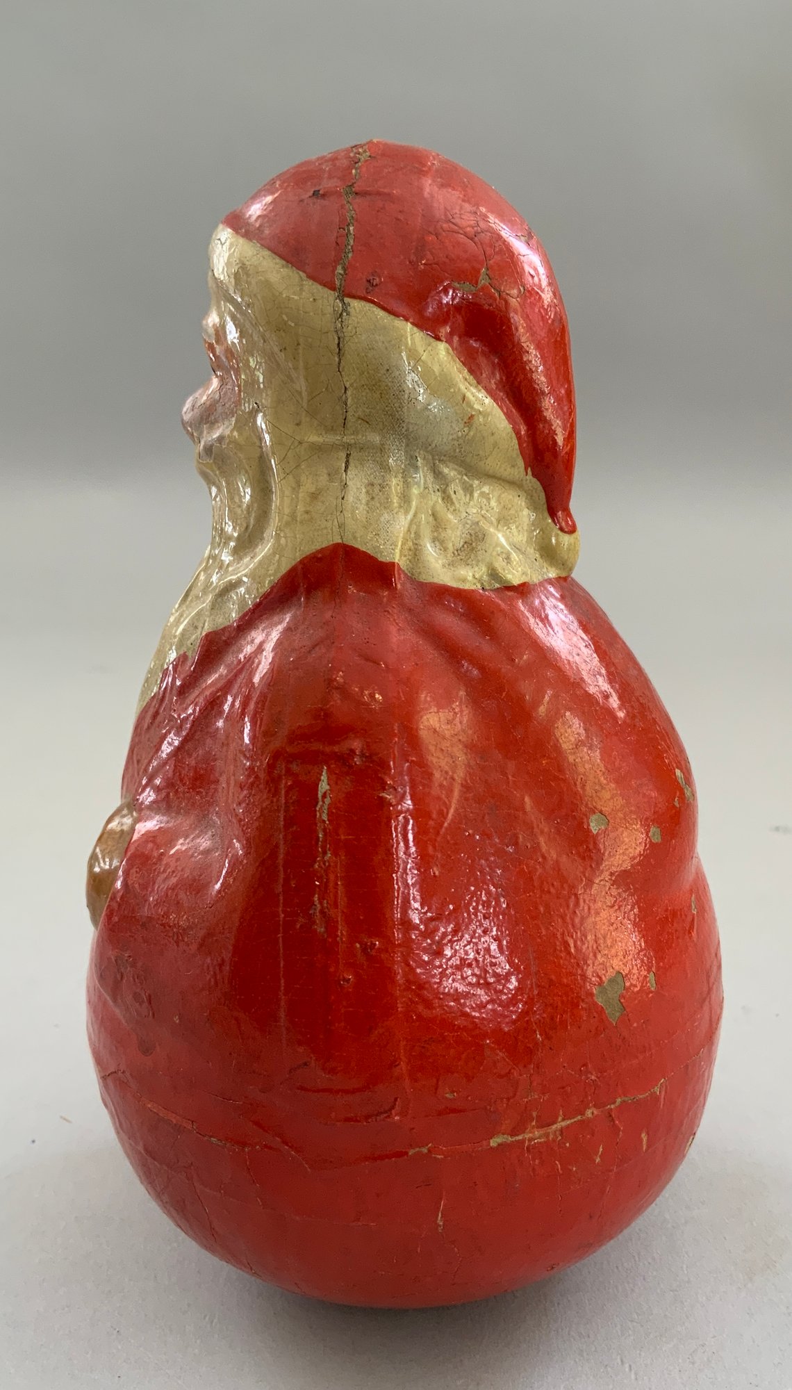 2 – Schoenhut paper mache Rolly Dolly Santa toys, 1 – 8” & 1 – 7”, painted, weighted bases, (chips, cracks, facial touchups on 7”)