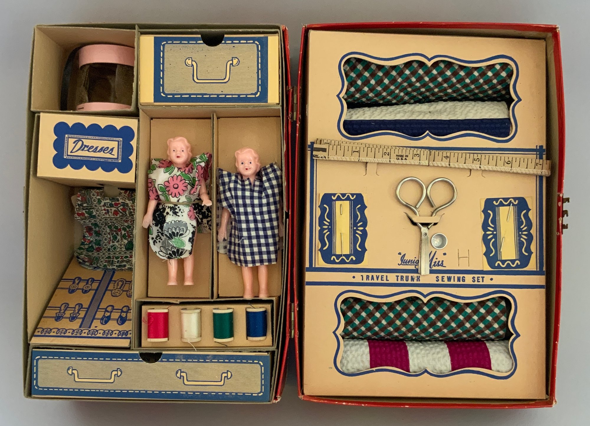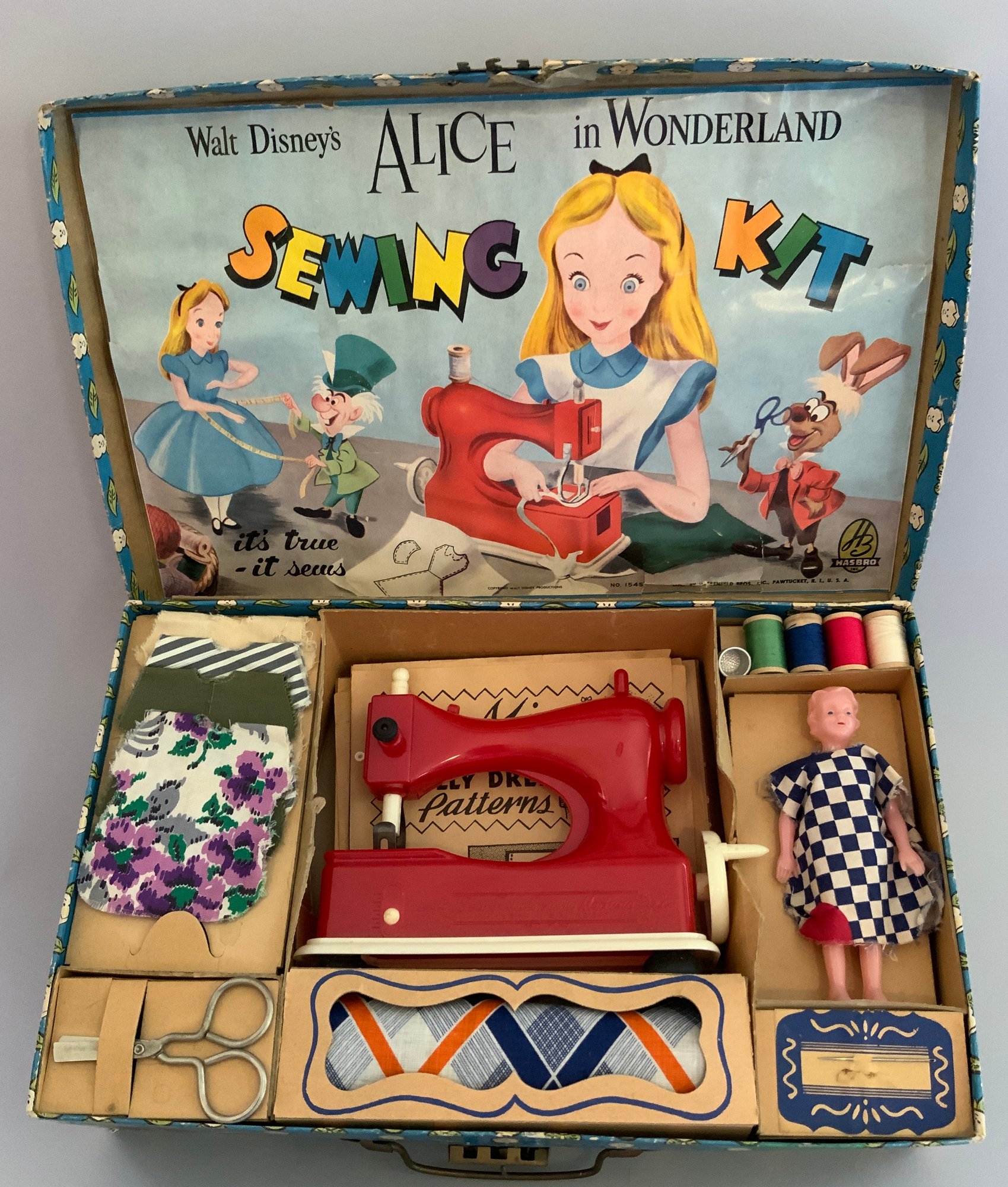 2 - Sewing kits, Walt Disney’s Alice in Wonderland Sewing Kit by Hassenfeld Bros, No 1545, circa 1950’s in original box, & Jr. Miss Travel Trunk No. 1560 circa 1950’s by Hassenfield Bros. in original box