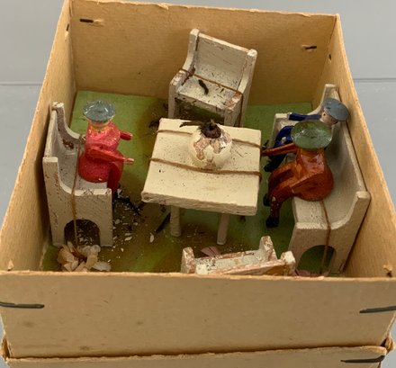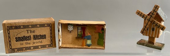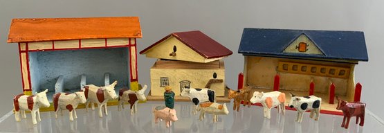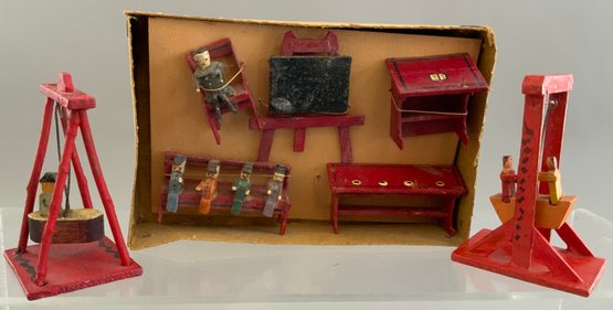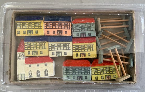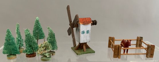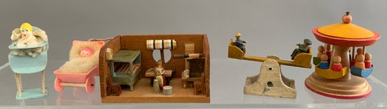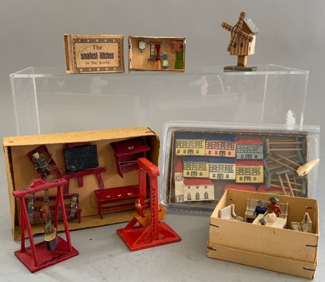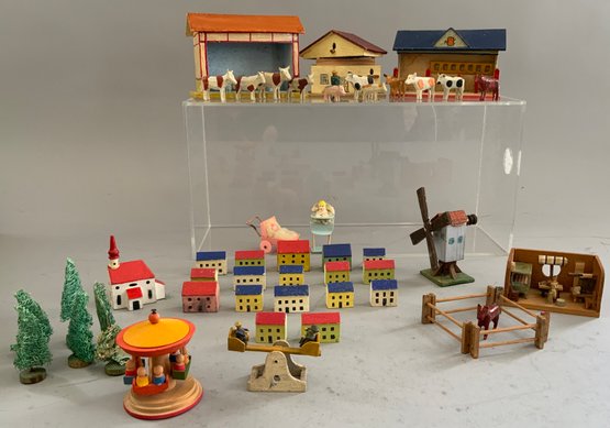 2 – Small display cases 8” x 12” with assorted Erzgebirge animals, buildings, & play items