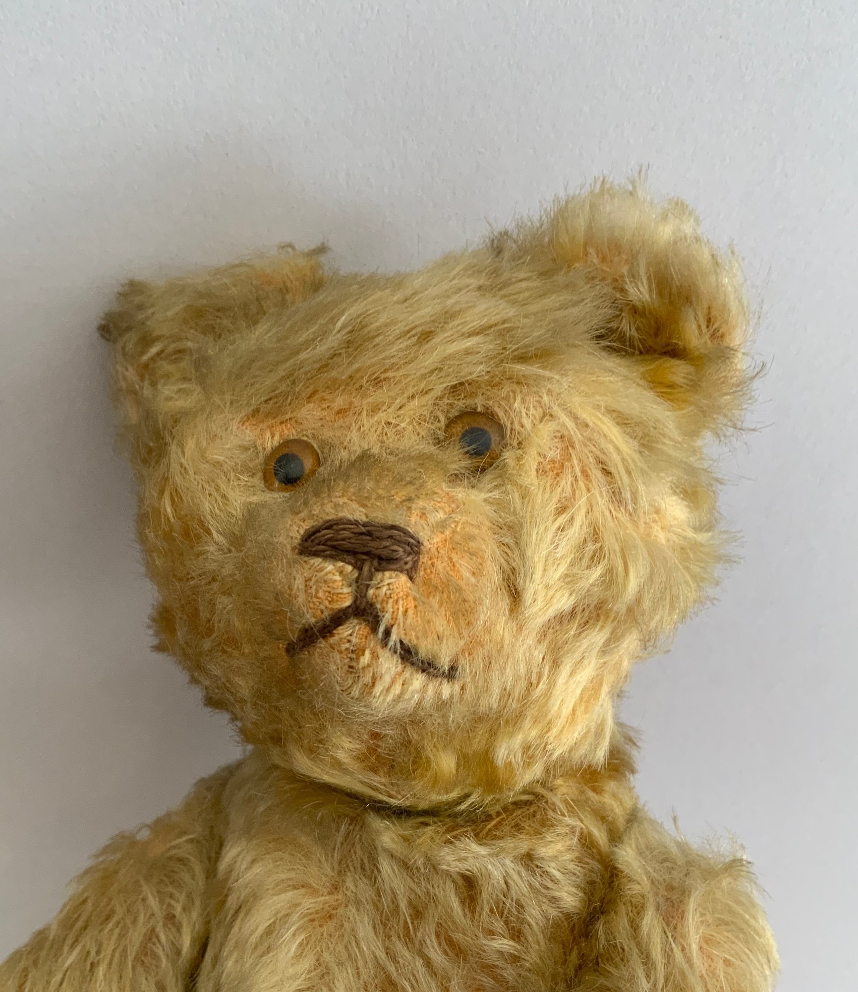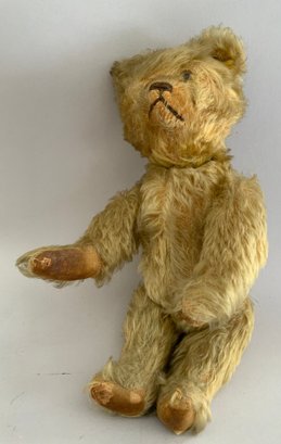 2 Stuffed bears- 1 - 12” Early Schucco Mohair Yes/No bear C. 1930s gold, heavy wear & 1- 10” early jointed gold mohair bear, wear