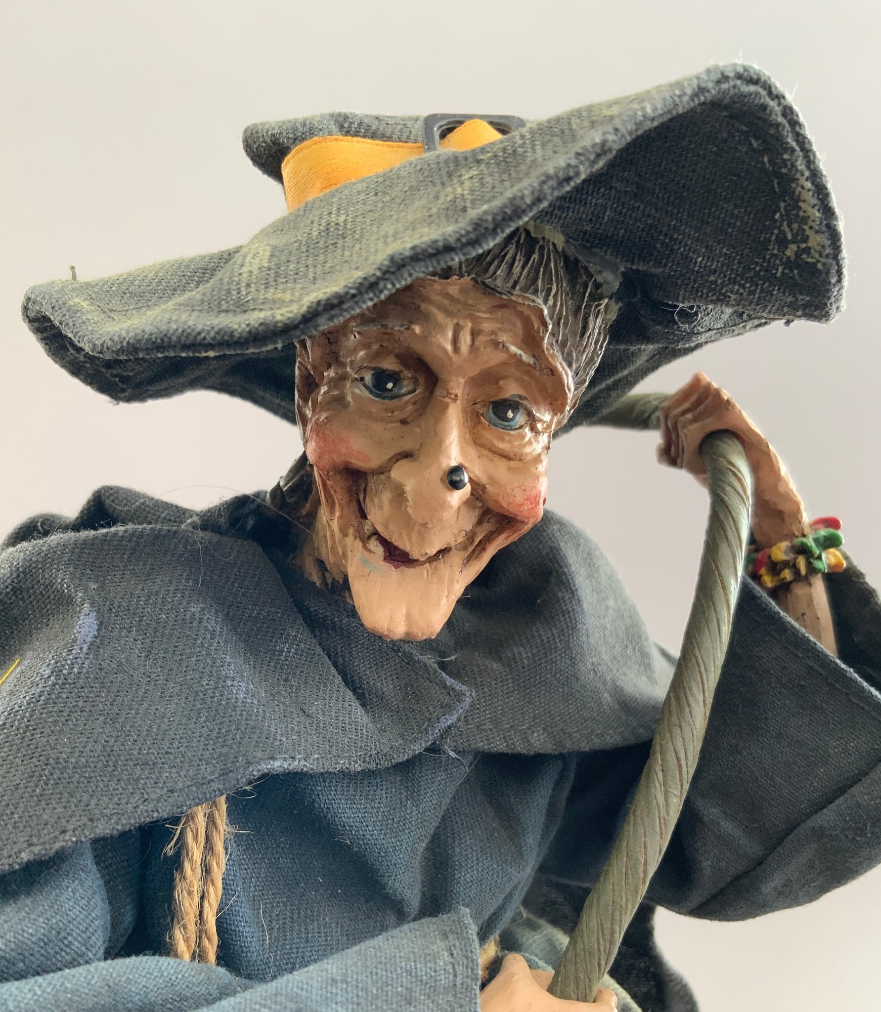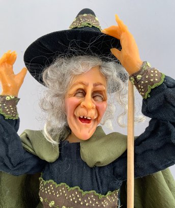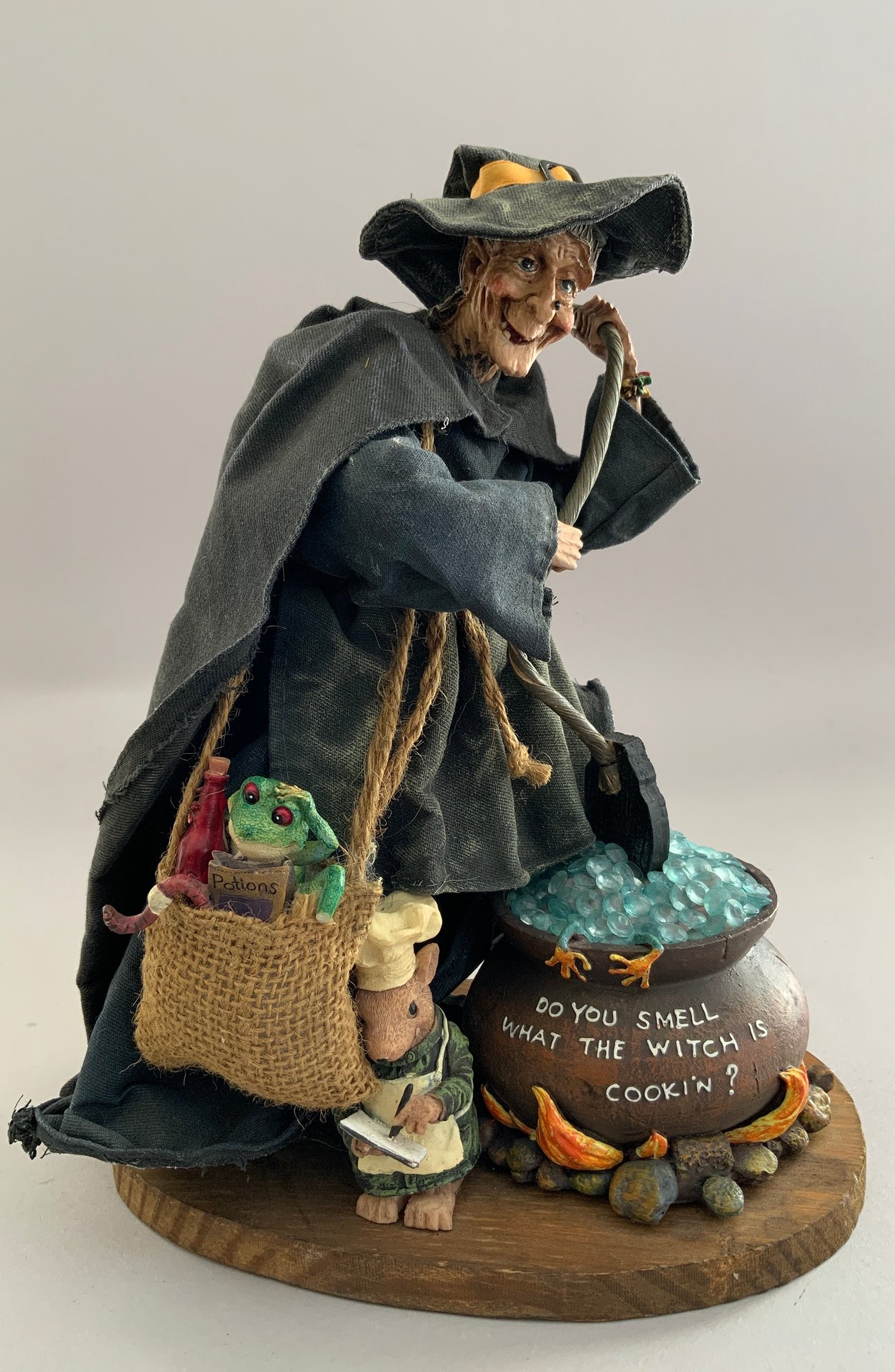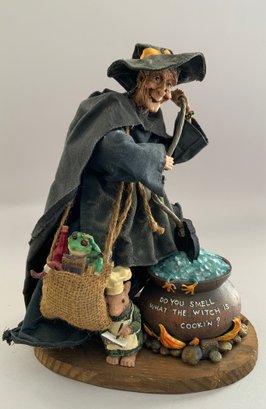2 – Witches, 1 - 15” Witch artist doll, cast resin, by Nancy Arnold, great expression, & 1 – 12” Tall witch on wood base brewing a potion, cast resin