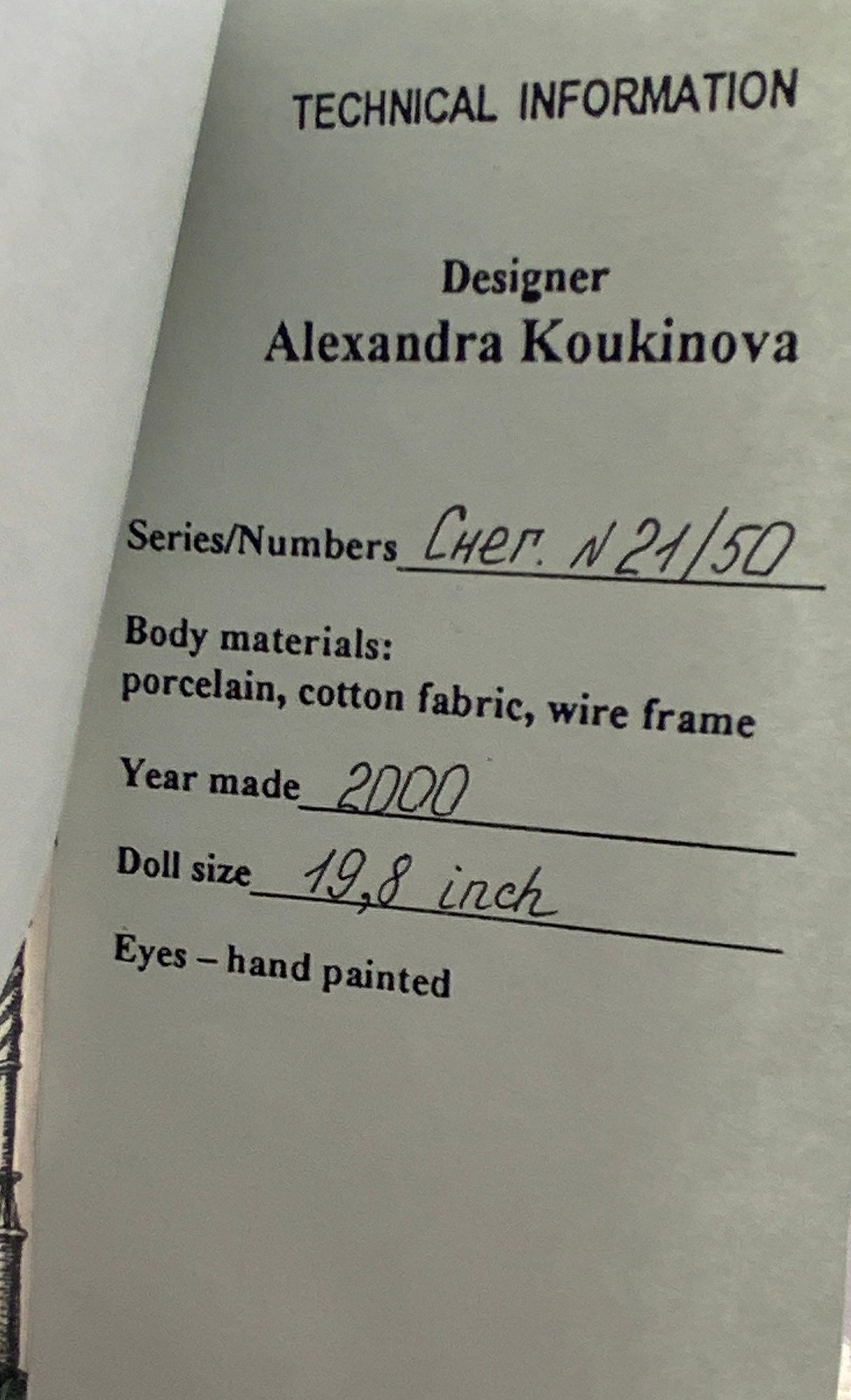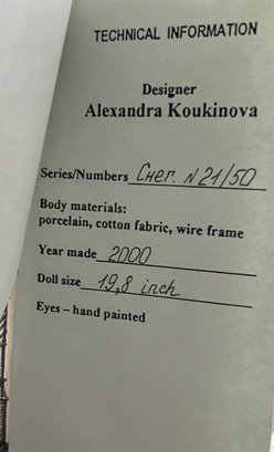20” Artist doll by Alexandra Koukinova “Snow Maiden” 21/50, porcelain year 2000, daughter of Father Frost, hand painted features, with hang tag