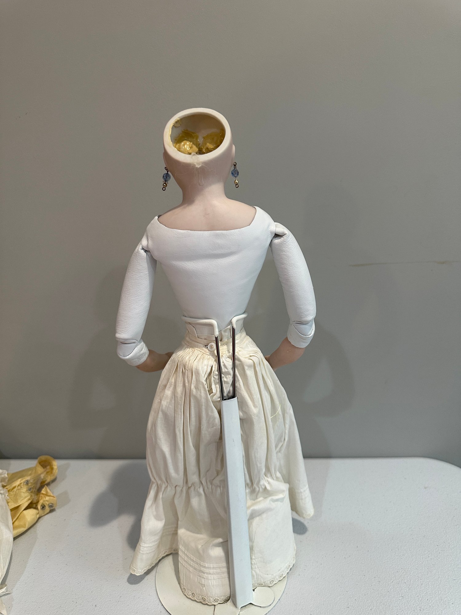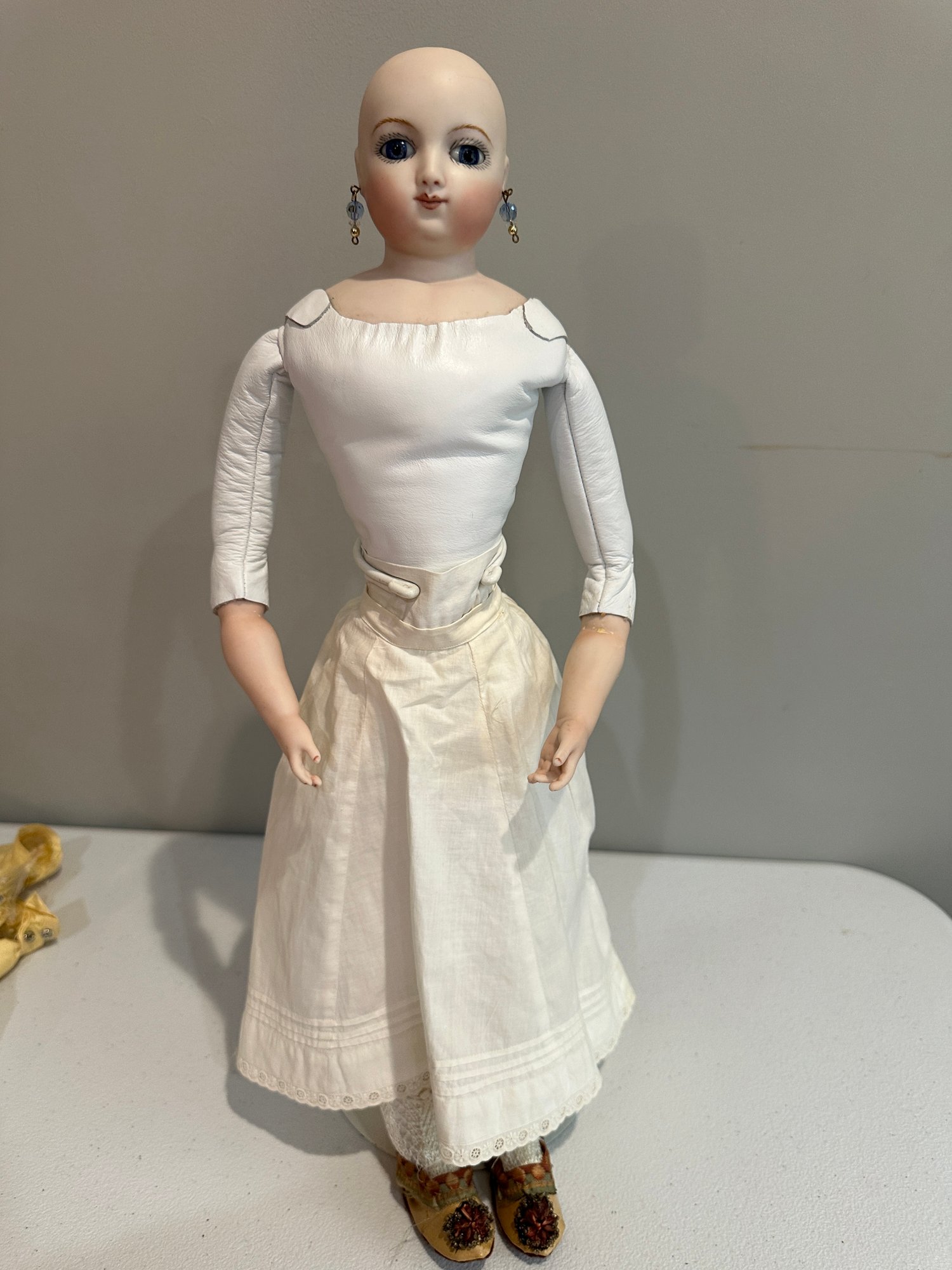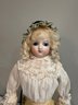 20” Reproduction fashion, blue set eyes, nicely dressed, blonde mohair wig