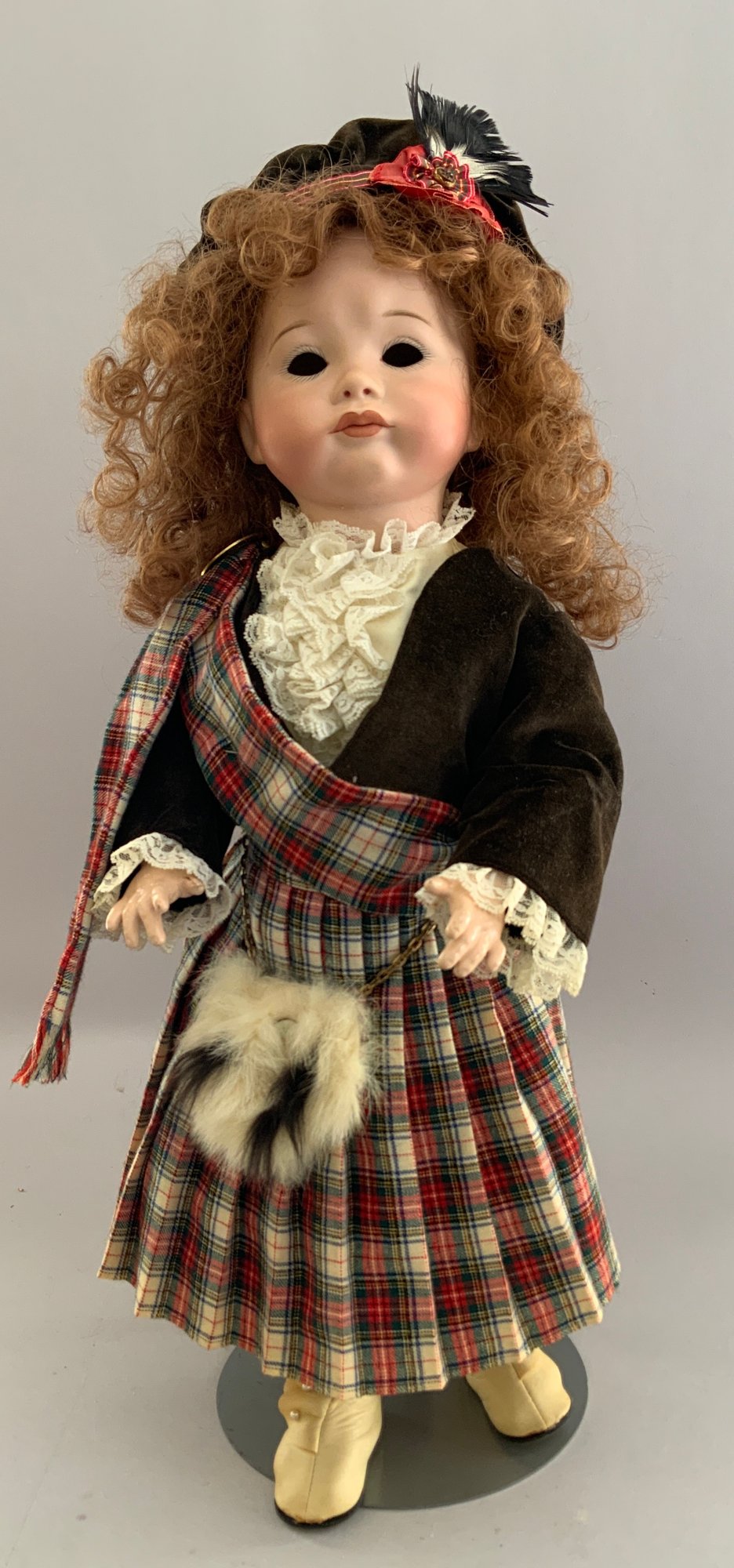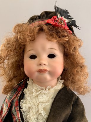 21” Shirley Antoon Artist Doll: S.F.B.J. 252 1987, eyes are broken inside of head, CM, red mohair wig, compo body, plaid outfit