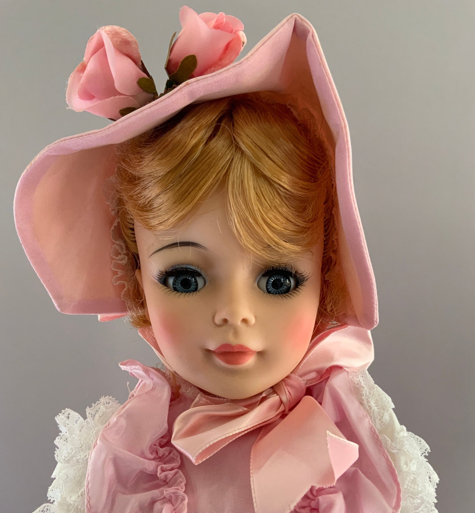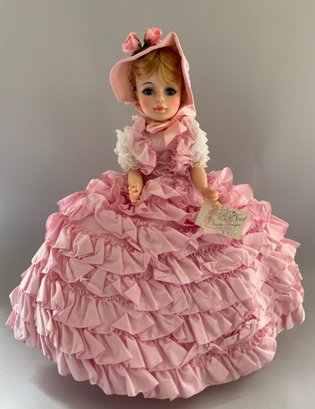 22” Portrait Mme. Alexander (has a tag signed by Mme Alexander dated “4-13-69”) “…as elegant as the finest portrait painted by the masters…” Wearing a gown of pink “silk” taffeta, hat & shoes, unplayed with