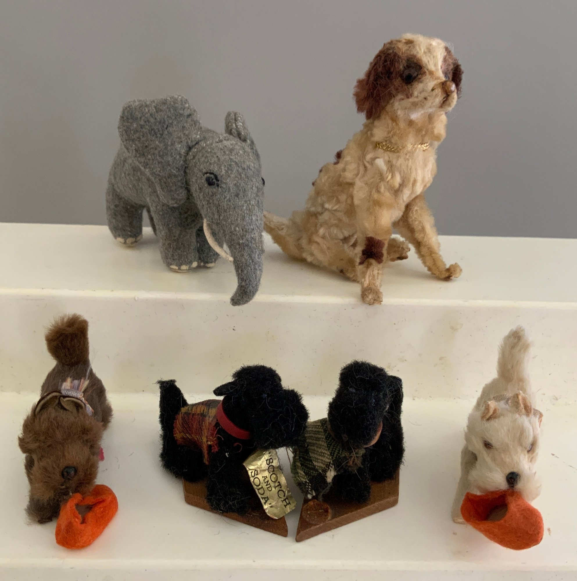 25 Small early fur/felt covered animals (1 rooster), 1 ½” – 6”, some marked Germany, played with condition