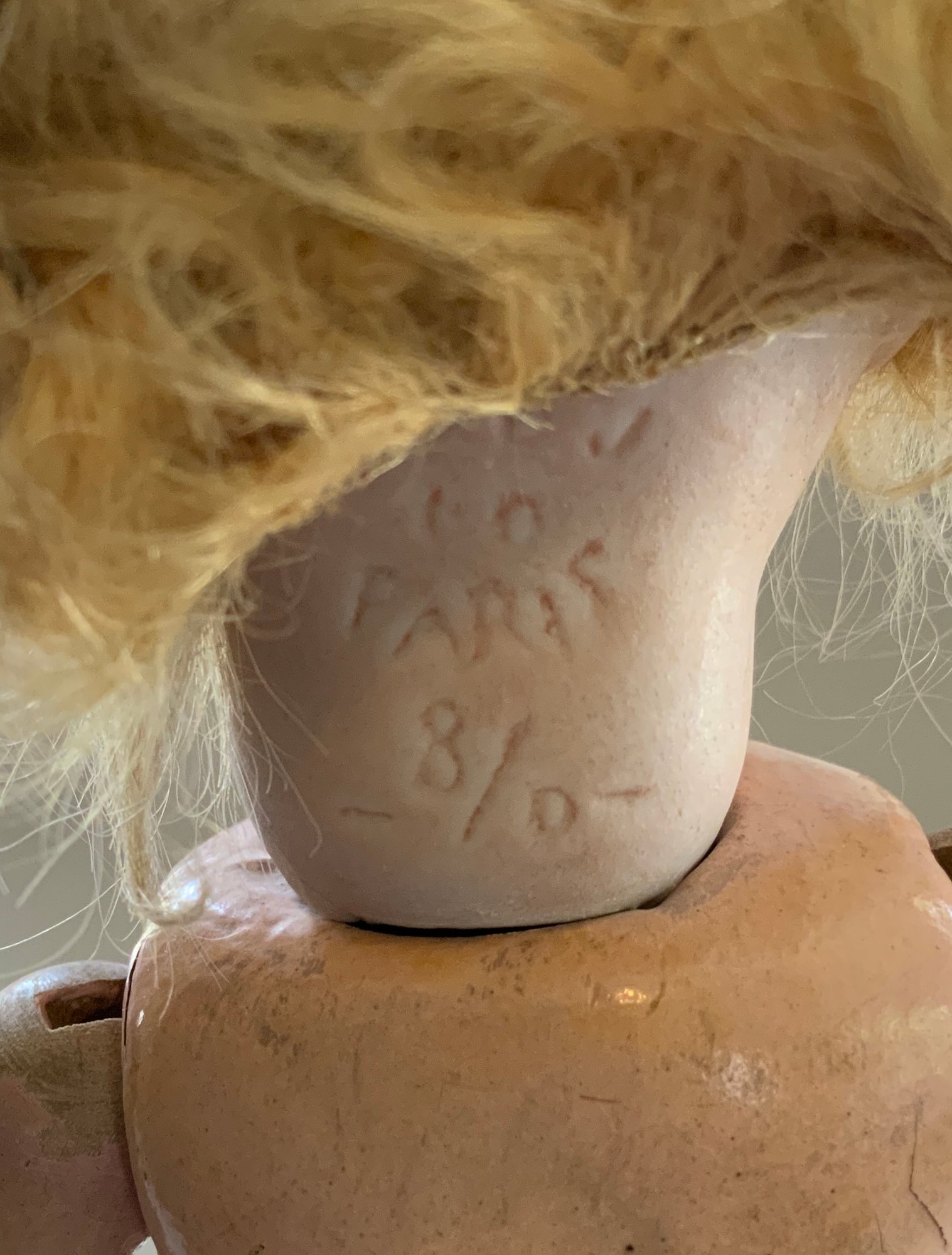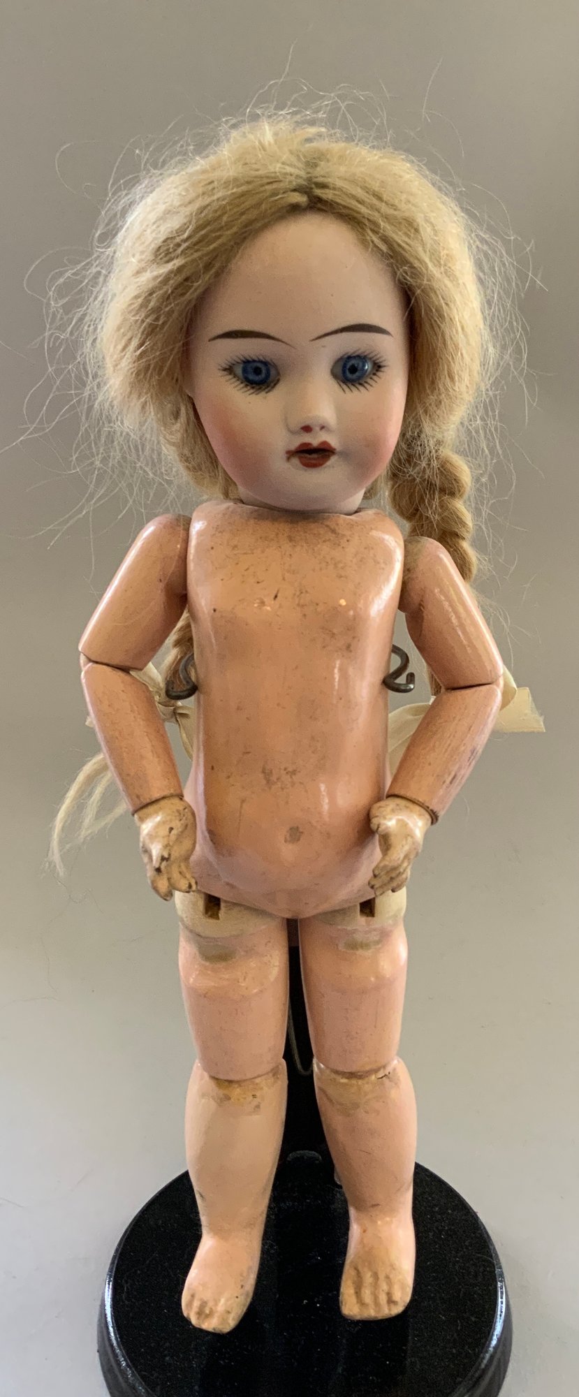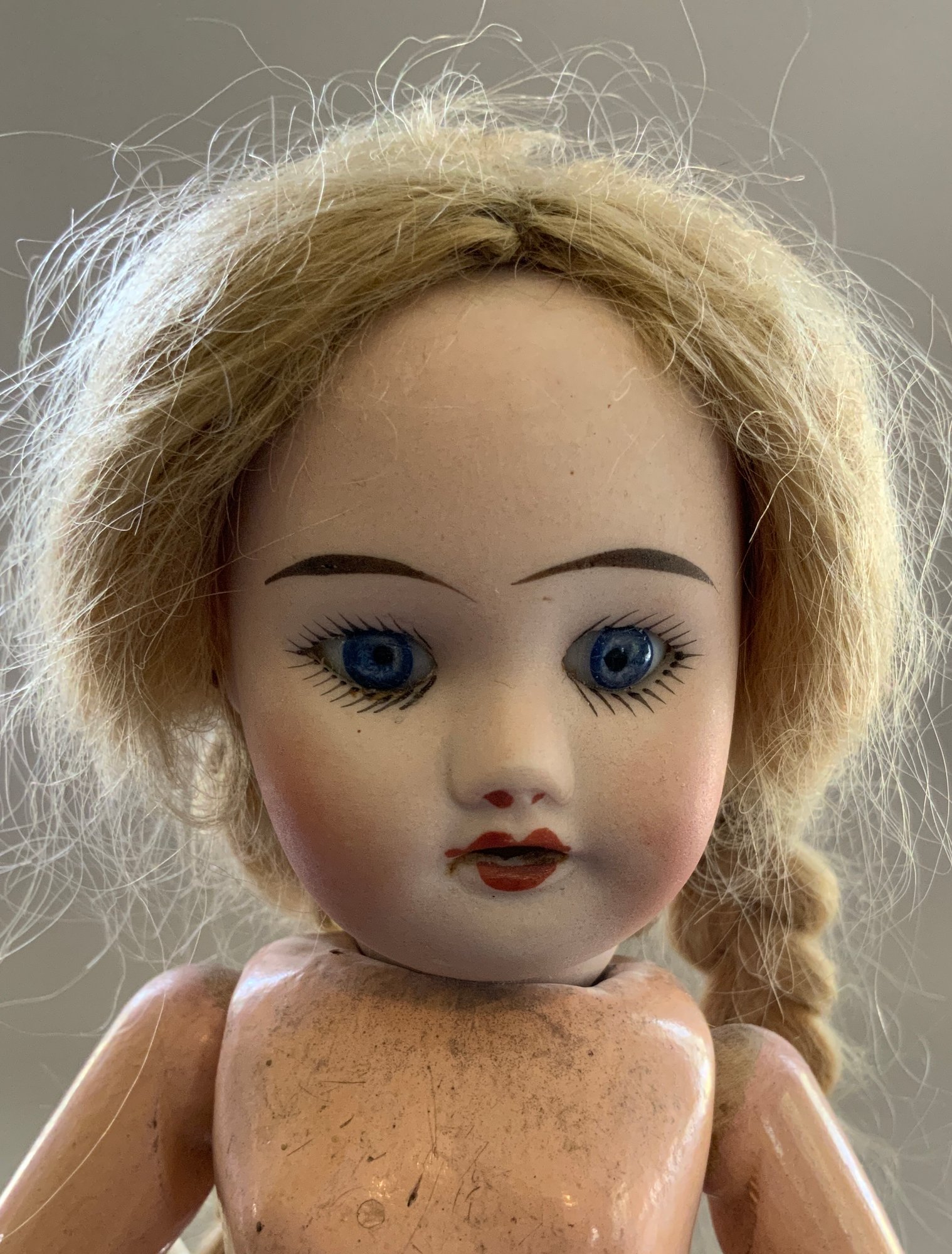 27 CM Bluette SFBJ 60 Paris 8/0, blue glass eyes, OM with 4 teeth, blonde mohair wig, compo body feet incised 1, no clothes