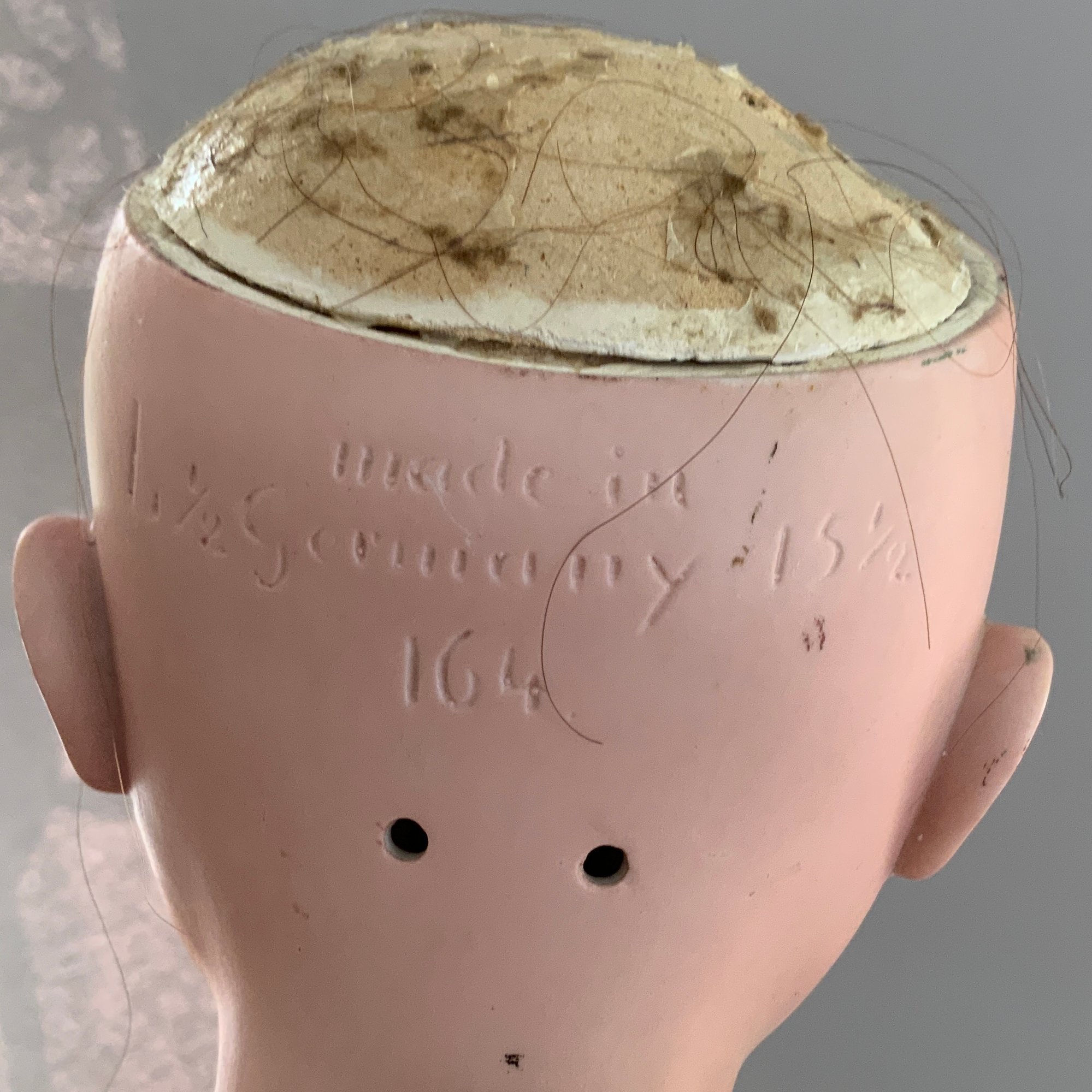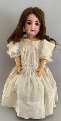 28” Kestner 164, brown glass sleep eyes, OM with teeth, brown mohair wig, BJCB, white dress