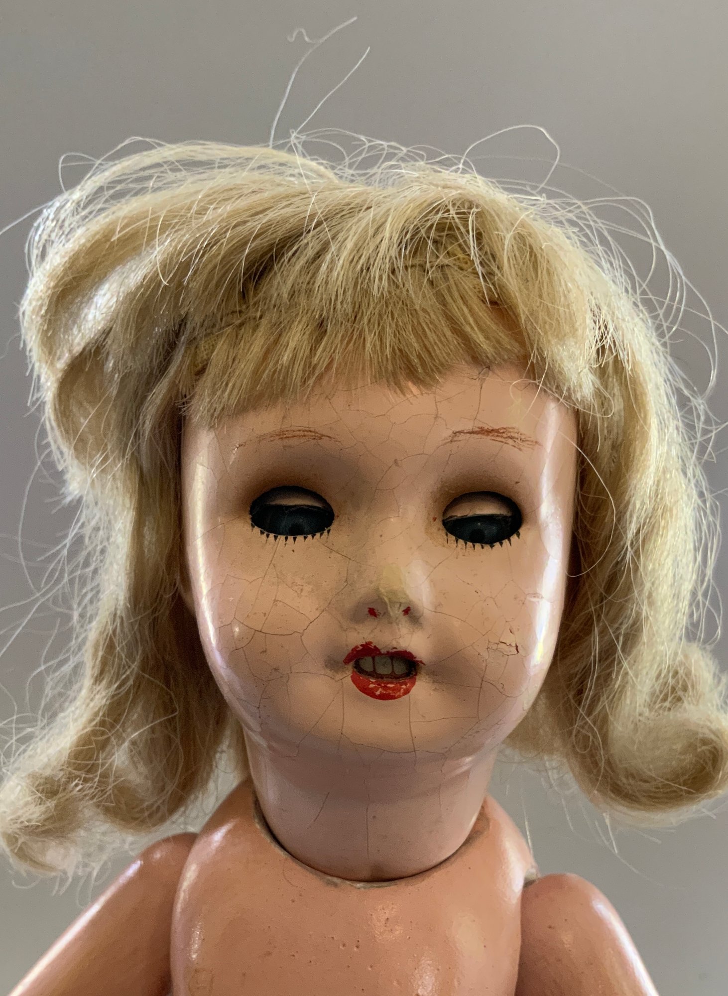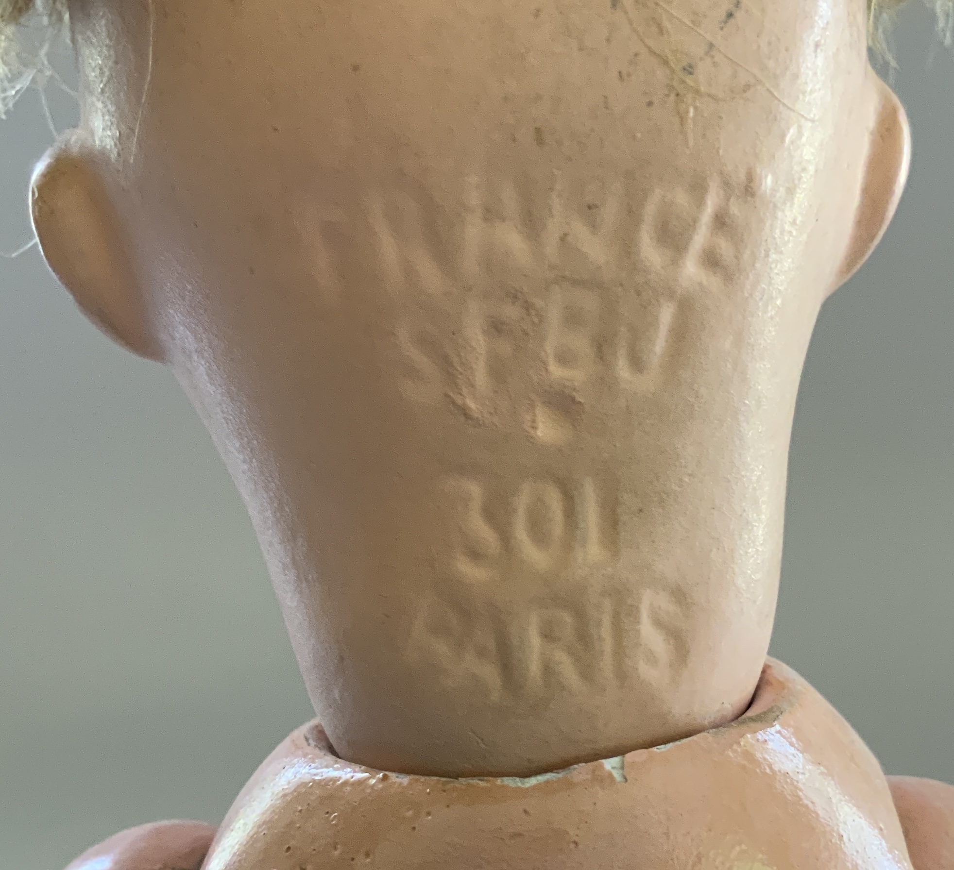 29 CM Bluette France SFBJ 301 Paris 1 compo head, blue glass sleep eyes, OM with 4 teeth, compo body 2 mark back feet mark 1, no clothes