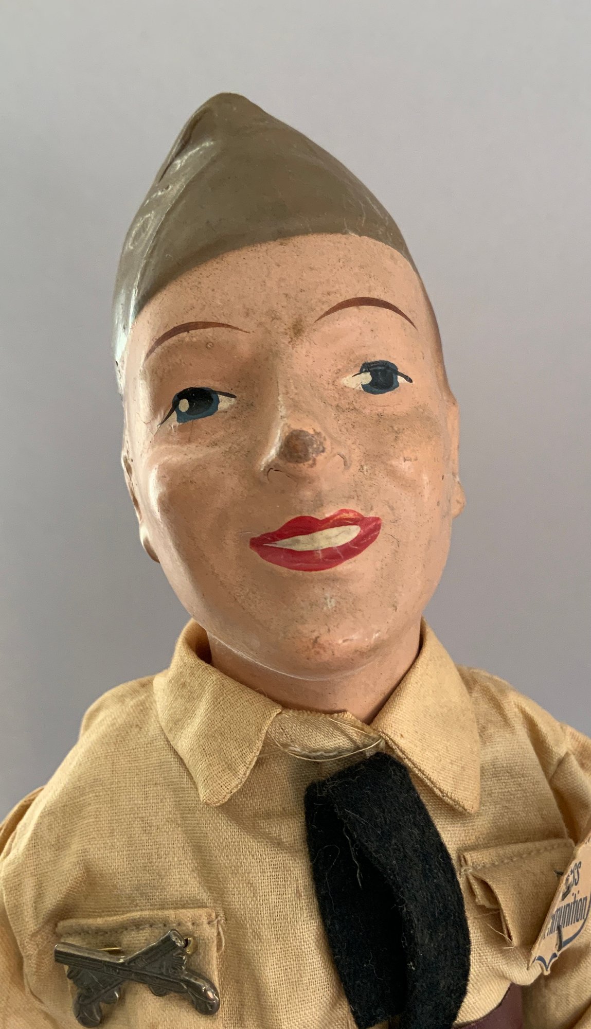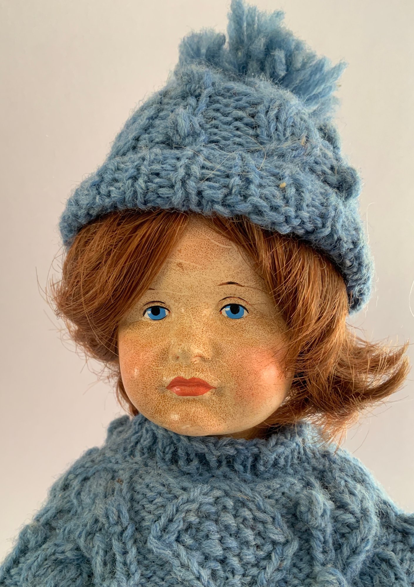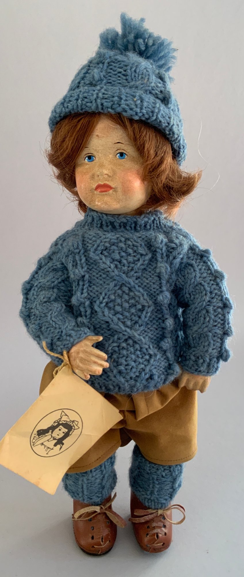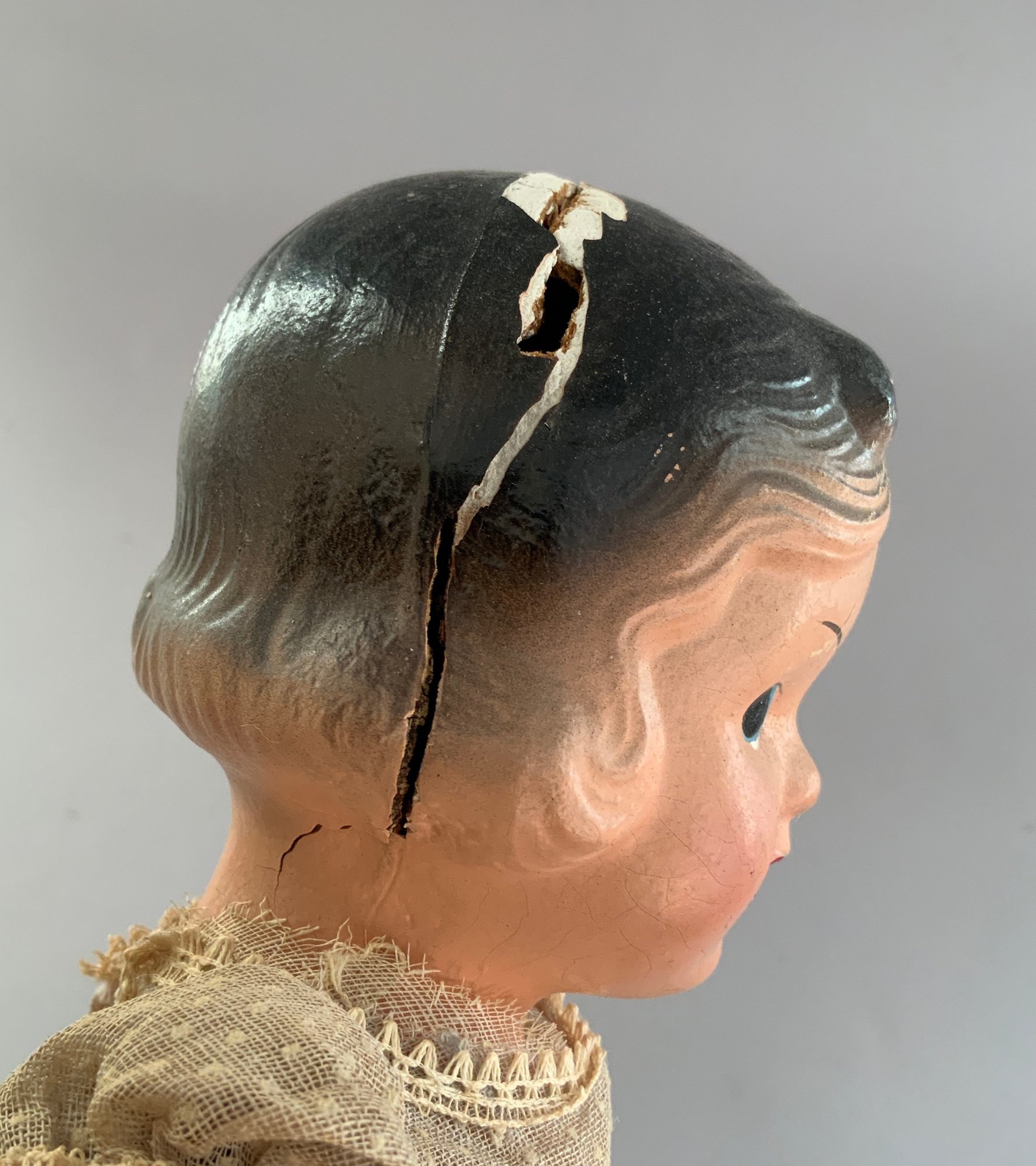 3 – Composition dolls, 1 -14” Phylliss Gift “Jellison” artist doll K*R114 PGJ83 mark, blue knit outfit, 1 – 13” cracked head in brown pin dot dress, & 1 – 15” Douglas MacArthur by Freundlich in uniform, left leg loose