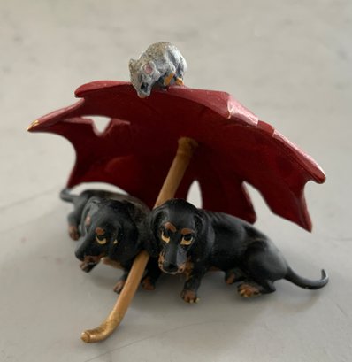 3 – Small Vienna bronze cold painted Dachshund figures about 2” long