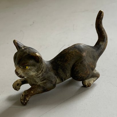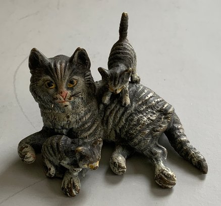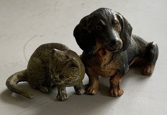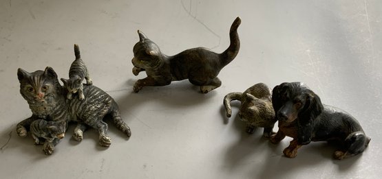 3 small Vienna bronze cold painted figures, 1 - 2" cat & 2 kittens, 1 - 3"cat & Daschshund, & 1 - 2 1/2"pouncing cat, light wear