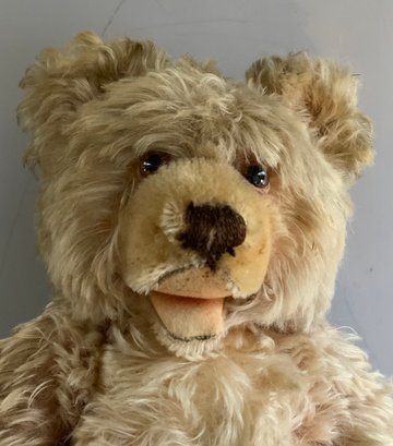 3 – Steiff bears, 15” blonde/brown (faded) mohair bear (no button) 2- 5 ½” light brown mohair bears, one wit button, good condition, swivel necks, jointed overall good condition