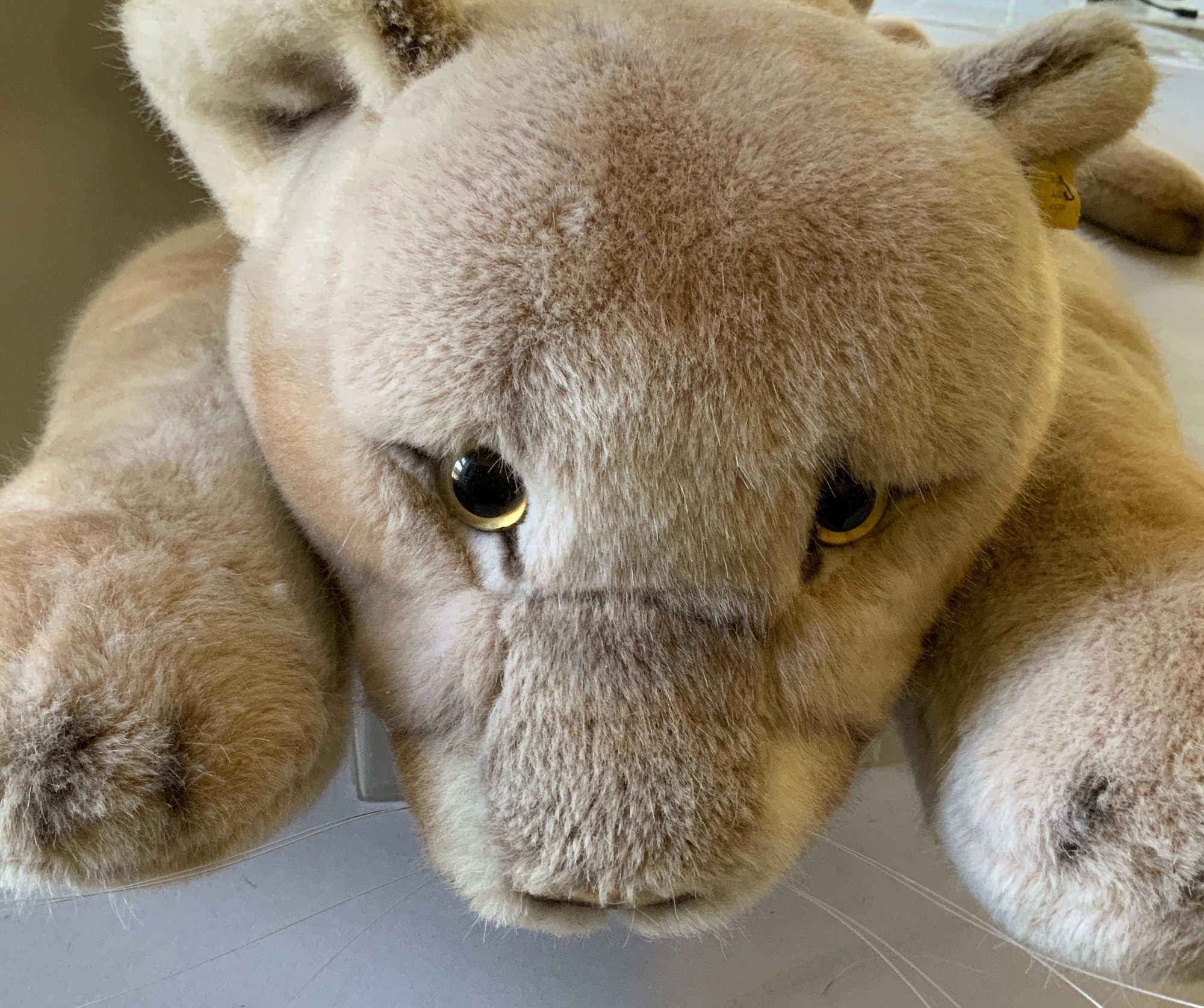 39” plus tail Steiff studio lying down mohair Puma, with tag & button, WILL NOT SHIP