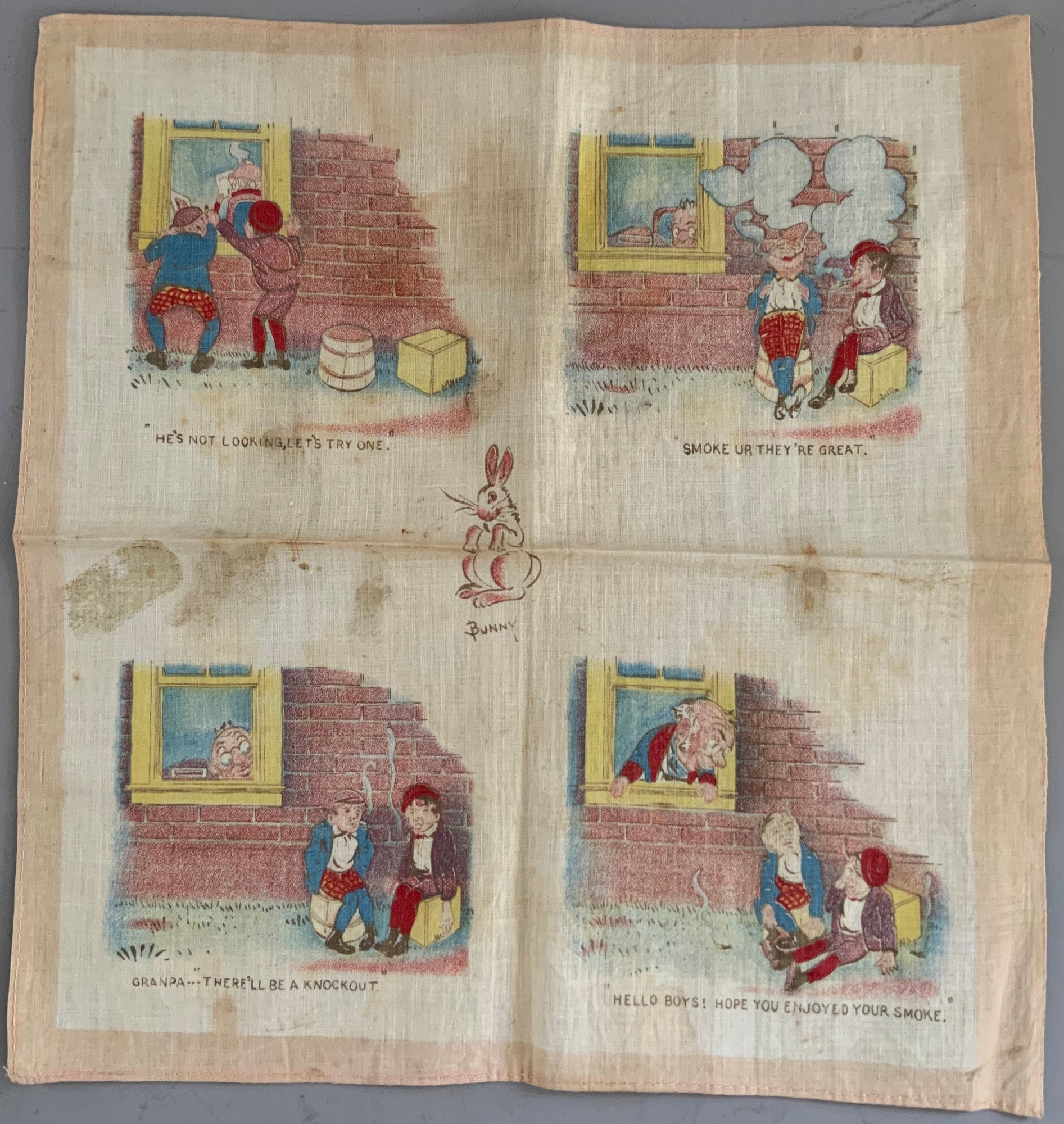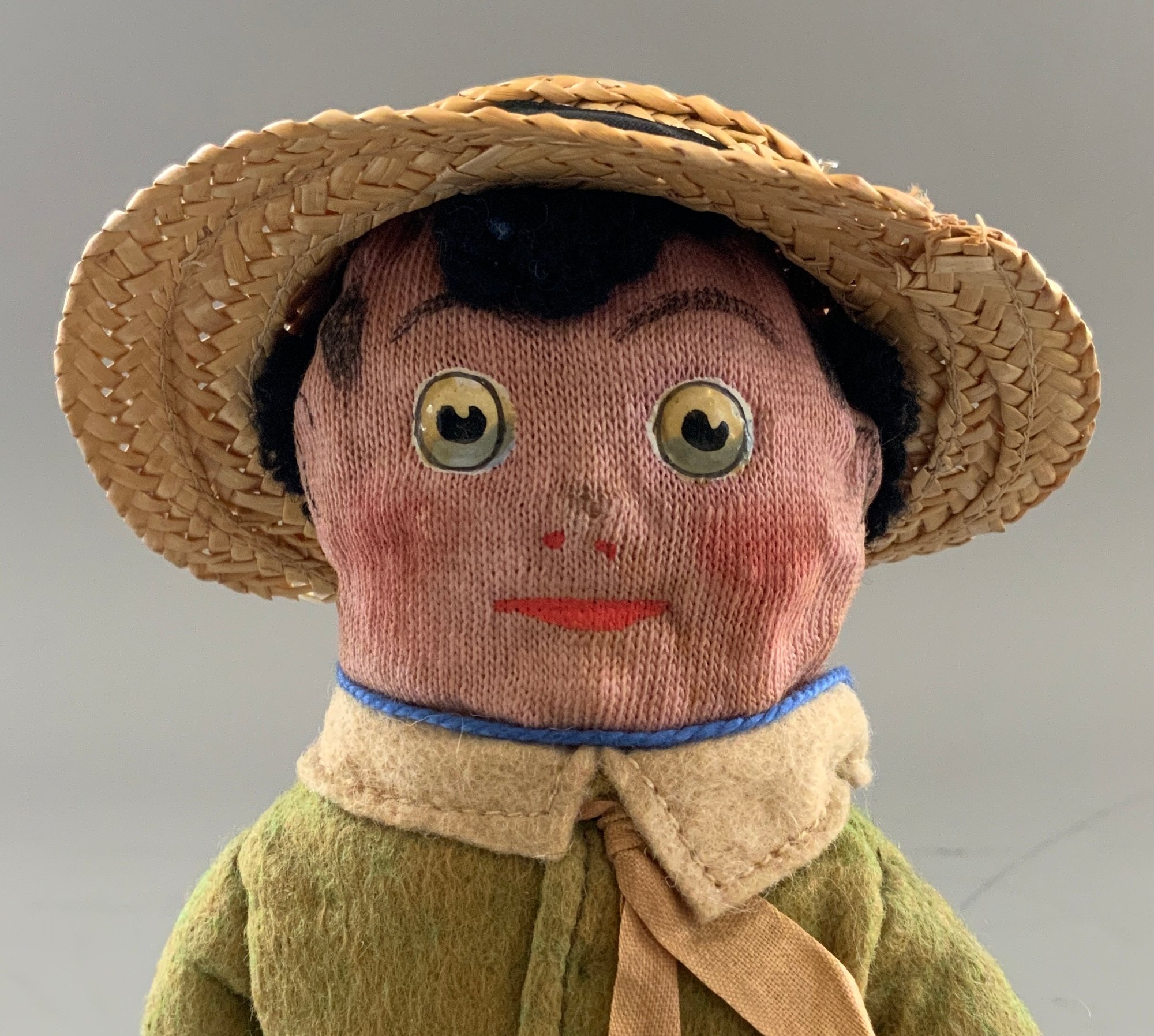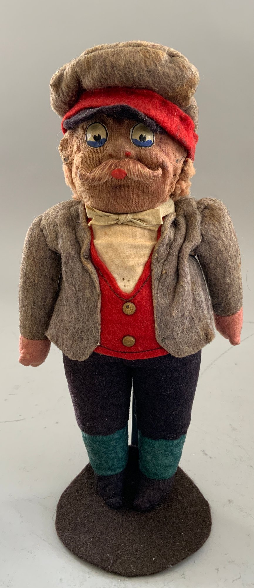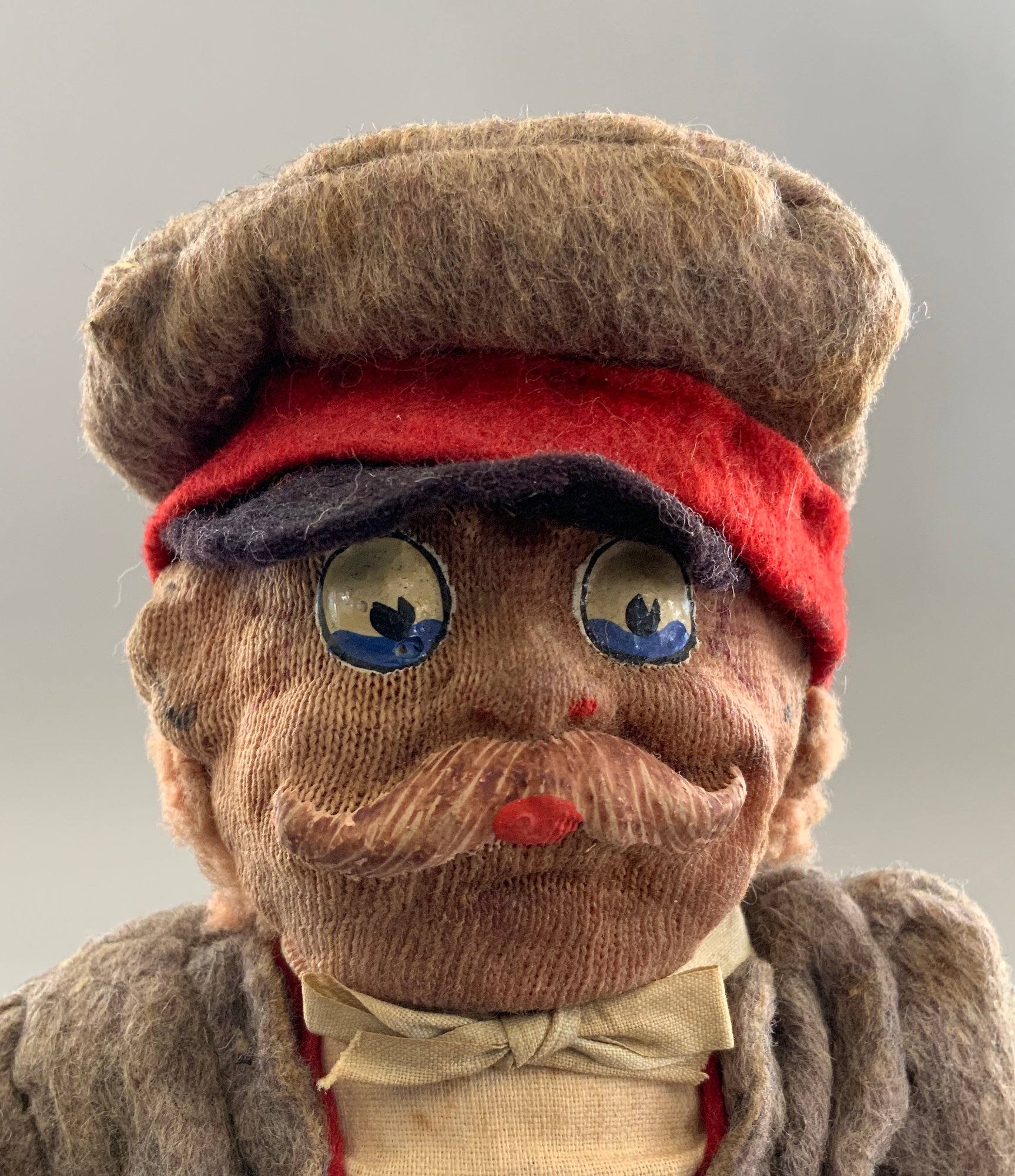 4 – Cloth Foxy Grandpa and the boys character dolls, sculpted & painted features, 8 ½” – 11”, 1 has DCA 2005 1st place ribbon, some holes & wear, along with a Foxy Grandpa pin & 4 – Foxy Grandpa handkerchiefs (2 sewn together)
