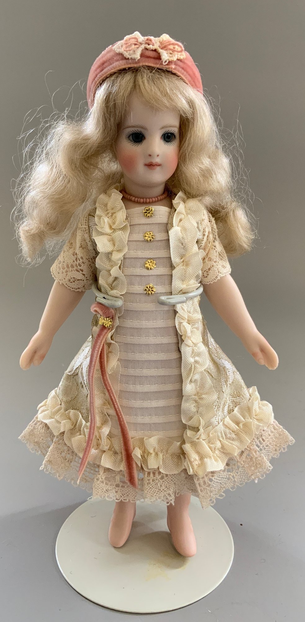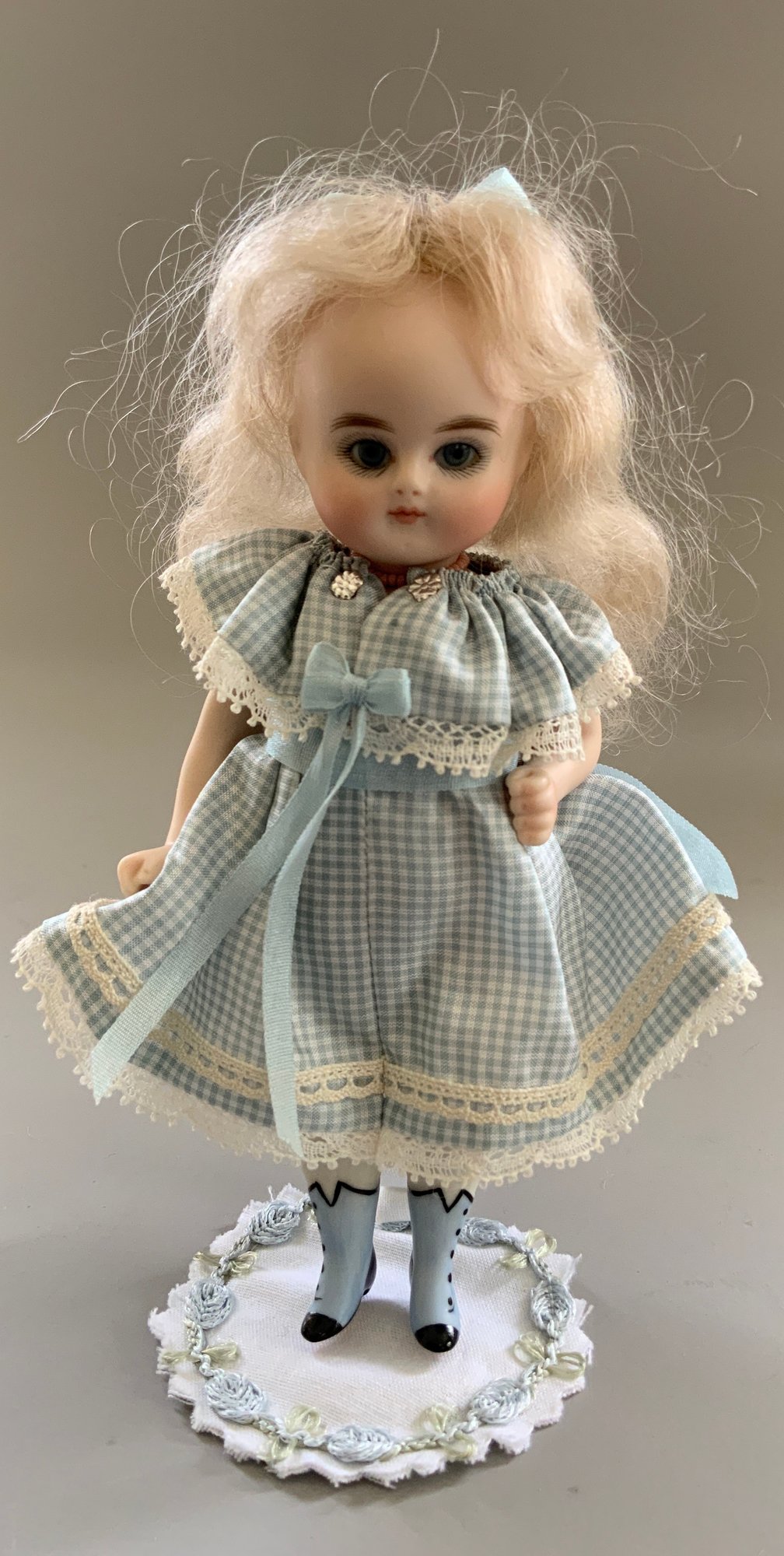 4 – Darlene Lane artist dolls, 1 – 6” “Blue Bonnet” 2014 UFDC luncheon doll, 2 – 5 ¼” Mignonette UFDC convention dolls, & 1 – 7” French couture replica doll, foot signature, along with some Darlene Lane pamphlets