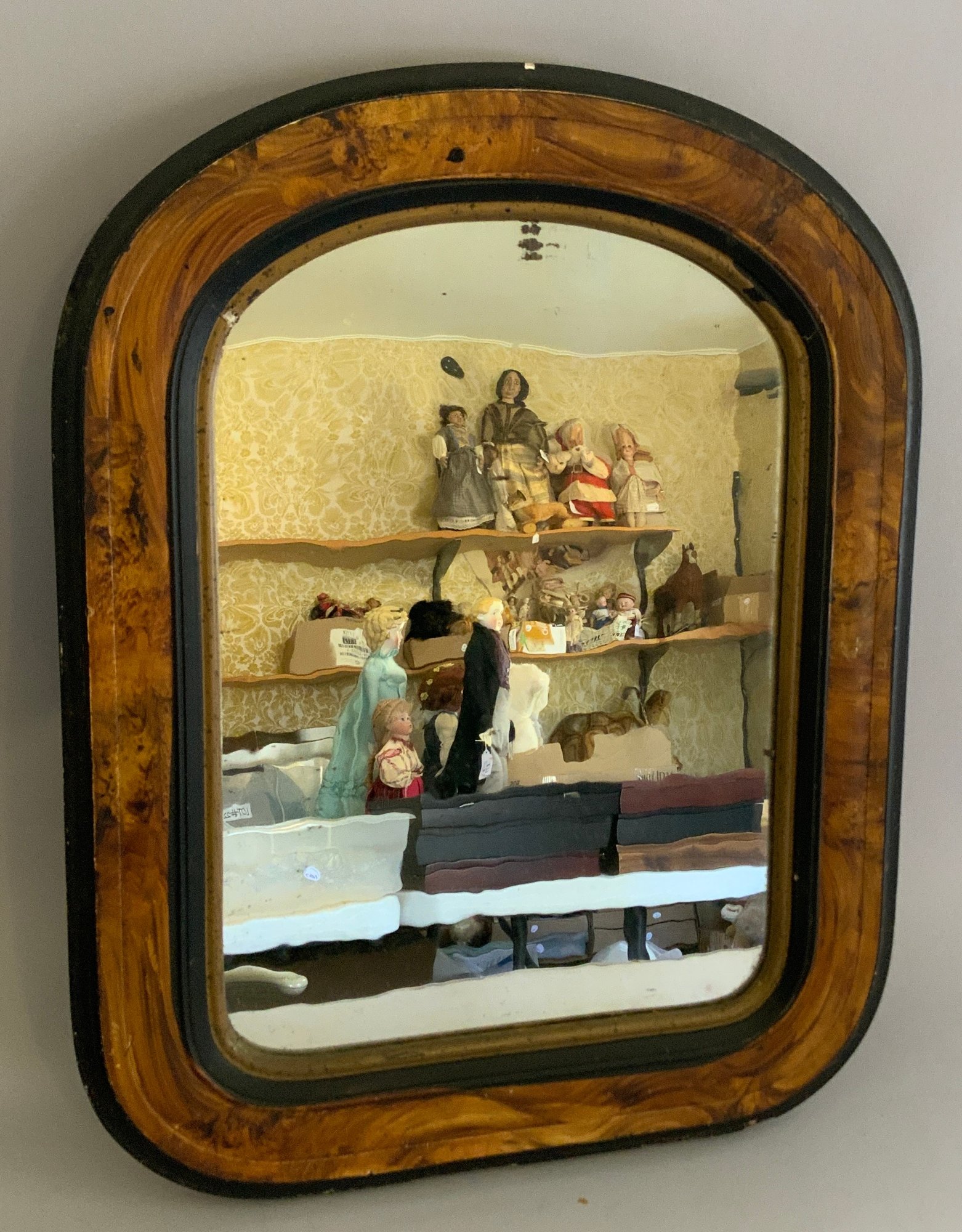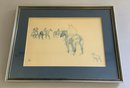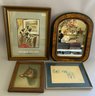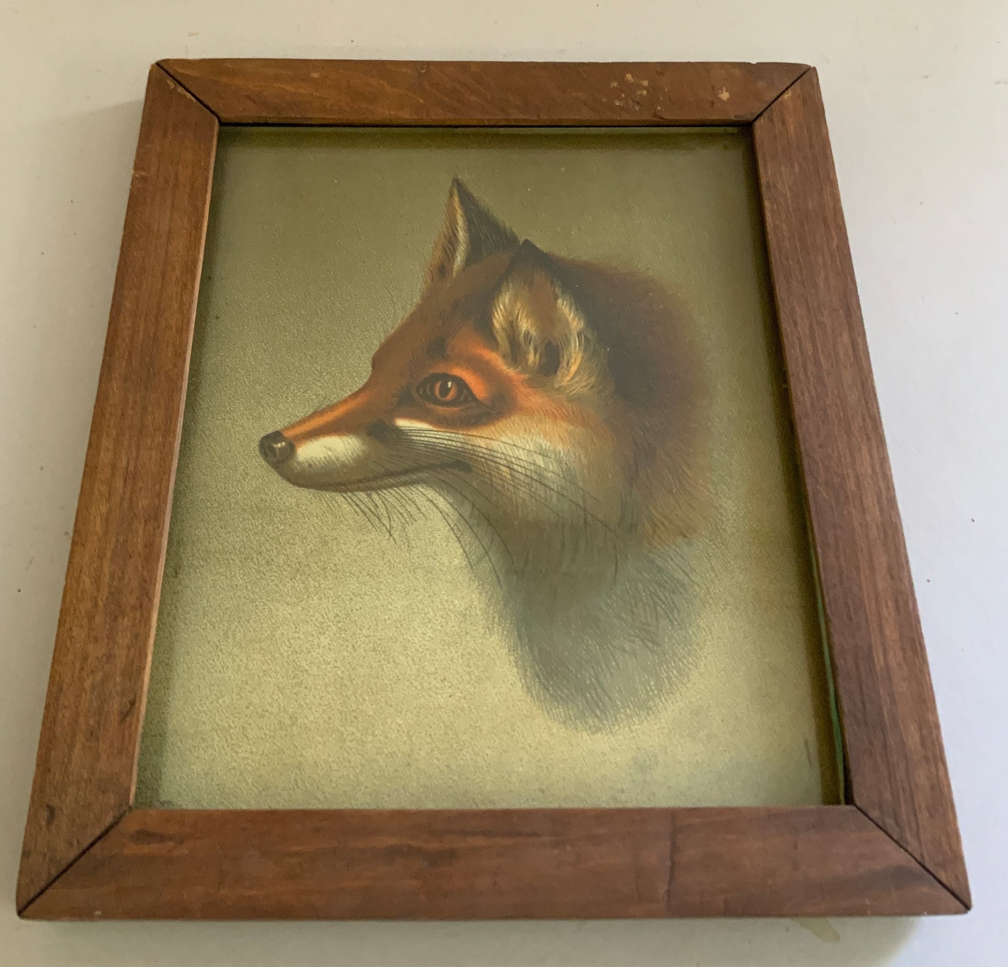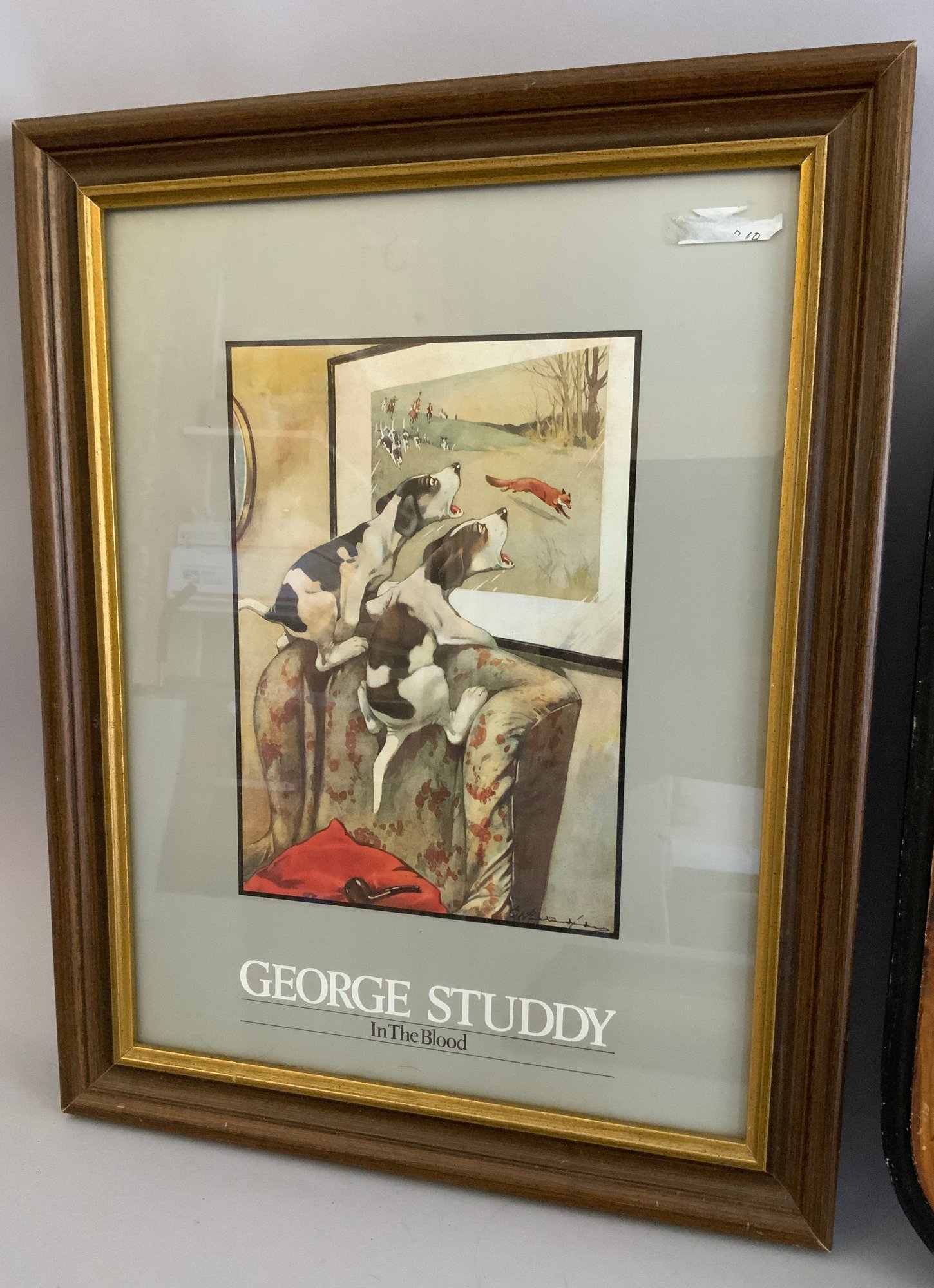 4 – Framed wall art items, 18” x 14” grain painted mirror, litho 11” x 9 ½” fox, 10” x 13 ½” Fredrick Remington print, 19” x 15” George Studdy poster of hound dogs