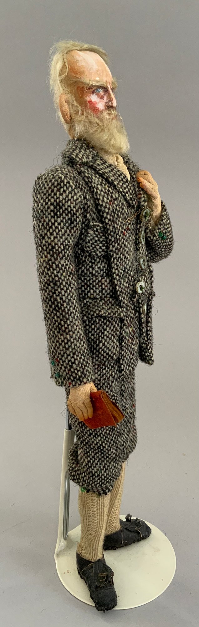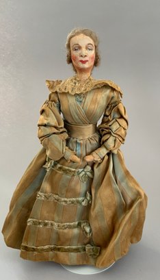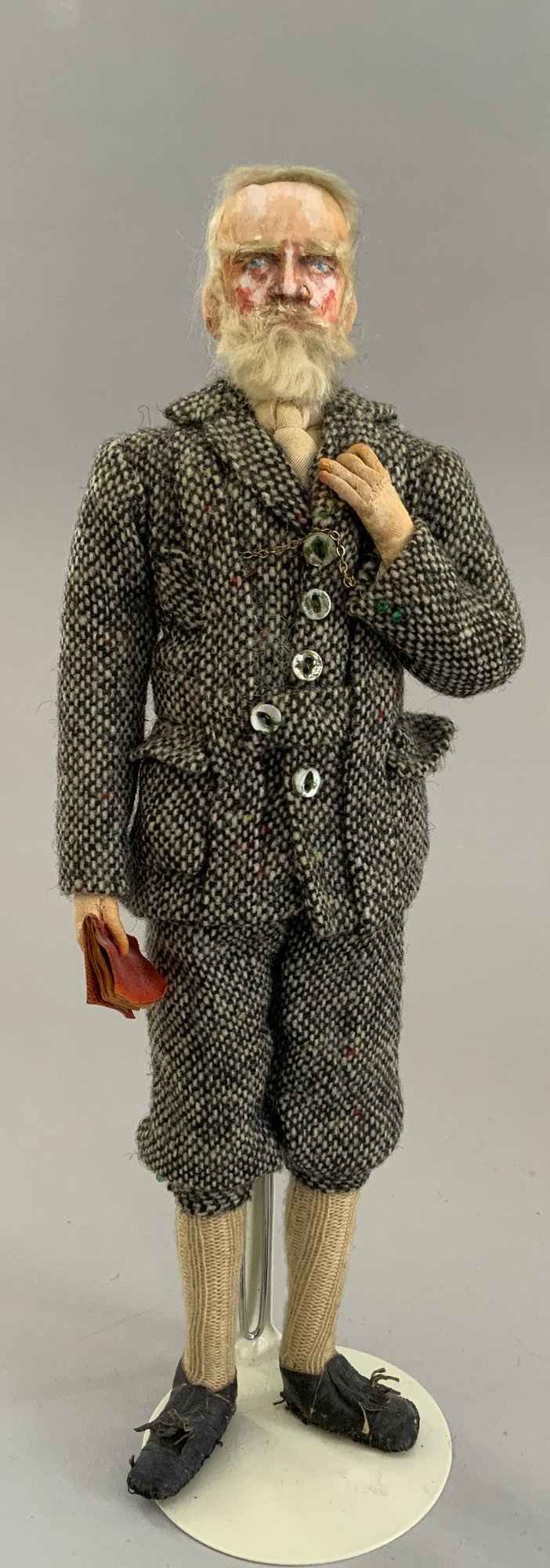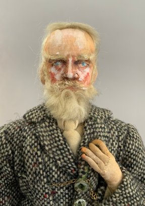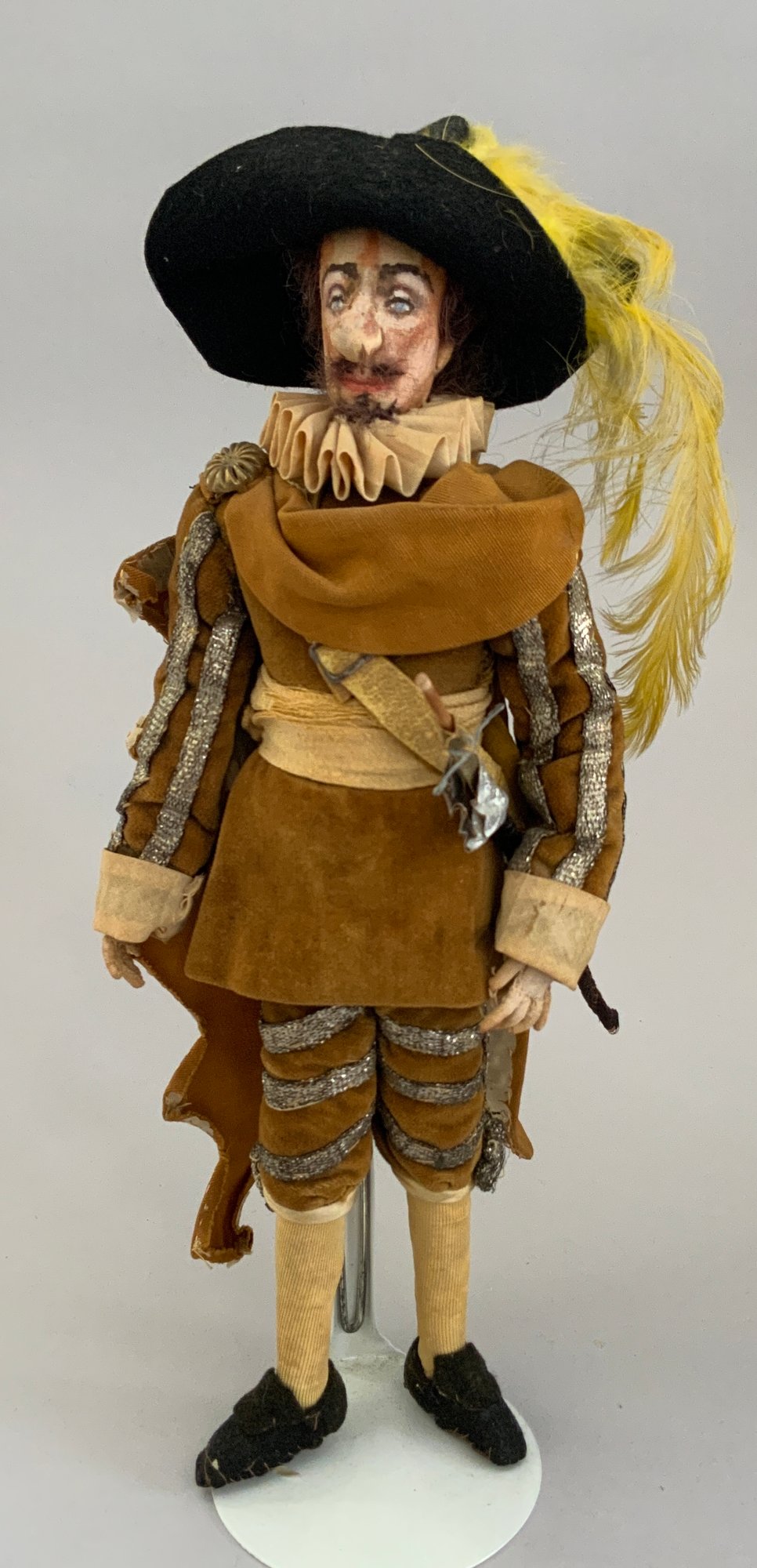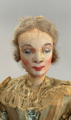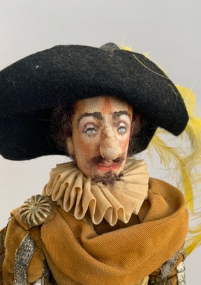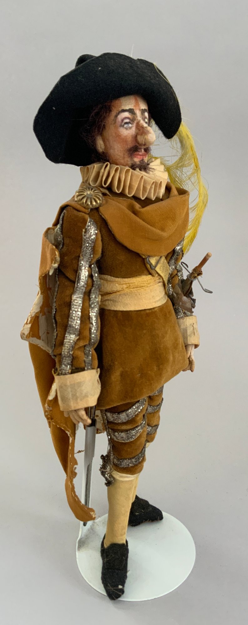 4 – Mary Green artist dolls, 2 - 10” women & 2 - 10” men, sculpted cloth, painted features, women in red cape dress & striped silk dress, men are George Bernard Shaw & Cyrano de Bergerac, (rubs & light wear)