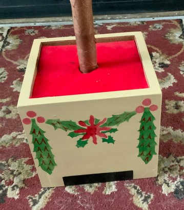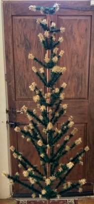 5’ 6” Chicken feather Christmas tree, green & off white, holly berries, cube wooden stand, repro comes apart in 3 pieces, Pickup or extra charge for shipping