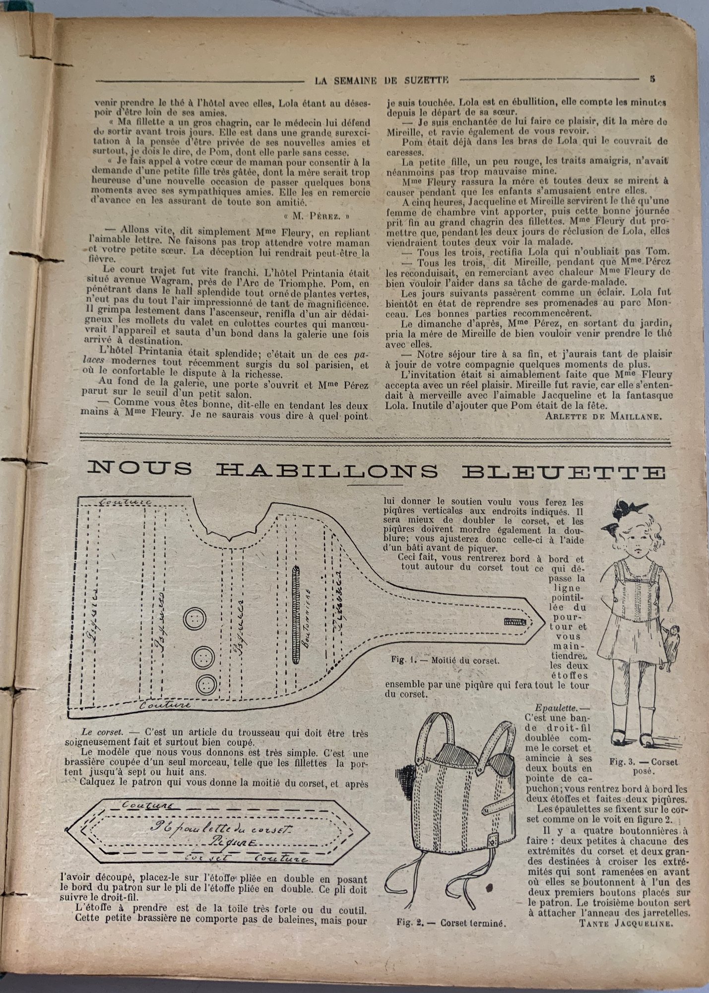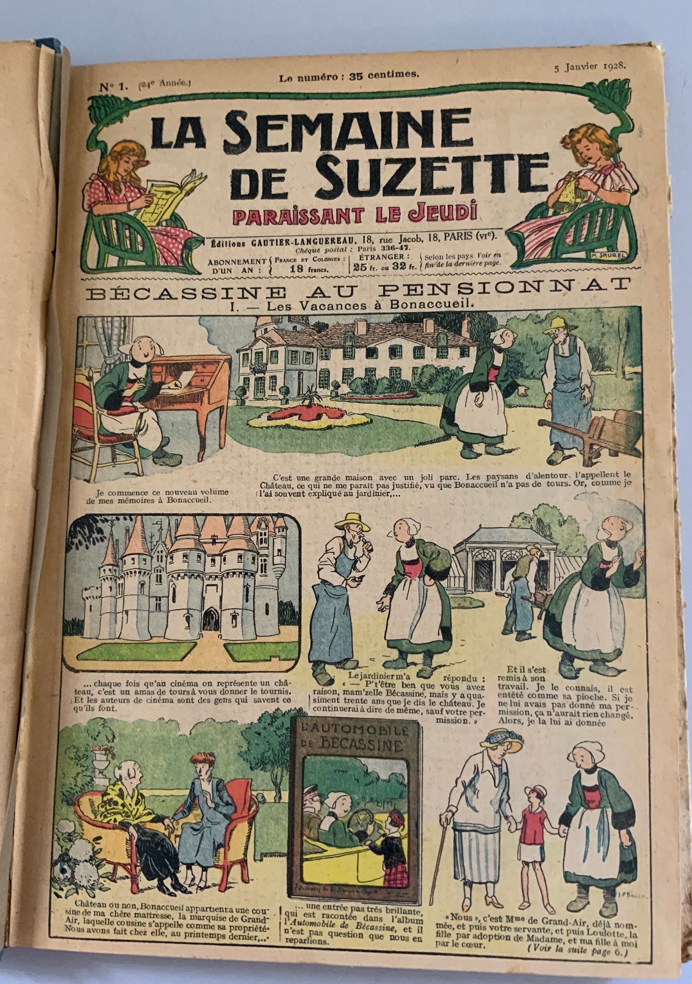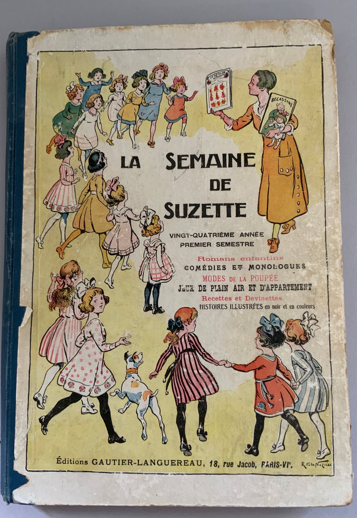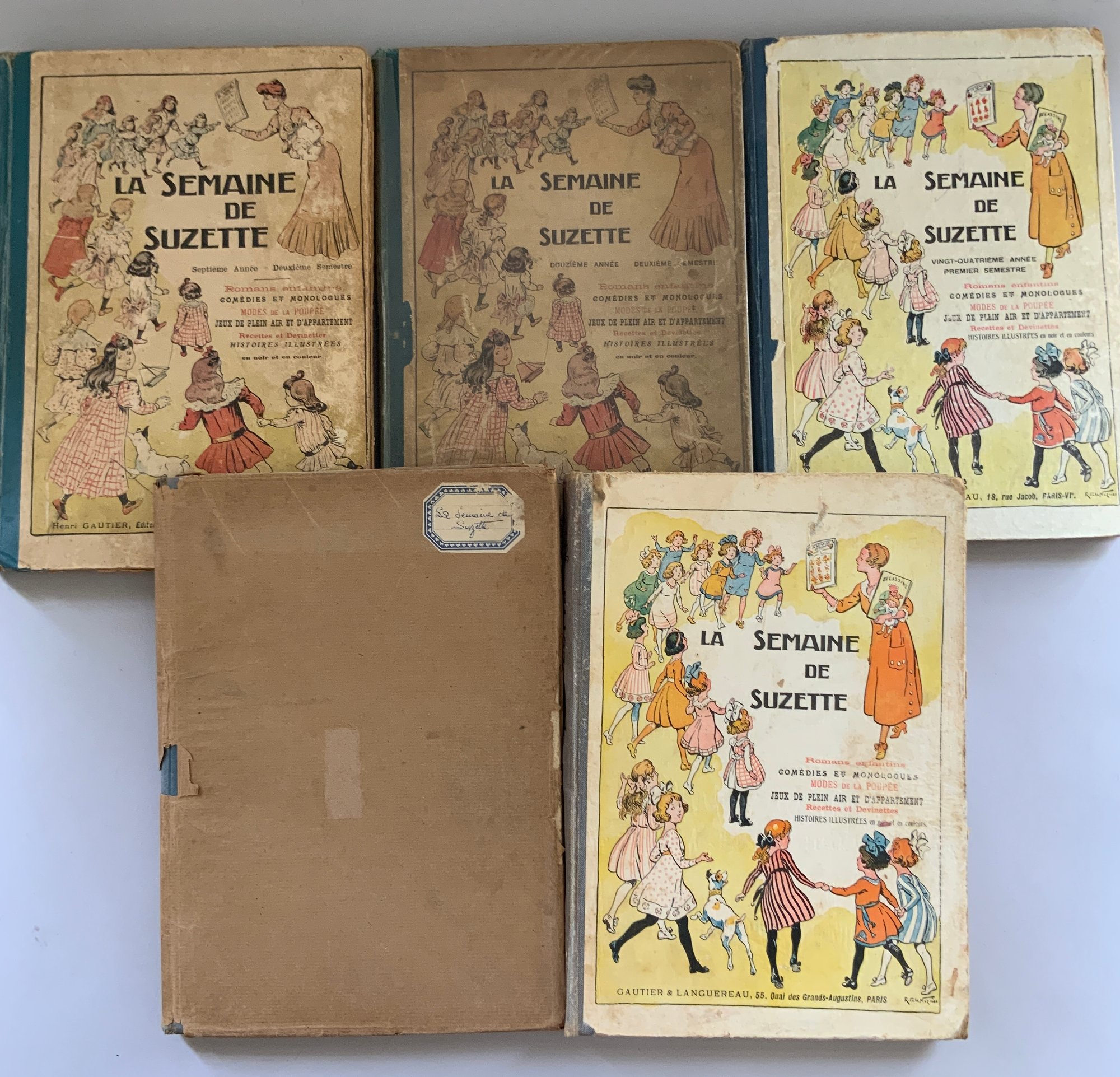 5 – Bound volumes of La Semaine de Suzette, the volumes contain 6 months of publications, 1925, 1934, 1928, 1917, & 1911, weekly publications bound with many Bluette patterns, wear & fading