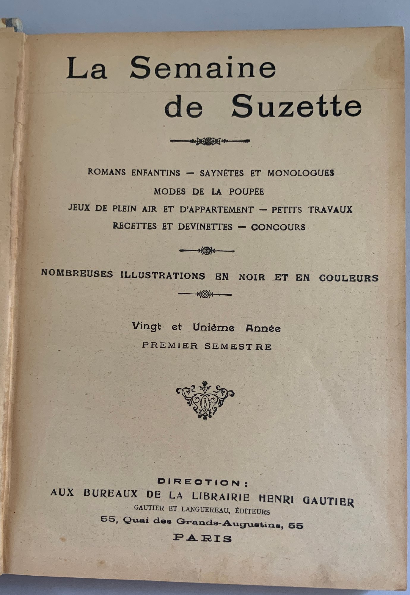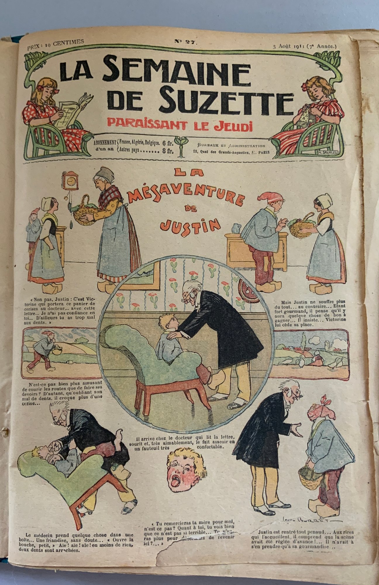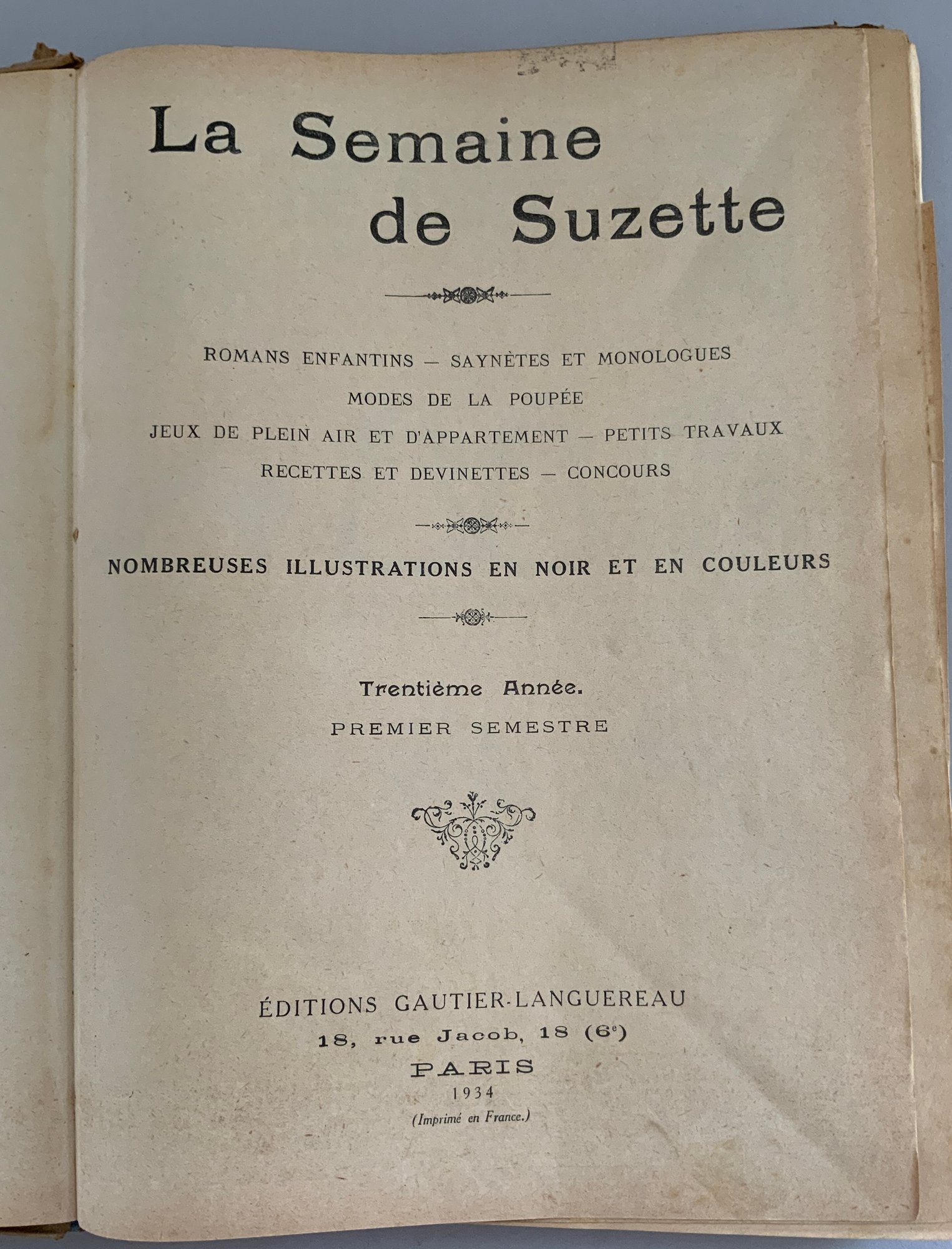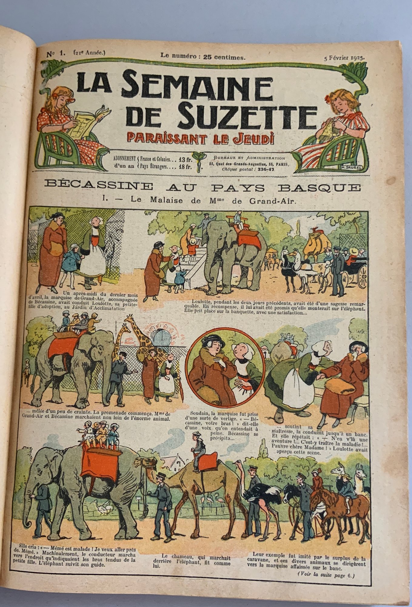 5 – Bound volumes of La Semaine de Suzette, the volumes contain 6 months of publications, 1925, 1934, 1928, 1917, & 1911, weekly publications bound with many Bluette patterns, wear & fading