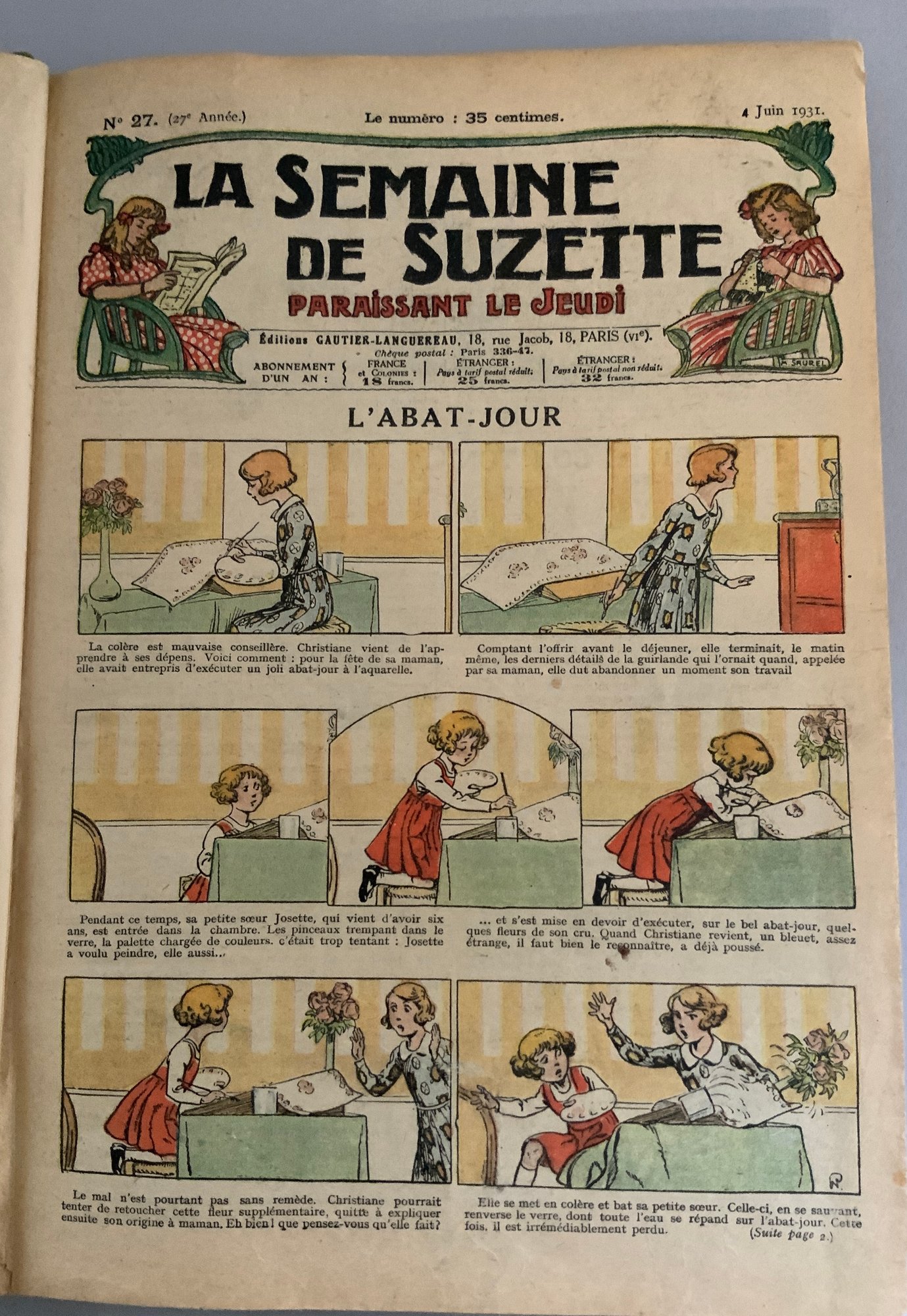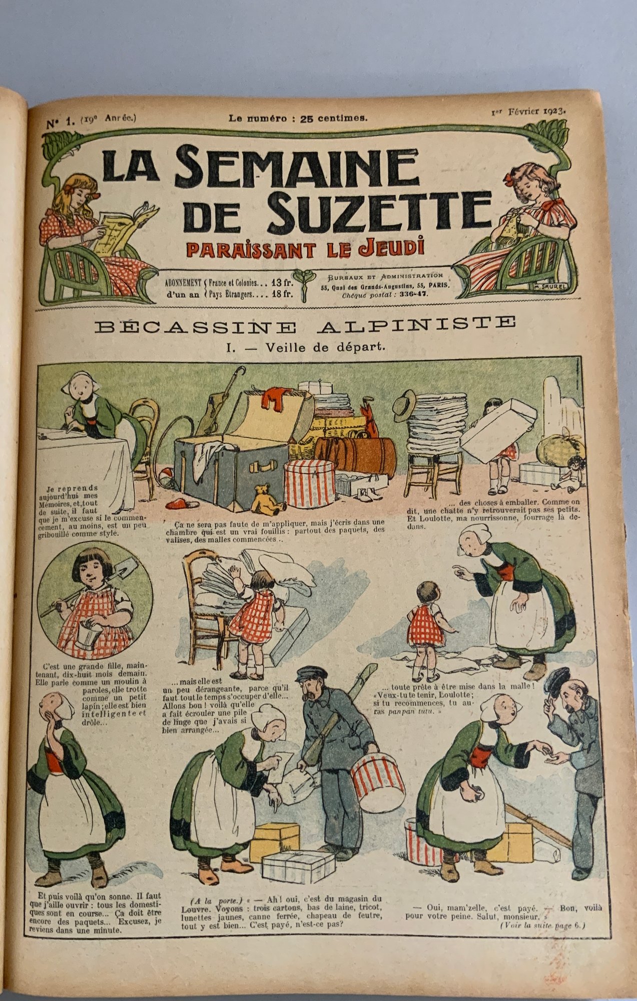 5 – Bound volumes of La Semaine de Suzette, the volumes contain 6 months of publications, 1931, 1909, 1923, 1934 & 1935weekly publications bound with many Bluette patterns, wear & fading