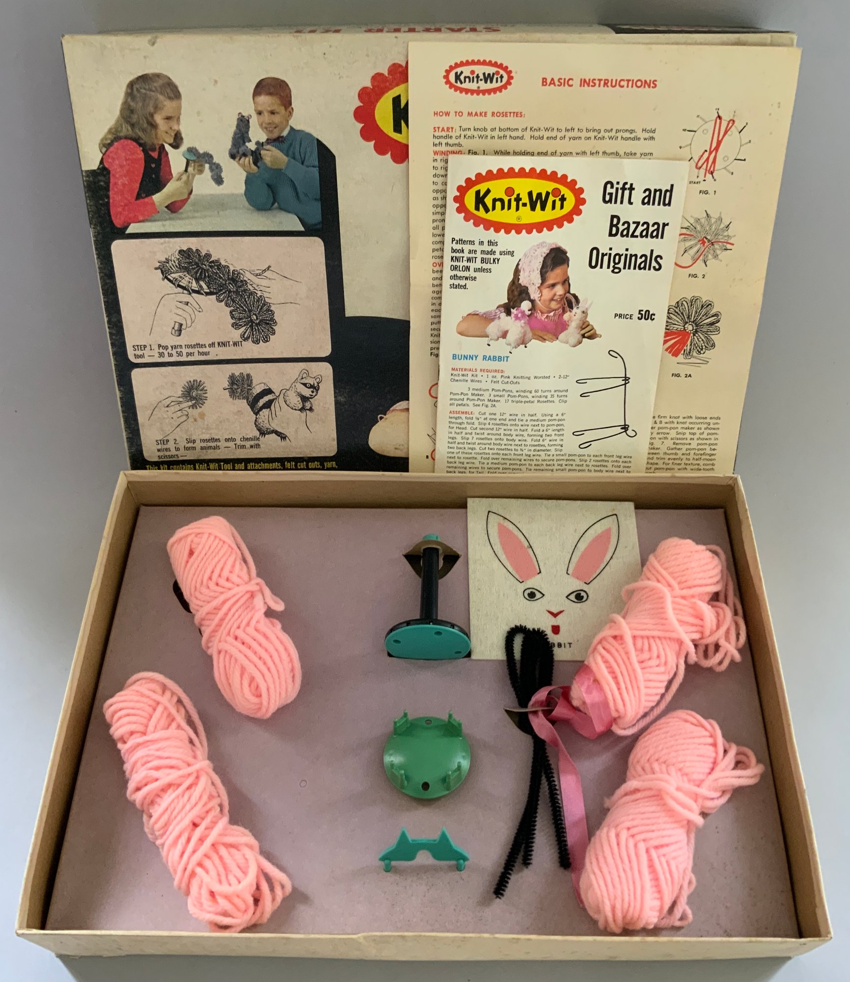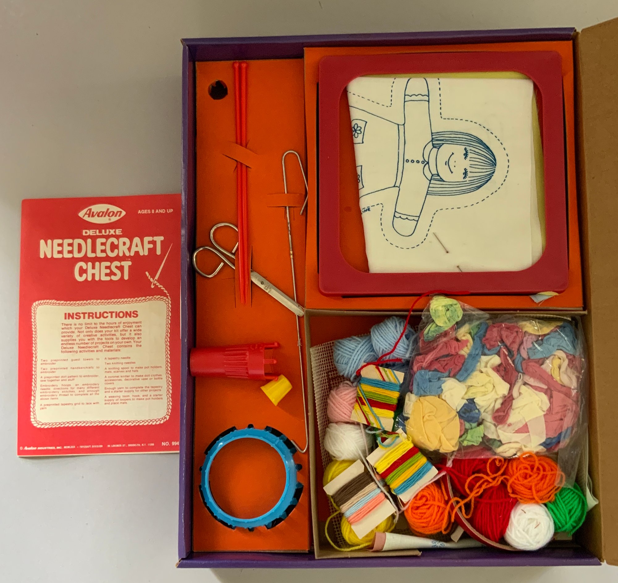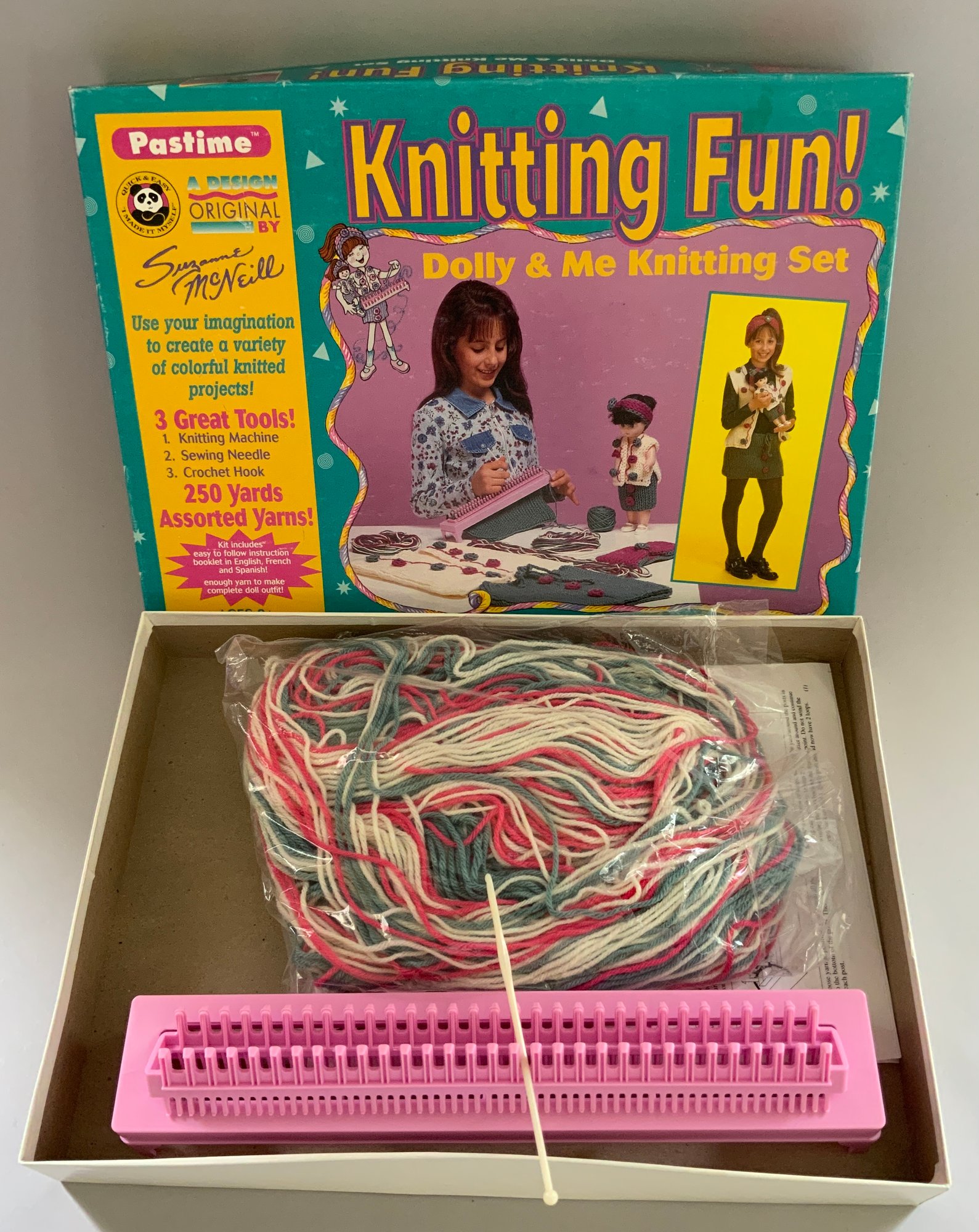 6 – Knitting & Crochet Sets, Barbie Glitter Knitting Kit #50523 Avalon 1986, Crafts Mate #9110A/B, Mountains Plastic Factory, Simplicty Knitting & Weaving # 2927, Pastime Industries 1992, Knit Wit Starter Kit, Yankee Homecraft, 1965, Deluxe Needlecraft Chest, Avalon 1980, Knitting Fun Dolly & Me Knitting Kit, #2923, Pastime Industries, 1996