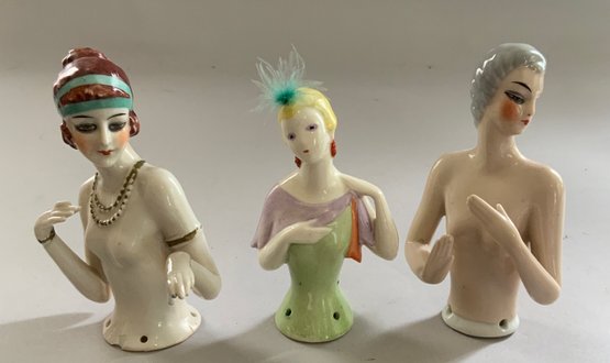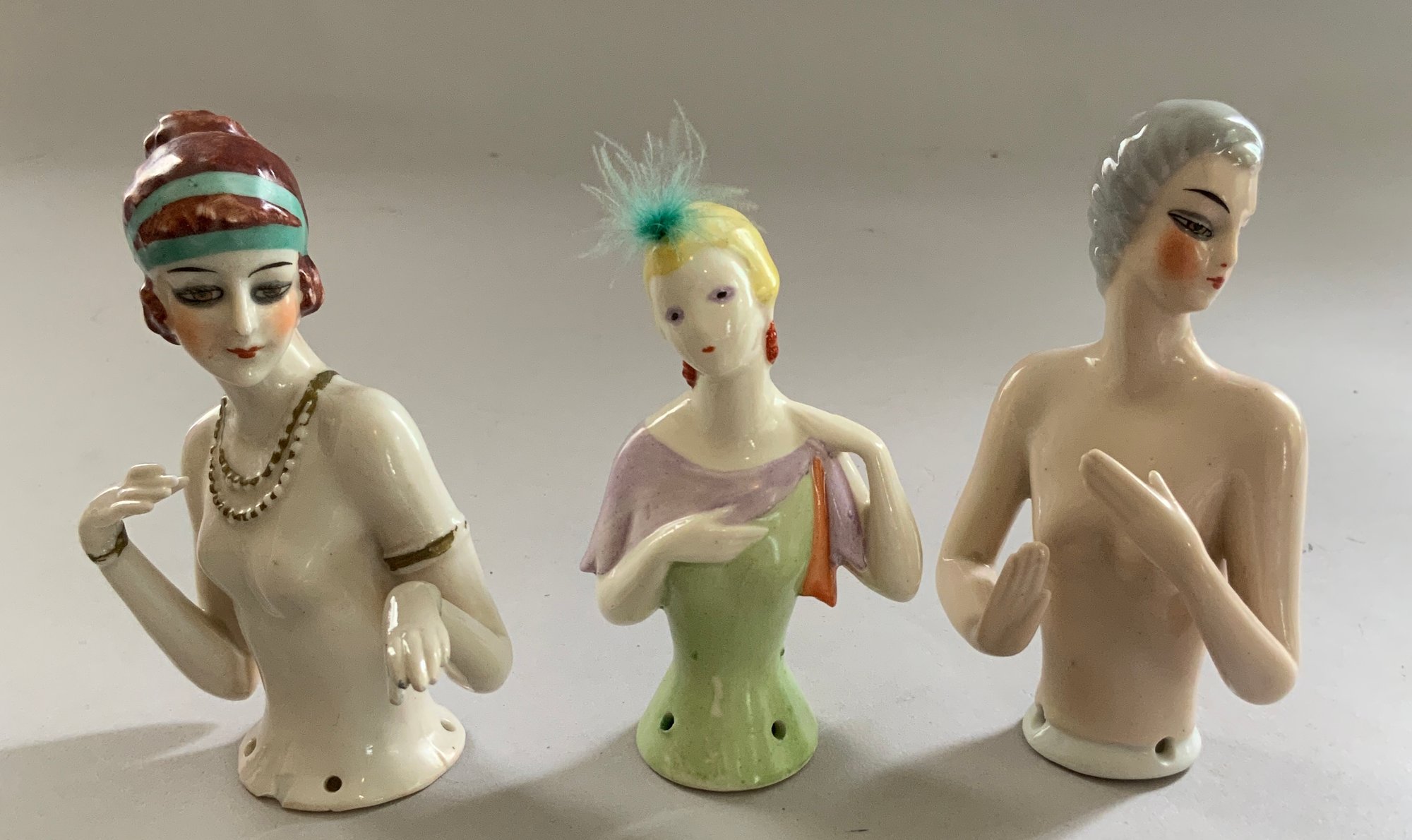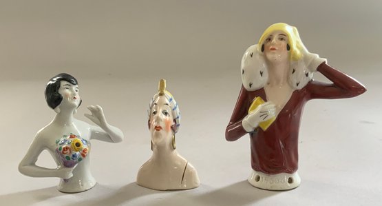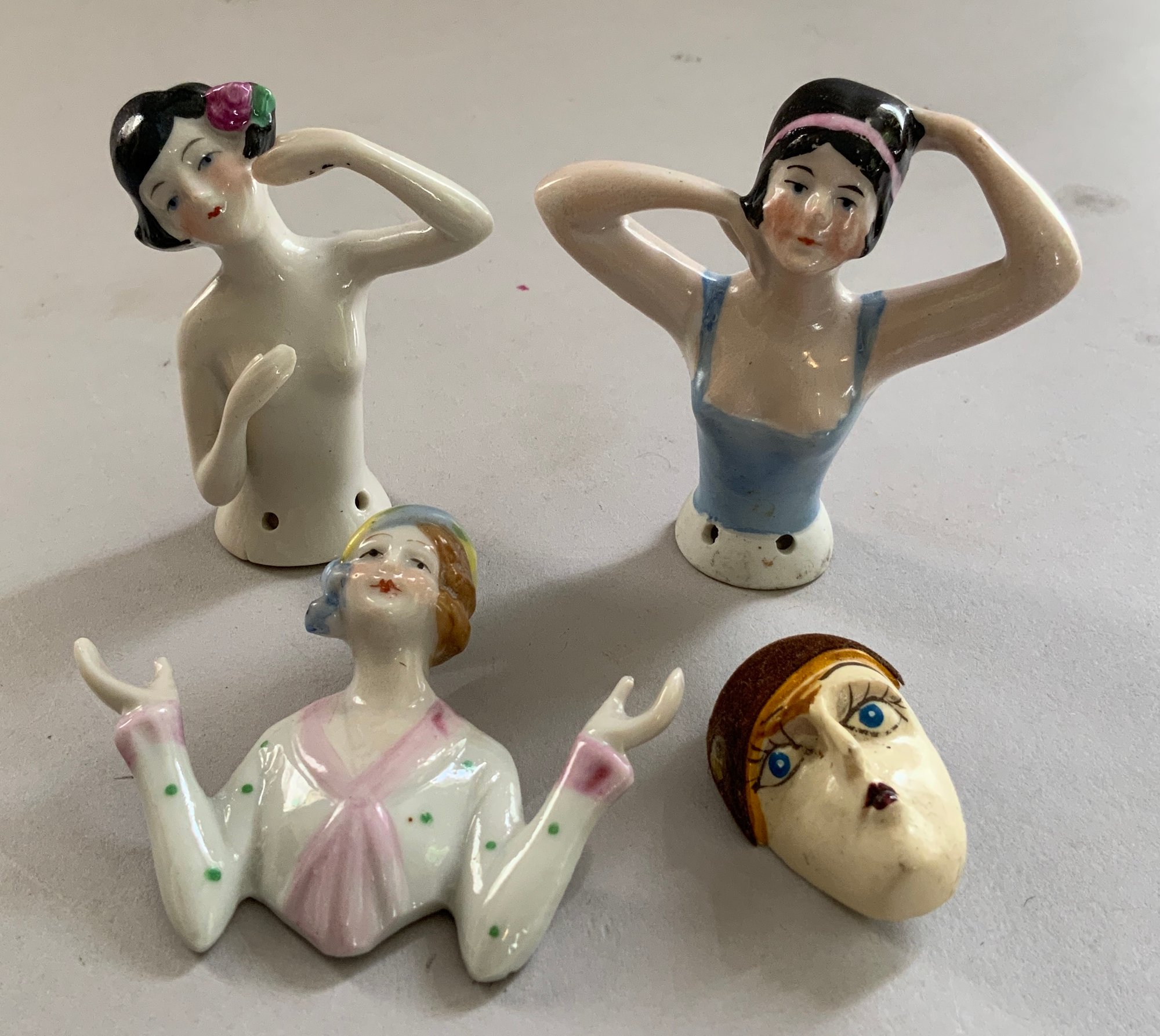 9 – Half dolls 2 ½” – 4” long, flapper style, painted features
