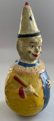 9 ½” Schoenhut Paper Mache clown, Rolly Polly, hand painted, crazing, cracks and wear