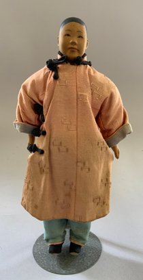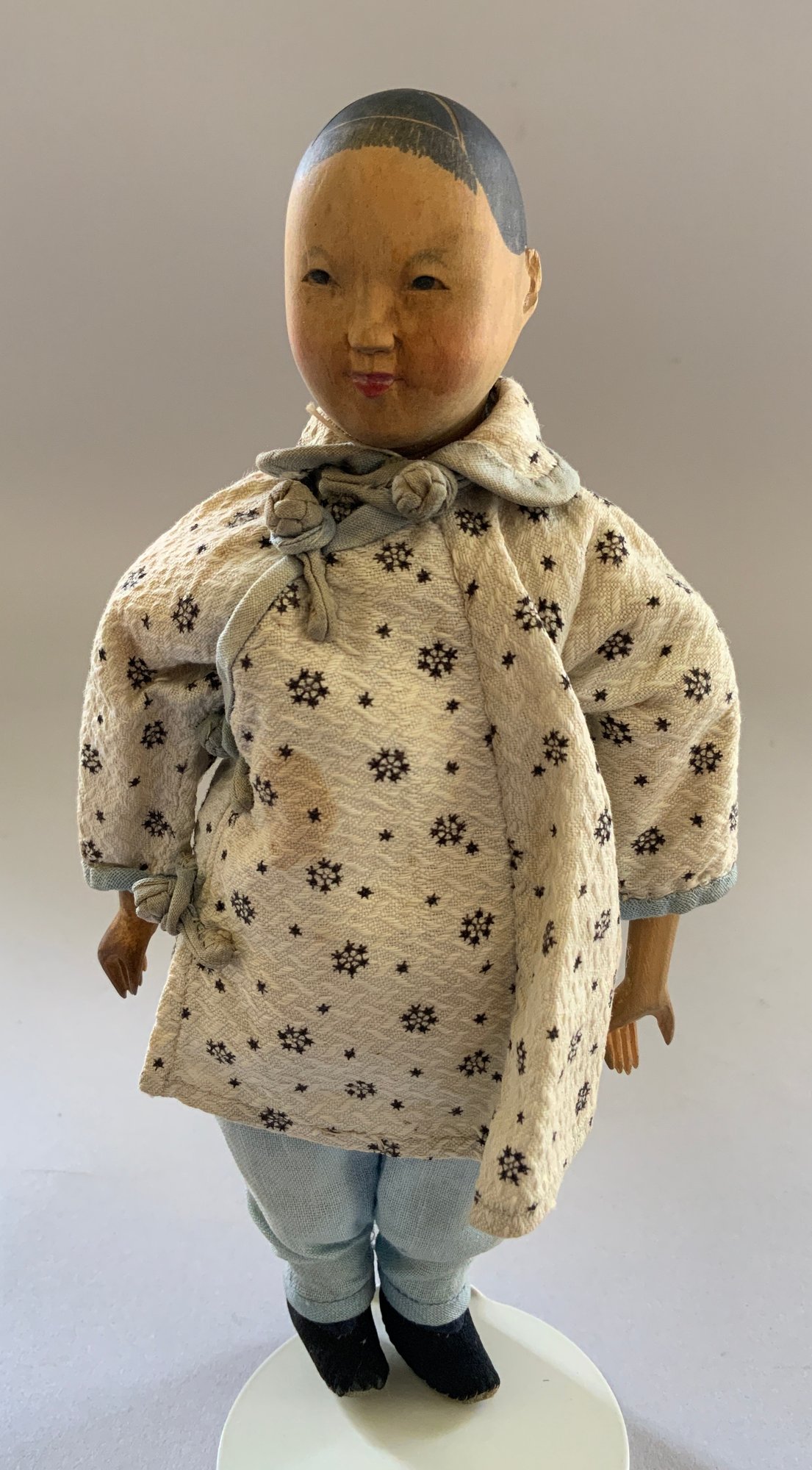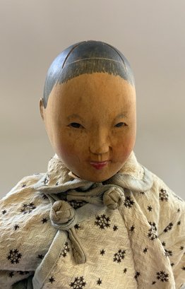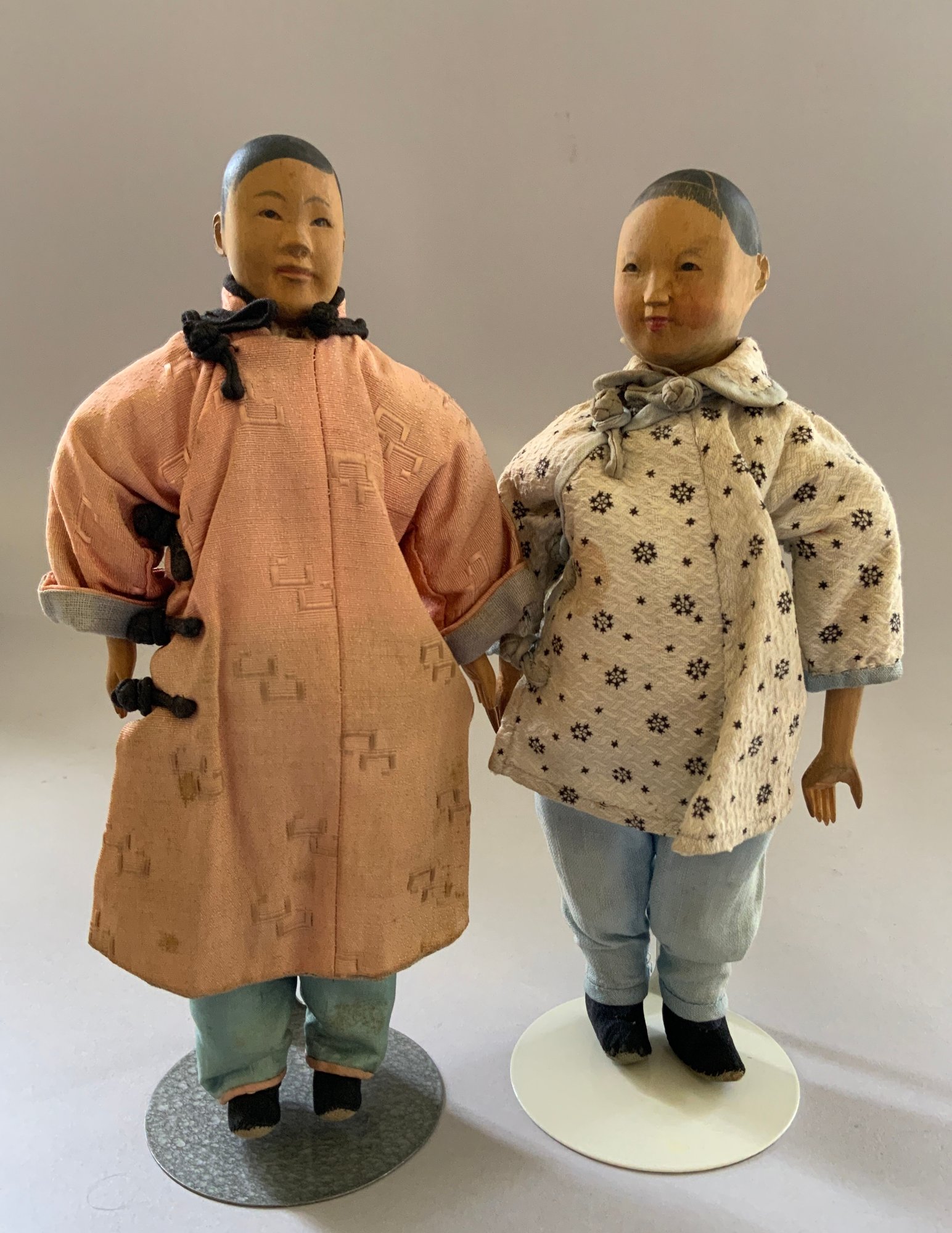 Pair of 8” Door of Hope dolls, man & woman, carved pear wood, painted features, regional costumes, (fading)