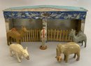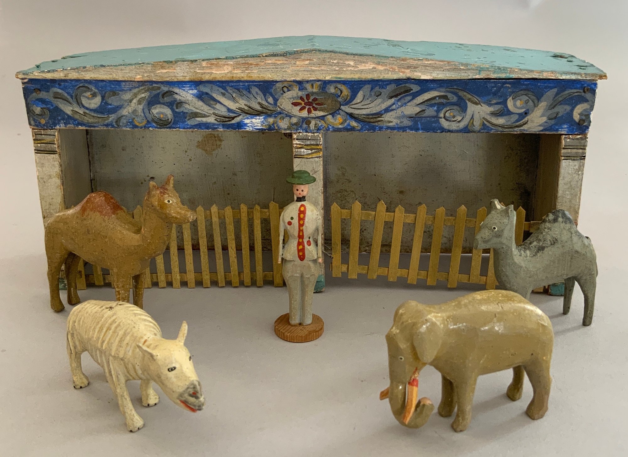 Antique zoo cages with 14 animals & zoo keeper